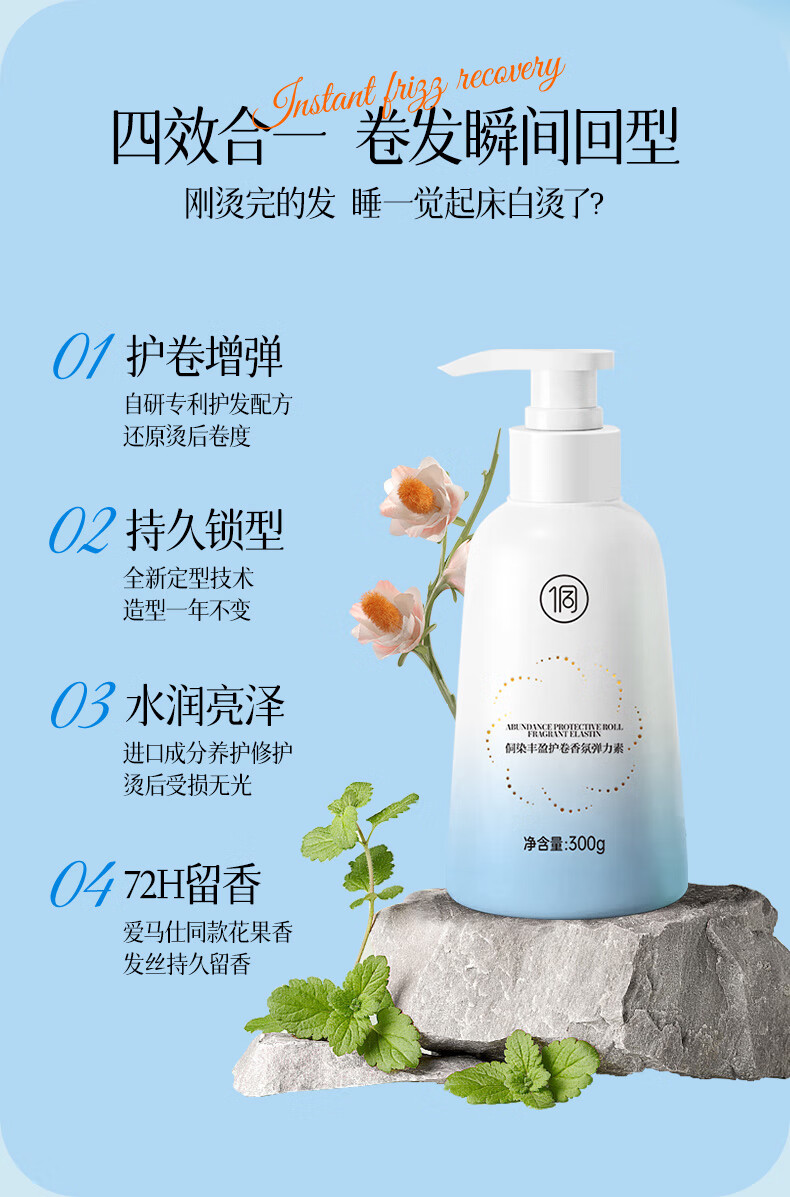 Dong-dyed elastic for women's curly hair, moisturizing and curling, anti-frizz, fluffy and styling hair, perm care, special no-wash elastic, anti-frizz and curling, elastin 300g 1 bottle