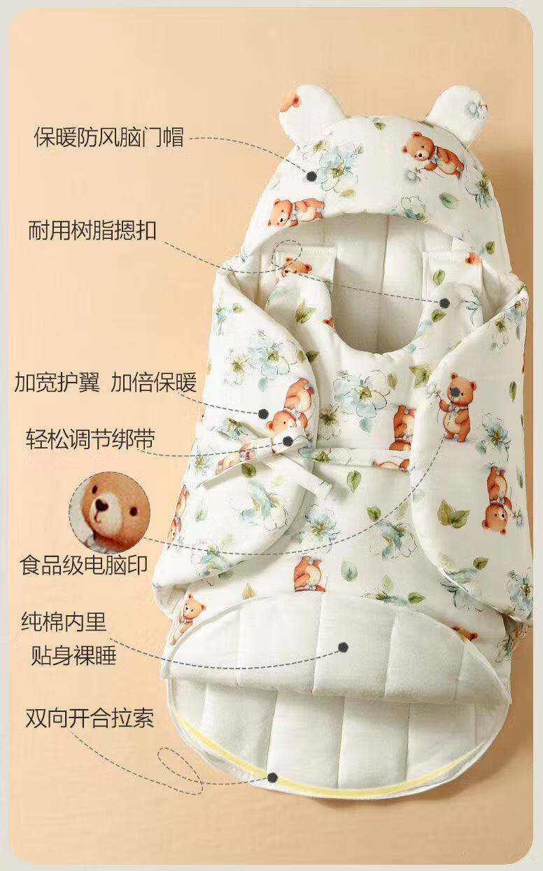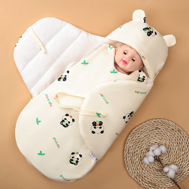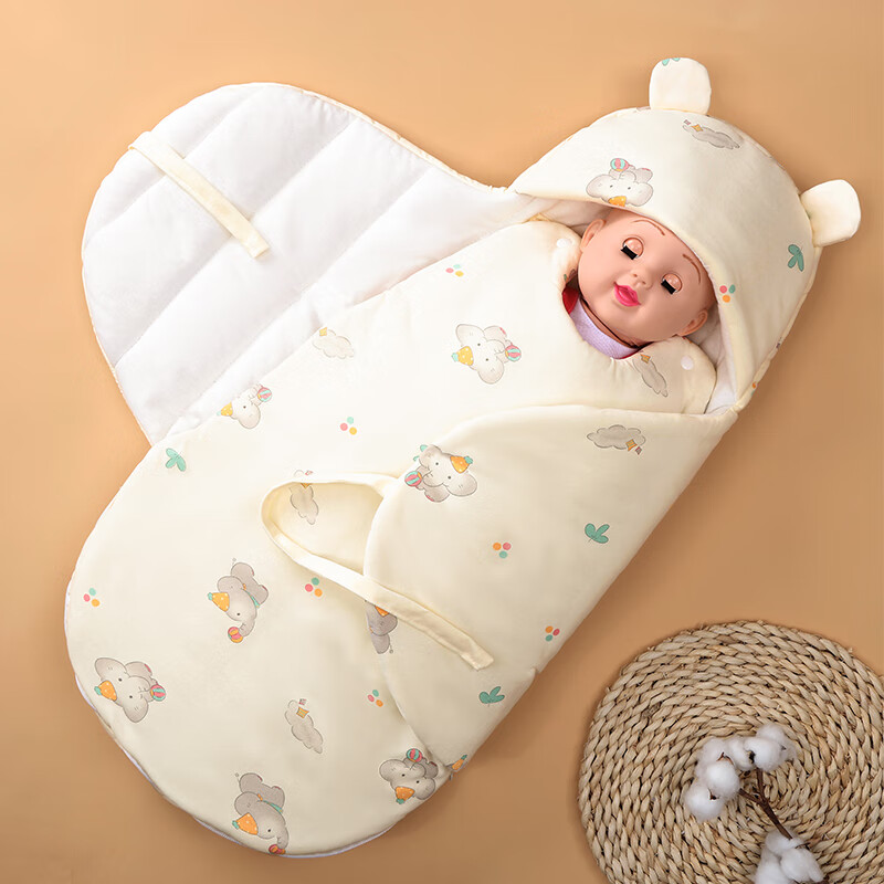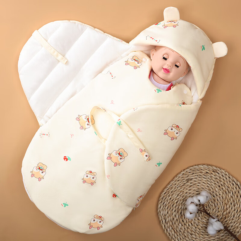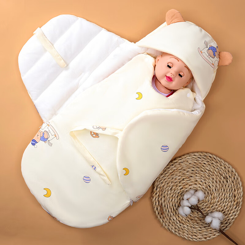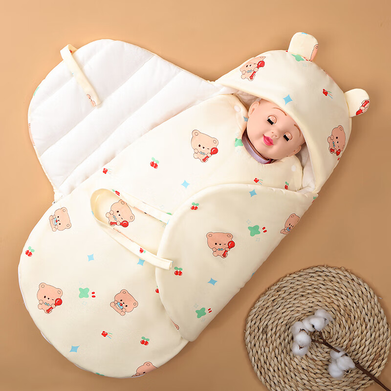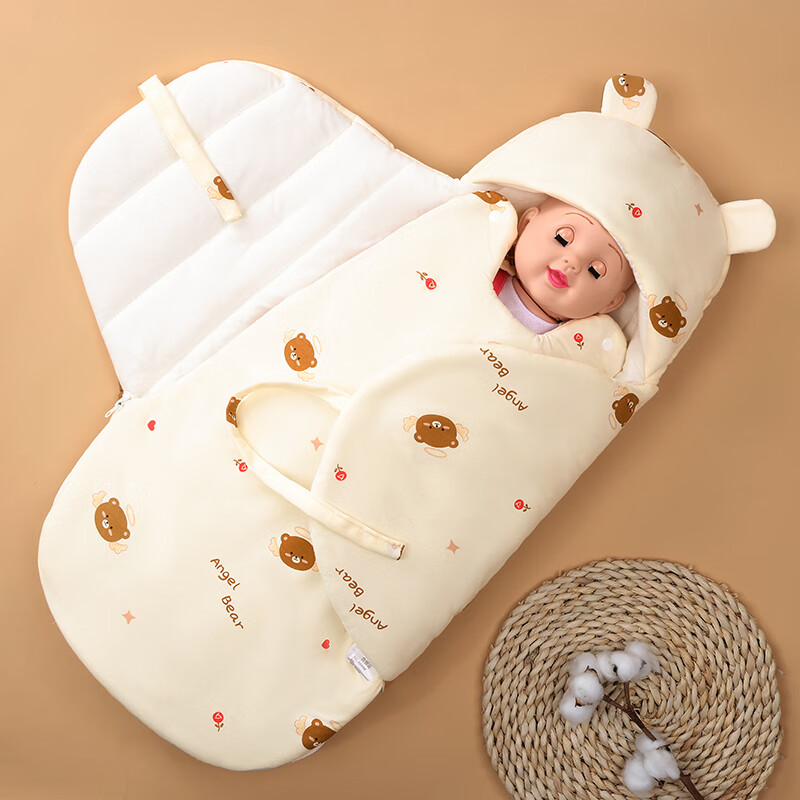 Newborn baby cotton A-type quilt to keep warm and thickened New all-in-one outing sleeping bag for newborn children Beige Angel Bear Super soft constant temperature skin-friendly Height 75X Width 83cm Thickened 500g 0-15 degrees
