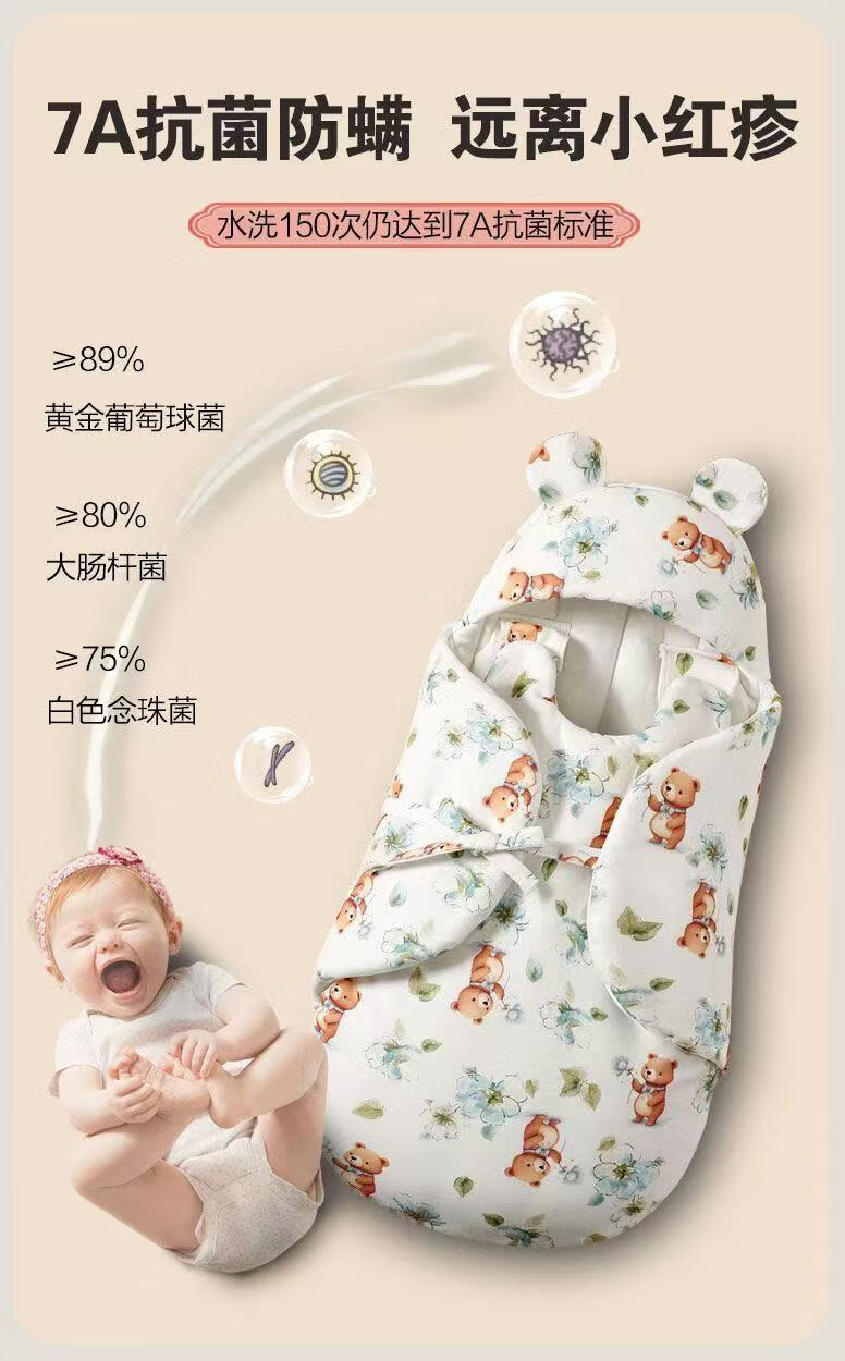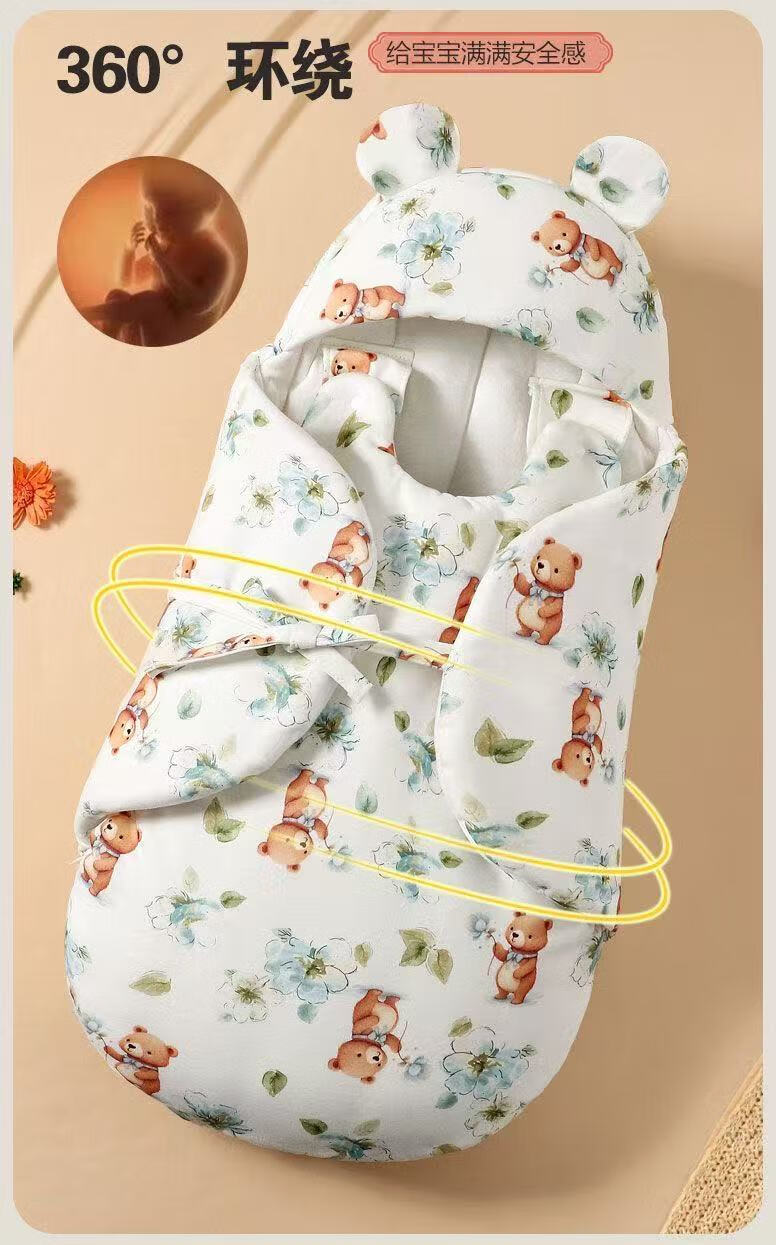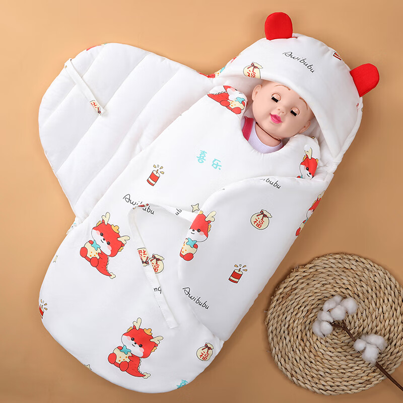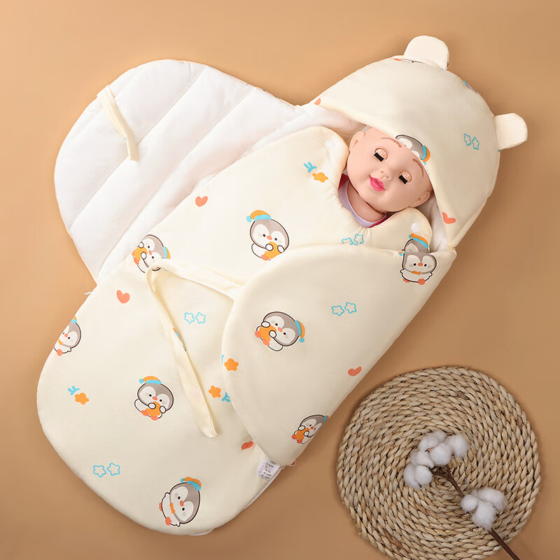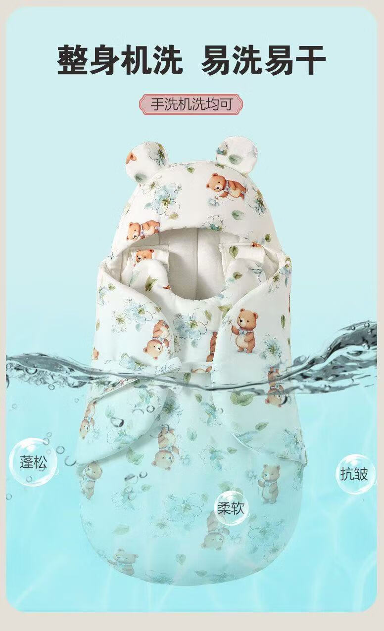 Newborn baby cotton A-type quilt to keep warm and thickened New all-in-one outing sleeping bag for newborn children Beige Angel Bear Super soft constant temperature skin-friendly Height 75X Width 83cm Thickened 500g 0-15 degrees