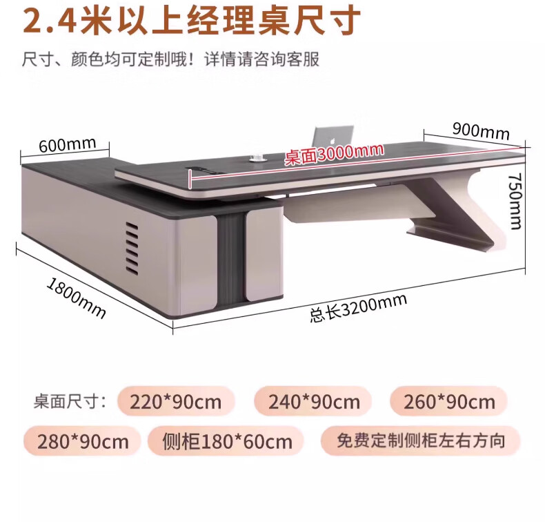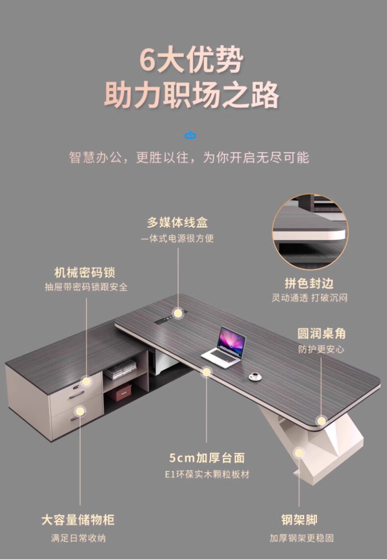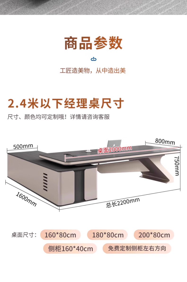 Sanque light luxury boss desk office desk simple modern chairman president desk executive desk manager office desk and chair combination 2.4 meters boss desk