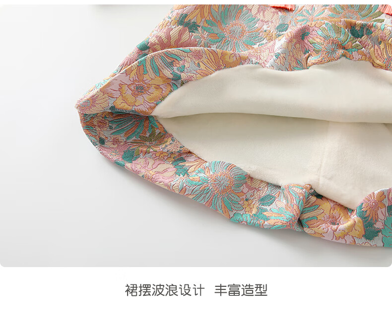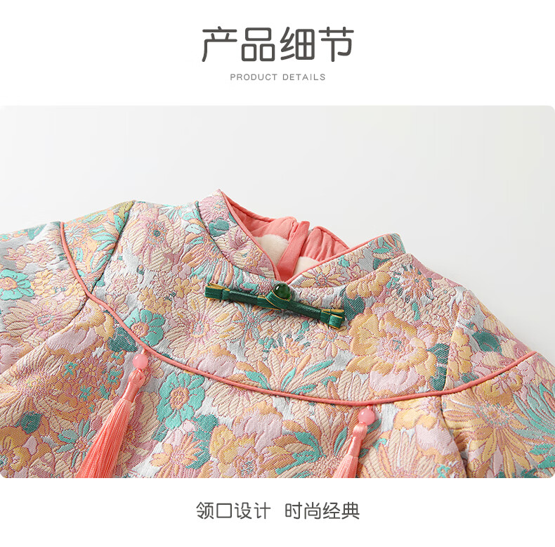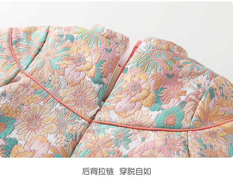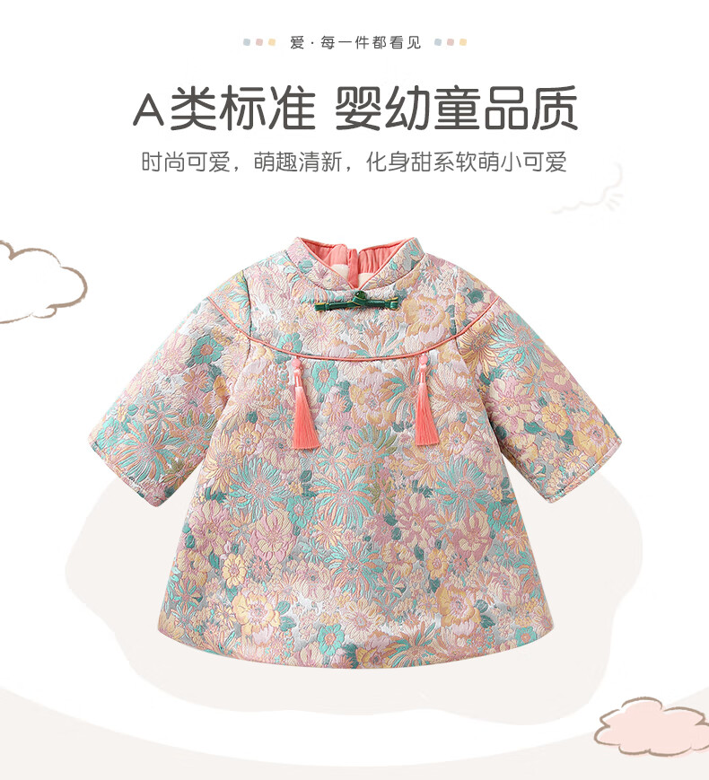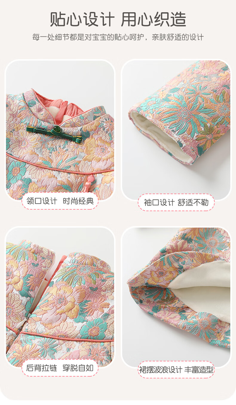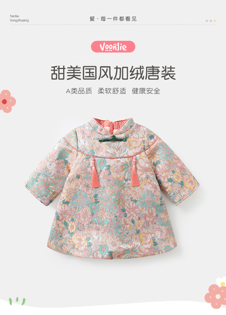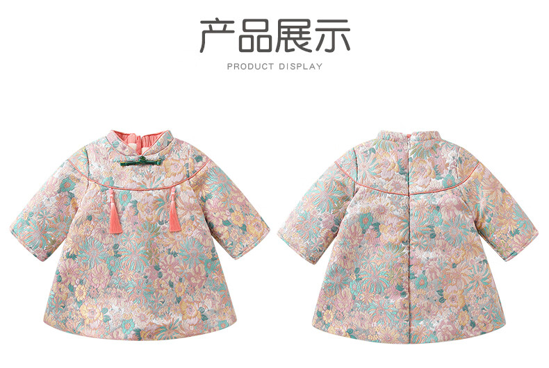 Fanhunting girls Chinese style dress winter plus velvet children's princess dress one-year-old baby dress for the first week banquet winter color 80