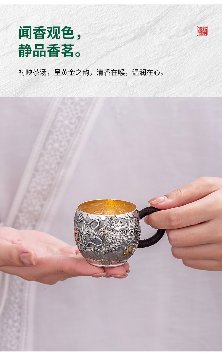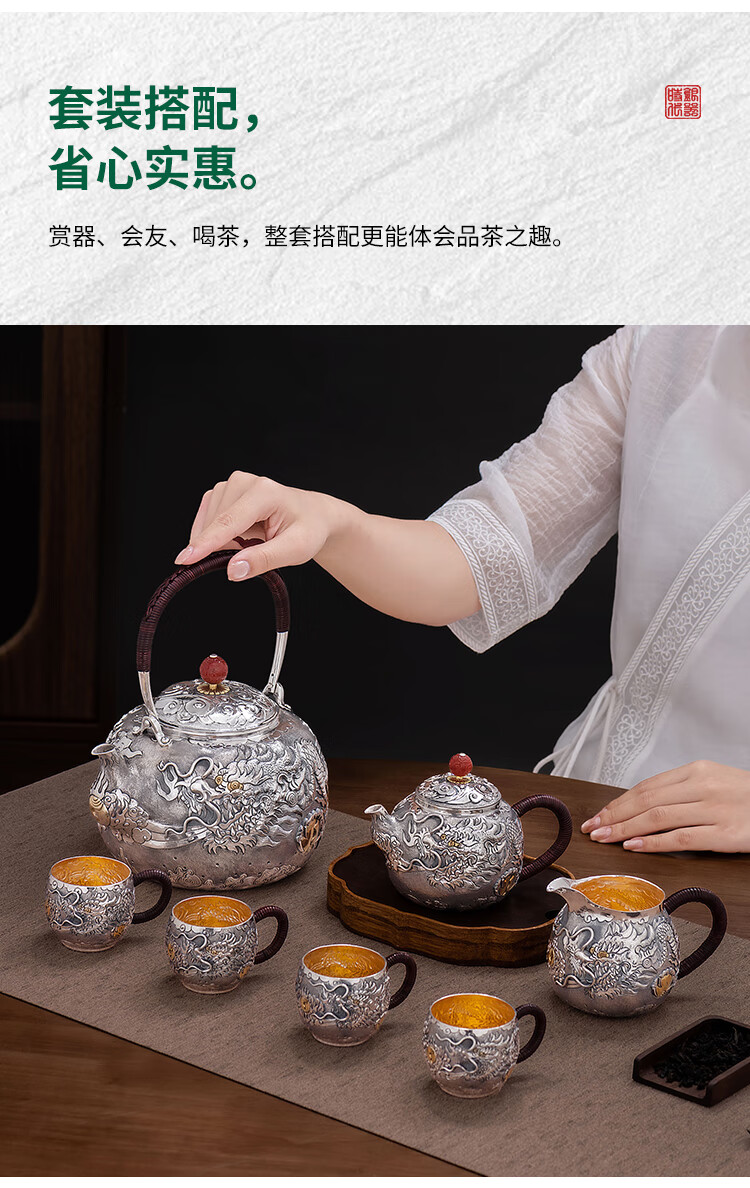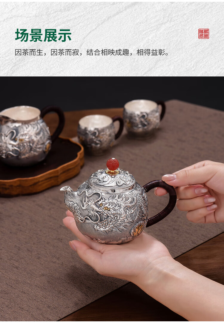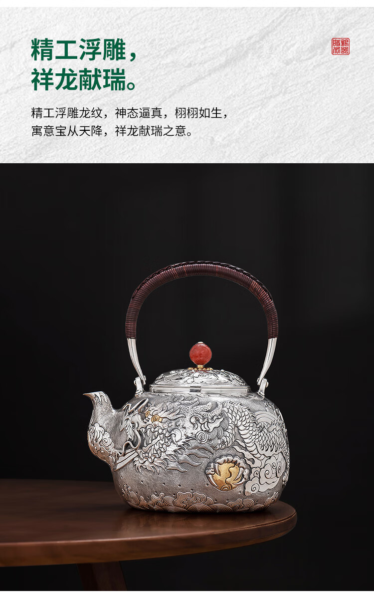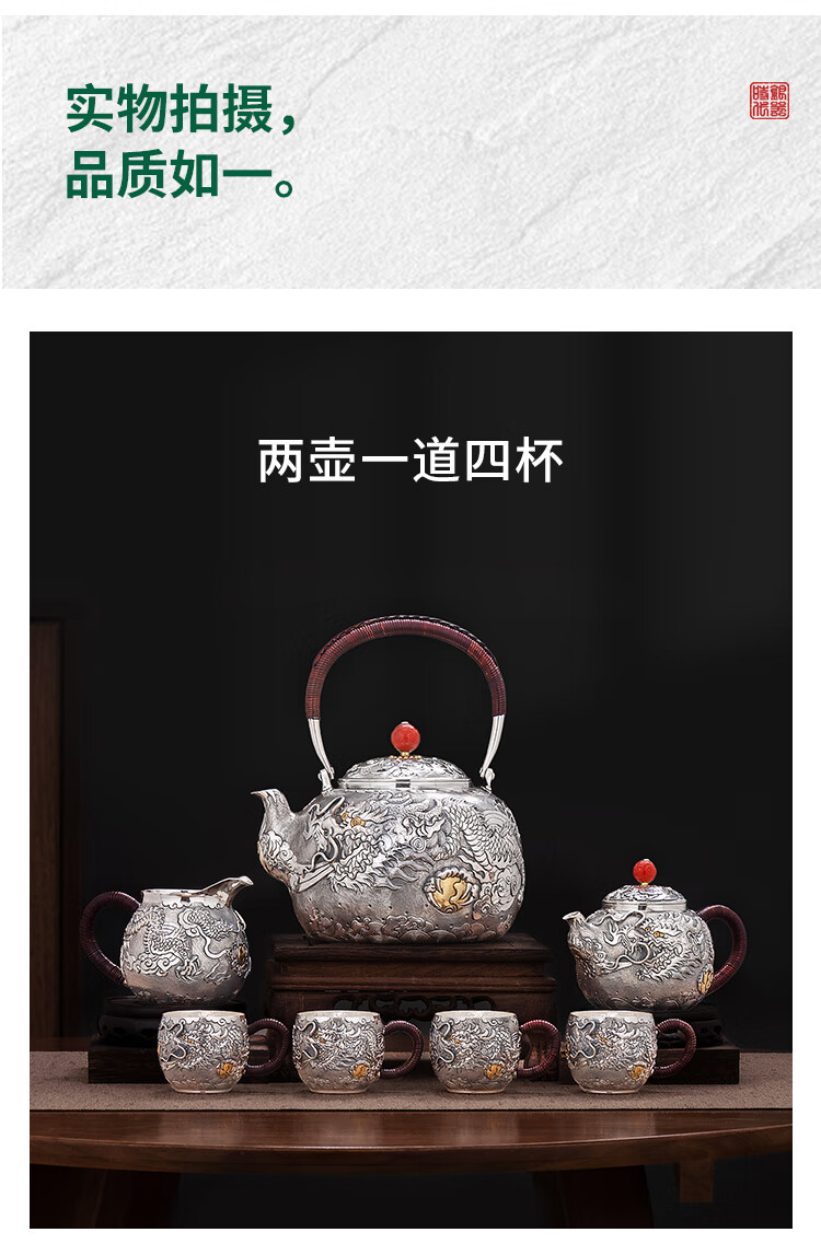 Silver Age Silver Tea Set 999 Pure Silver Set Tenglong Spit Pearl Gift Seiko Embossed Pure Silver Tea Set 1 Pot 3 Cups Approximately 544 Grams