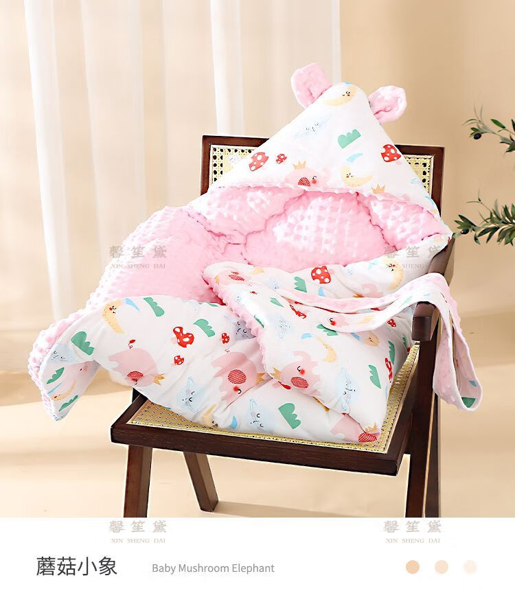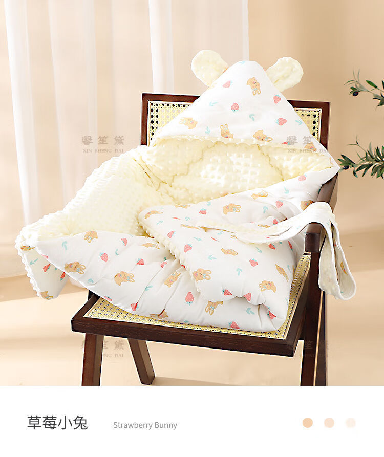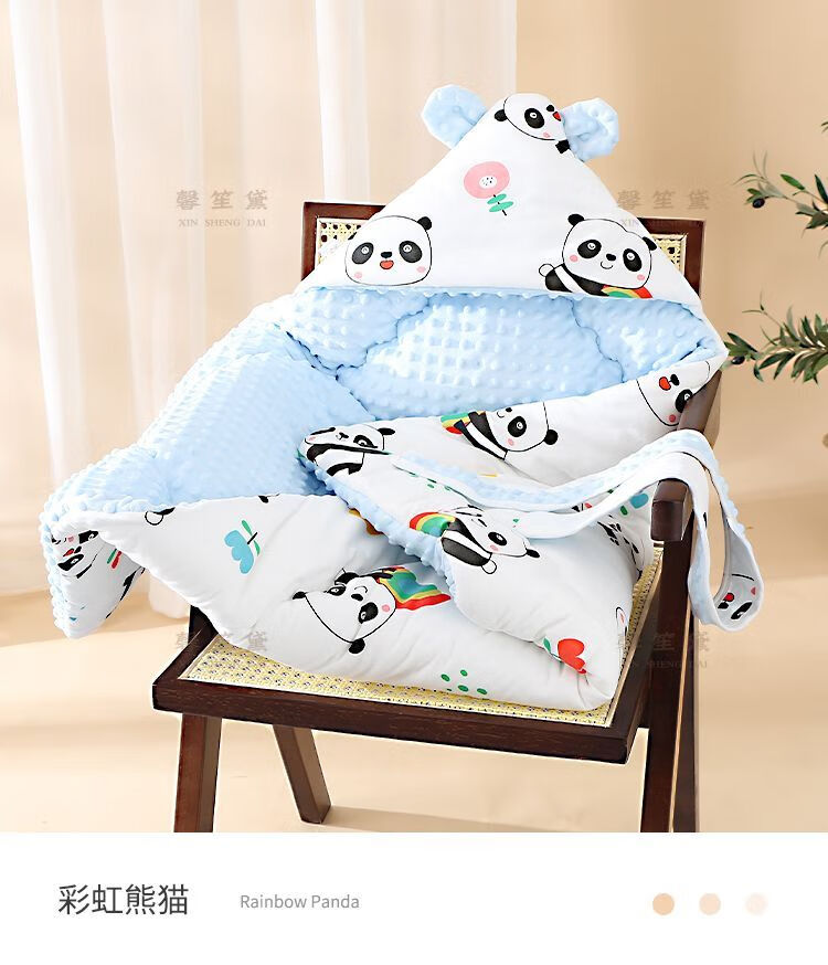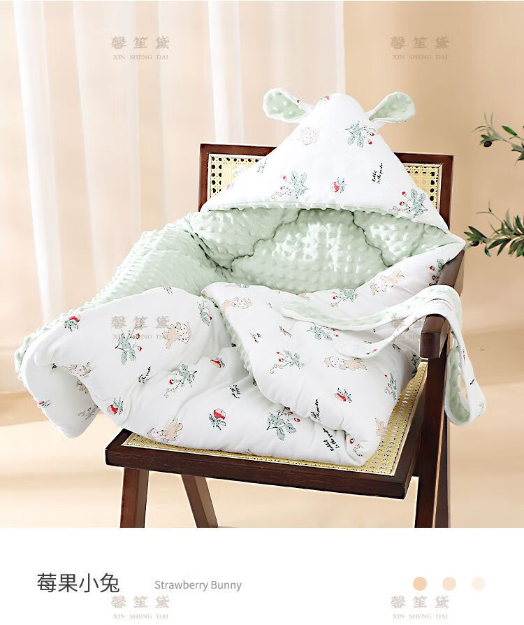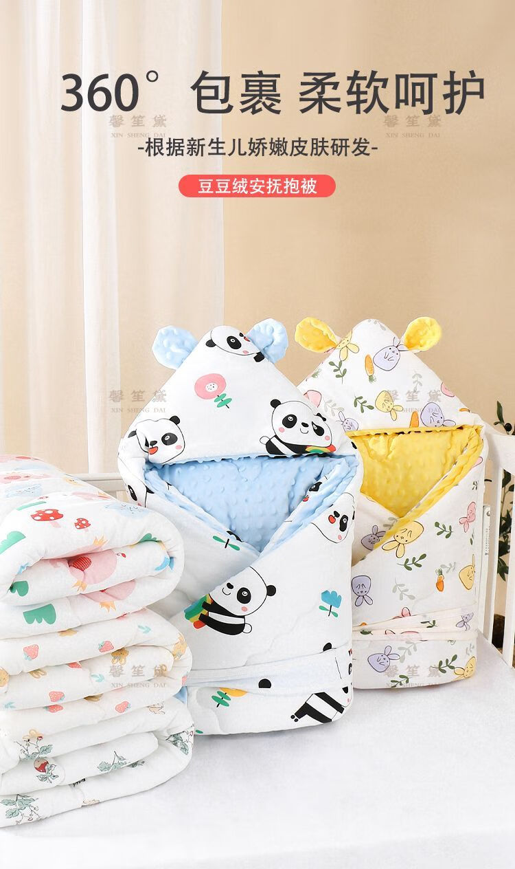 Newborn Baby Bean Velvet Blanket Autumn and Winter Thickened Newborn Pure Cotton Blanket Maternity Room Baby Supplies Anti-Jump Swaddle Candy Bear Class A Super Soft Skin Friendly Beanie Velvet Removable Thickened Liner 90X90 800g Left