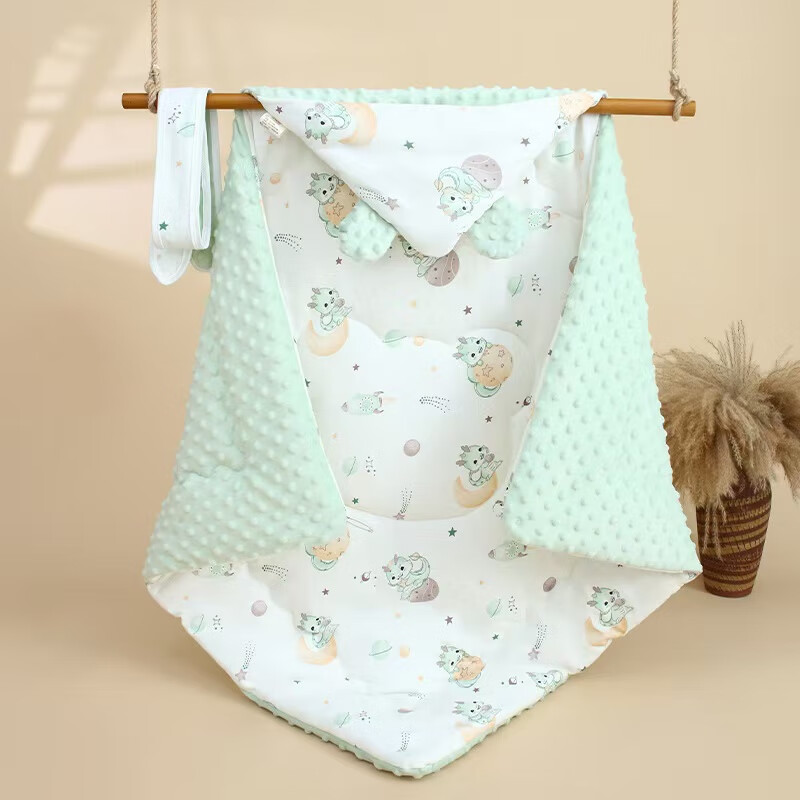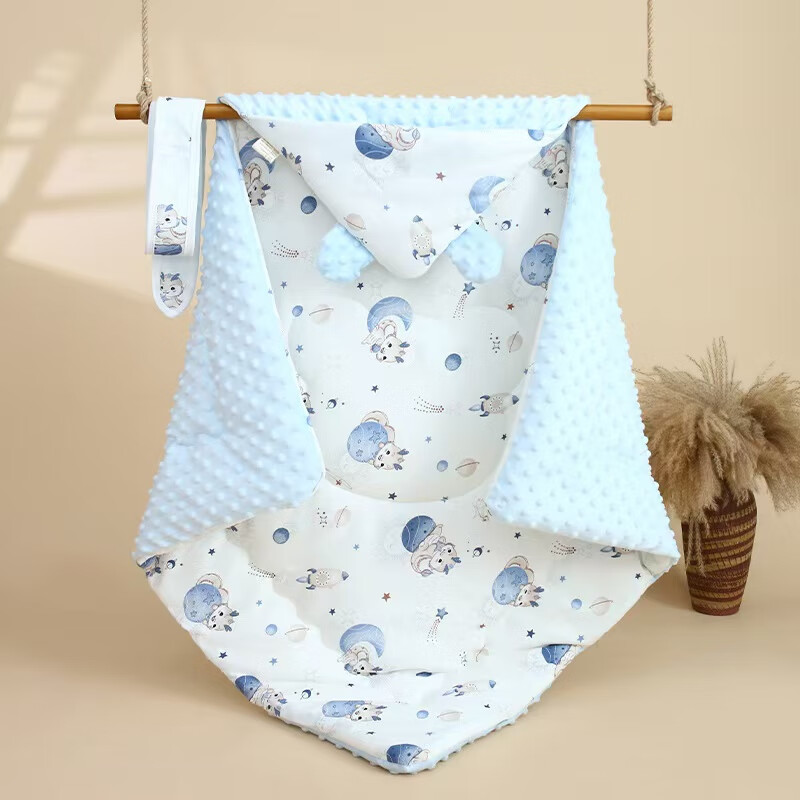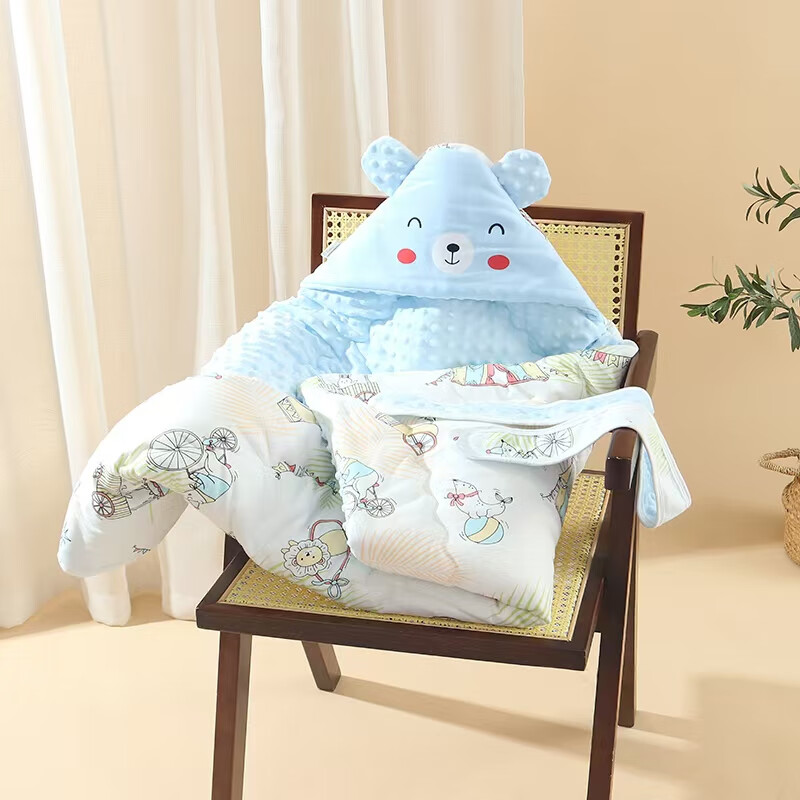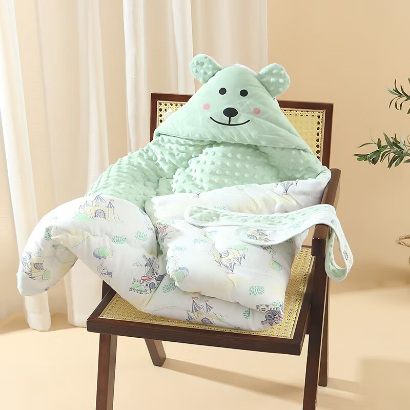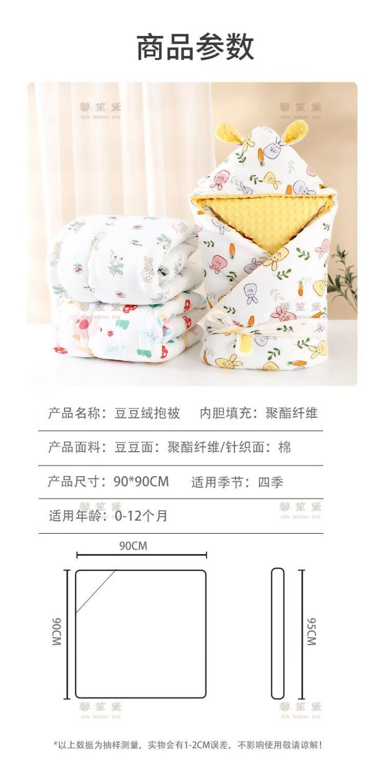Newborn Baby Bean Velvet Blanket Autumn and Winter Thickened Newborn Pure Cotton Blanket Maternity Room Baby Supplies Anti-Jump Swaddle Candy Bear Class A Super Soft Skin Friendly Beanie Velvet Removable Thickened Liner 90X90 800g Left