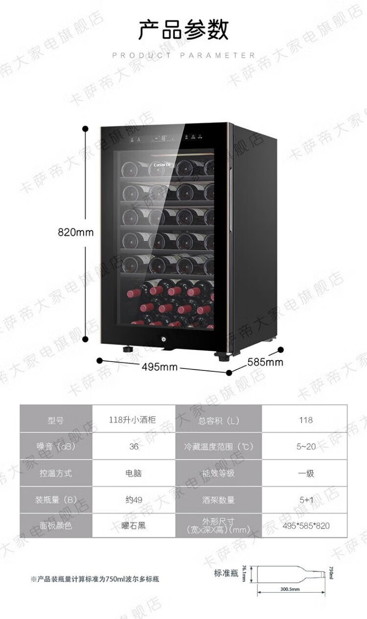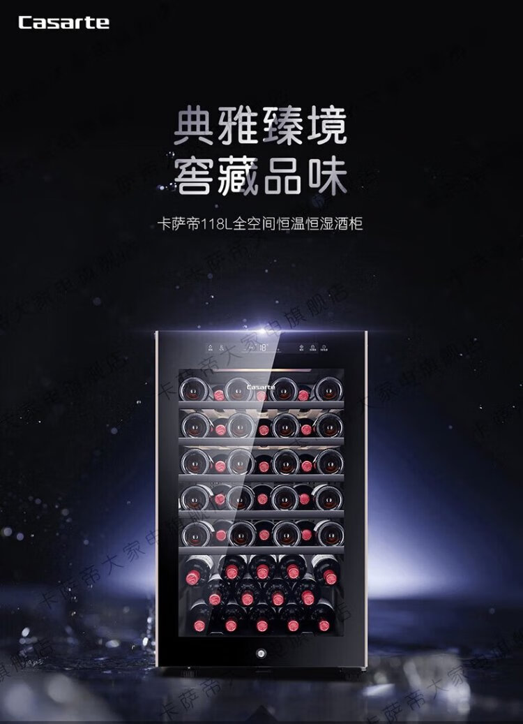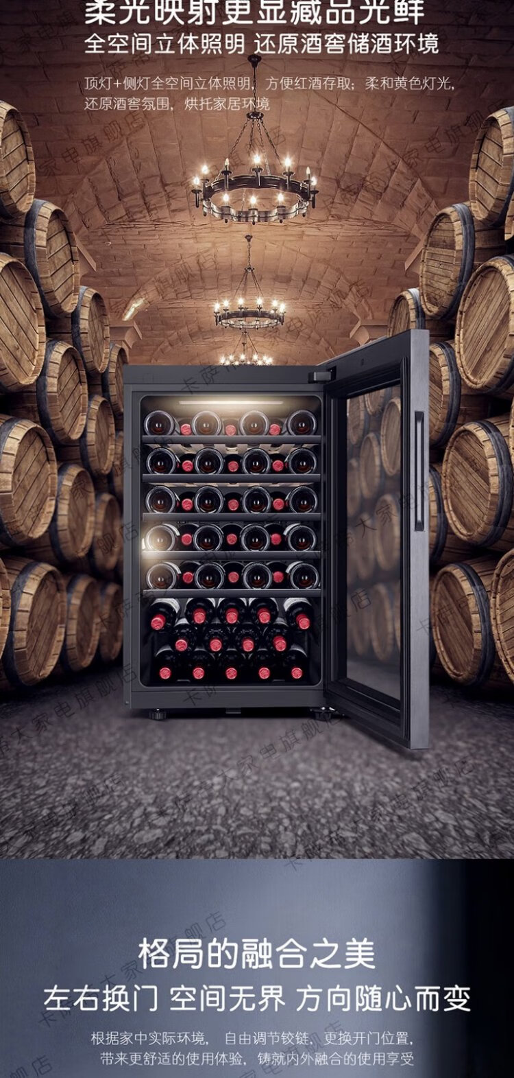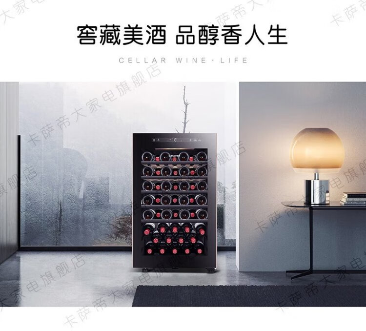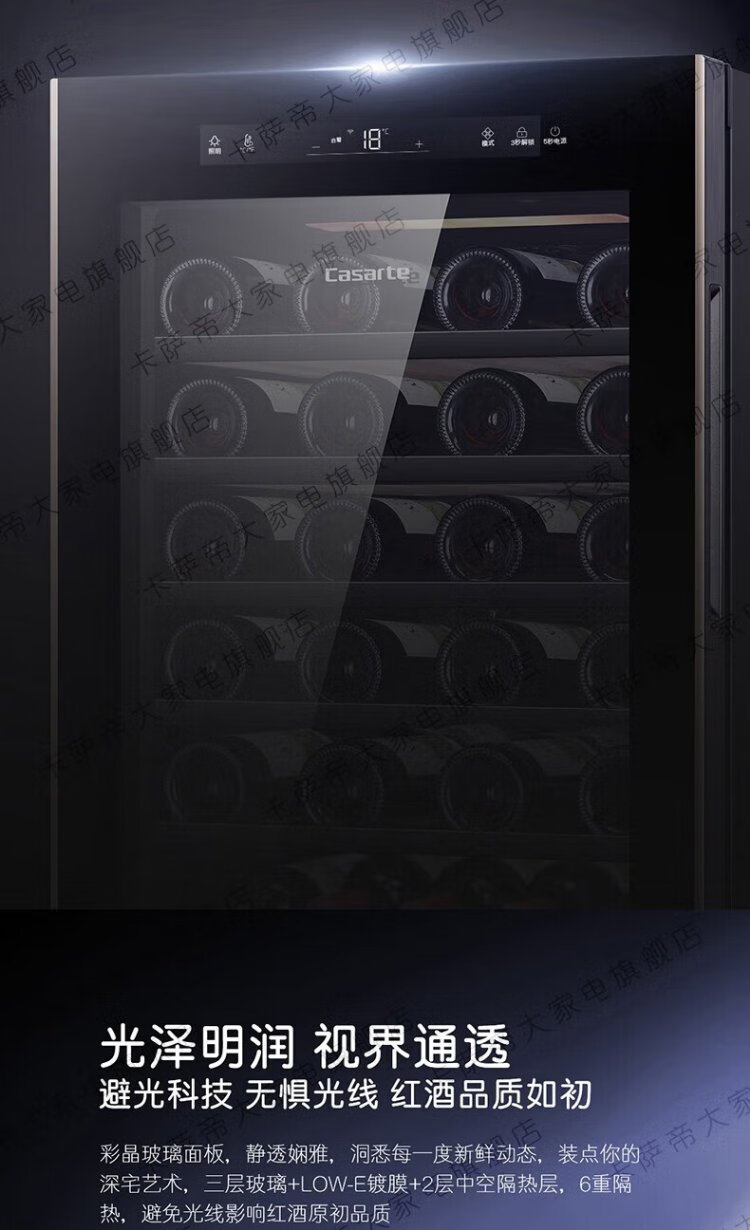 Casarte office home red wine cabinet ice bar 118 liters JC-118U1 constant temperature shockproof cigar tea freshness refrigerator door direction adjustable left and right 118 liters home constant temperature wine cabinet 118L