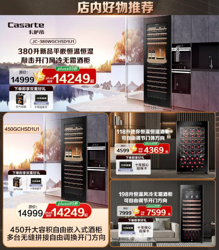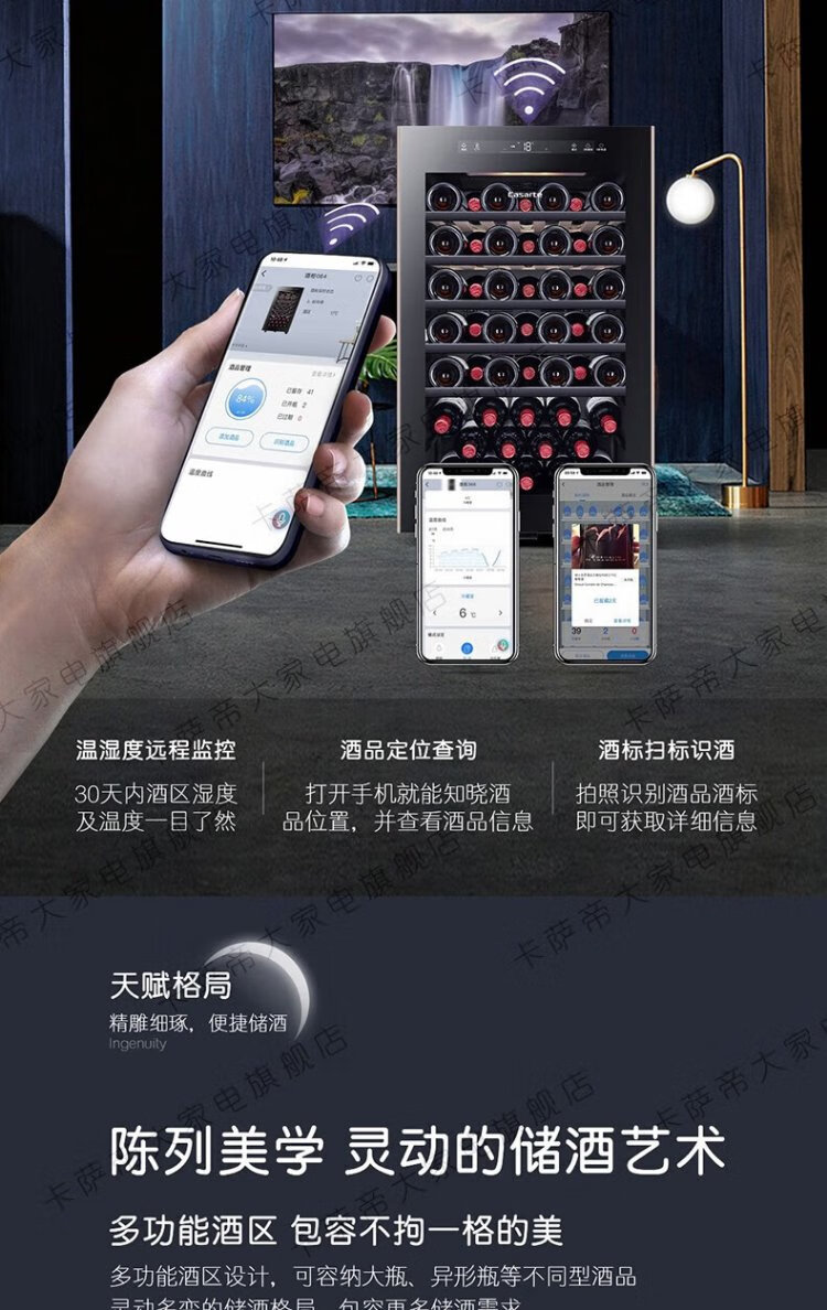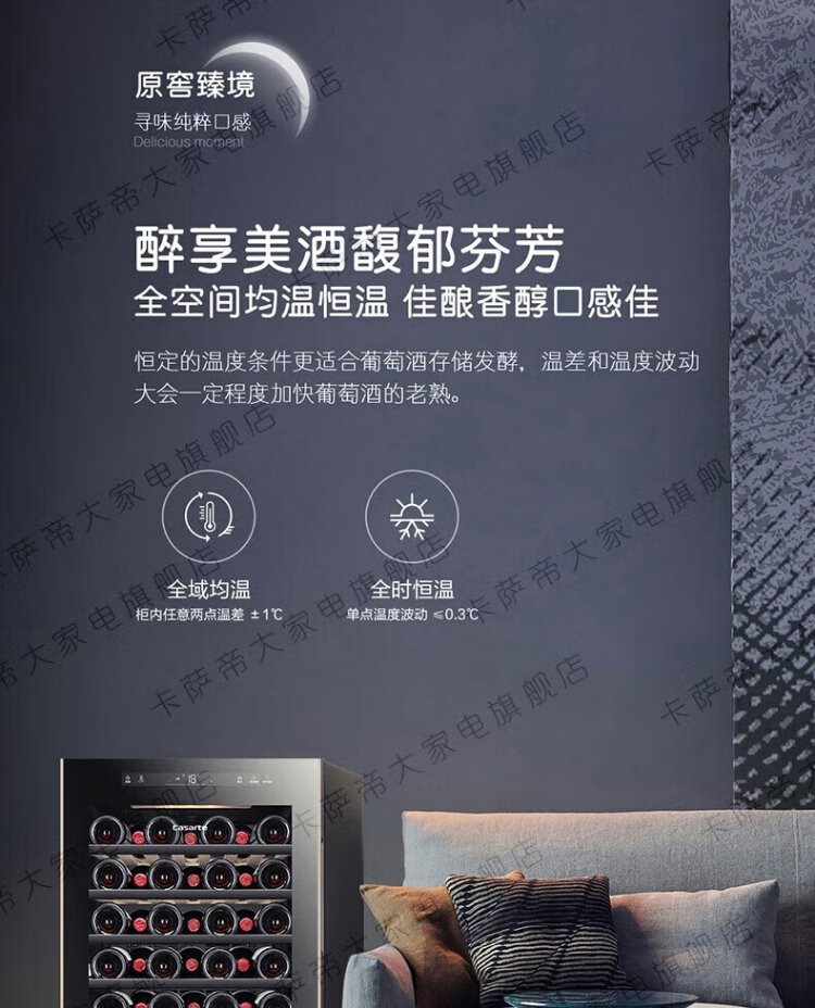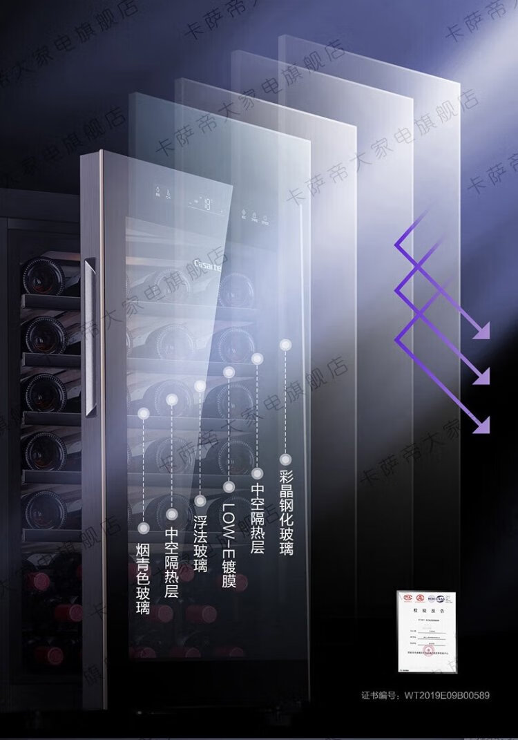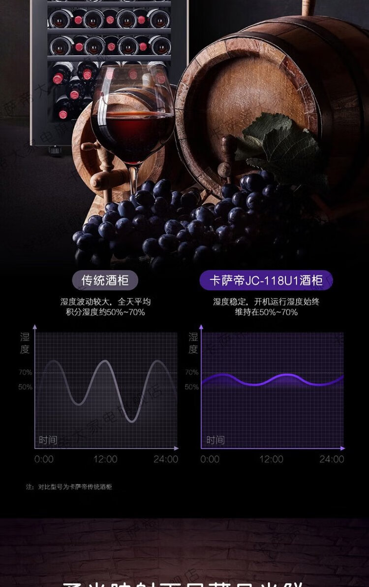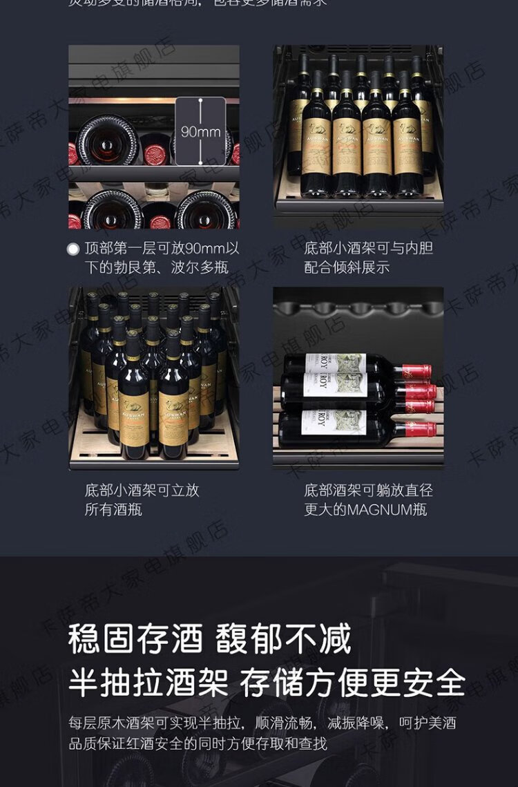 Casarte office home red wine cabinet ice bar 118 liters JC-118U1 constant temperature shockproof cigar tea freshness refrigerator door direction adjustable left and right 118 liters home constant temperature wine cabinet 118L