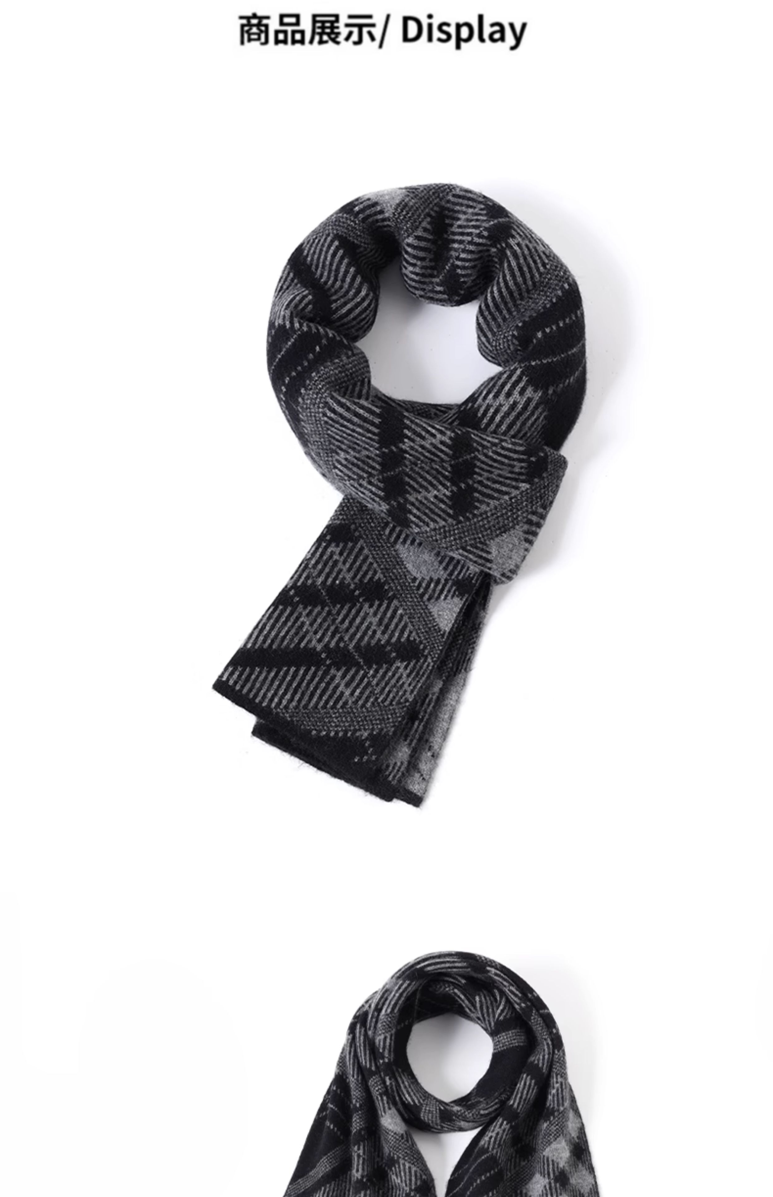 JIUJI Gray Cashmere Scarf Short Men's Winter All-match Warm Knitted Scarf Birthday Gift Box Gray (Short)