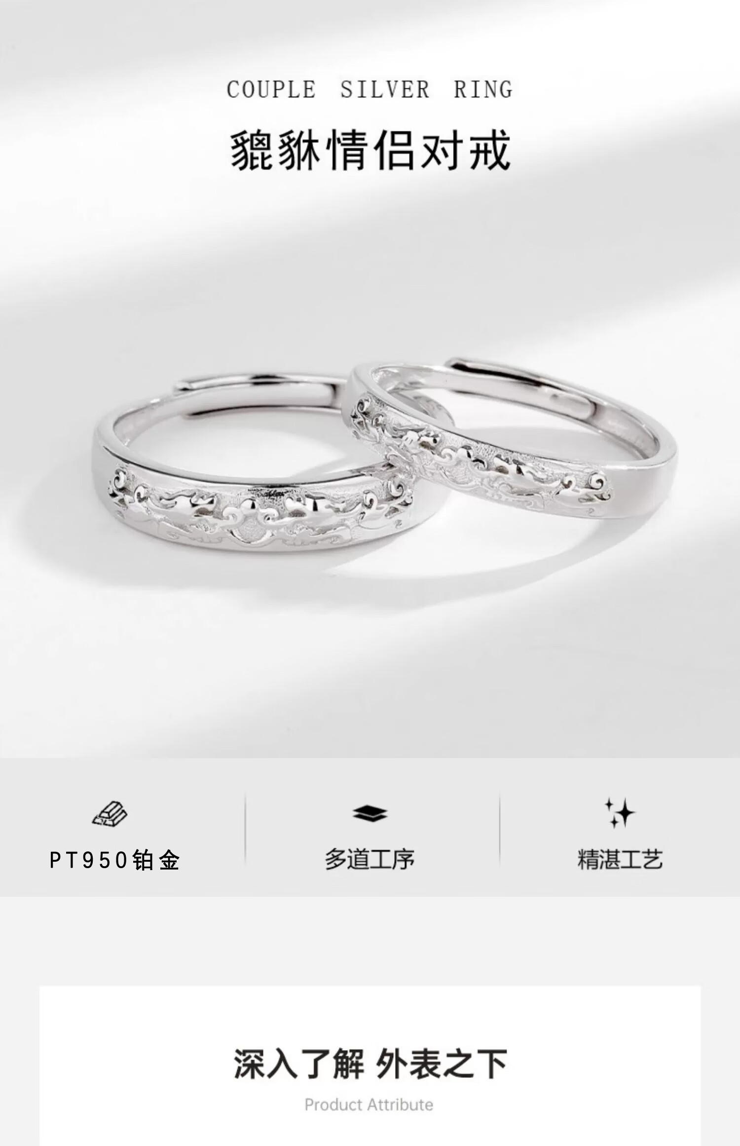 Century-old Fenxiang 950 platinum Pixiu couple ring for girls, a pair of live rings, Valentine's Day birthday gift, a pair of PT950 platinum Pixiu ring + certificate