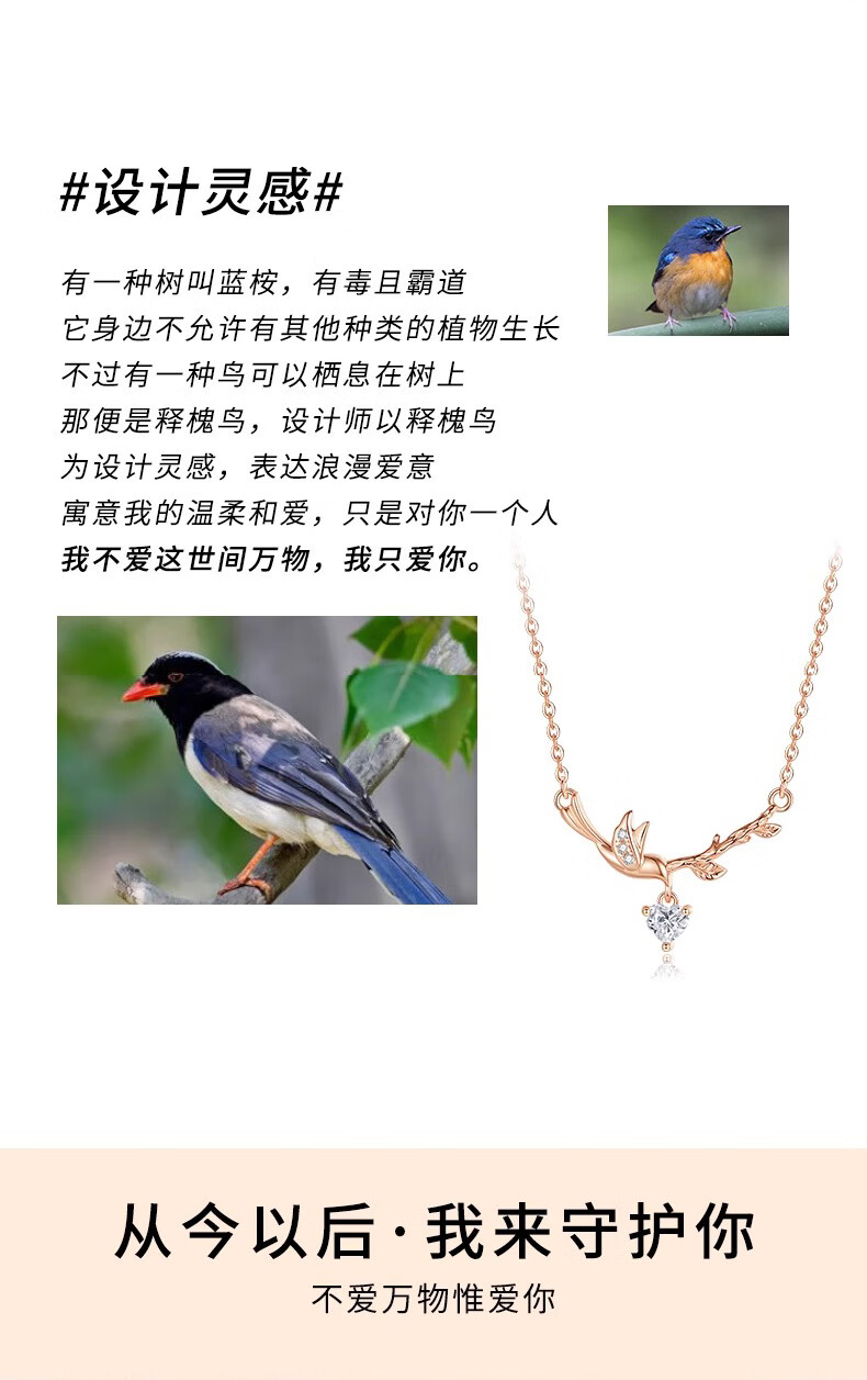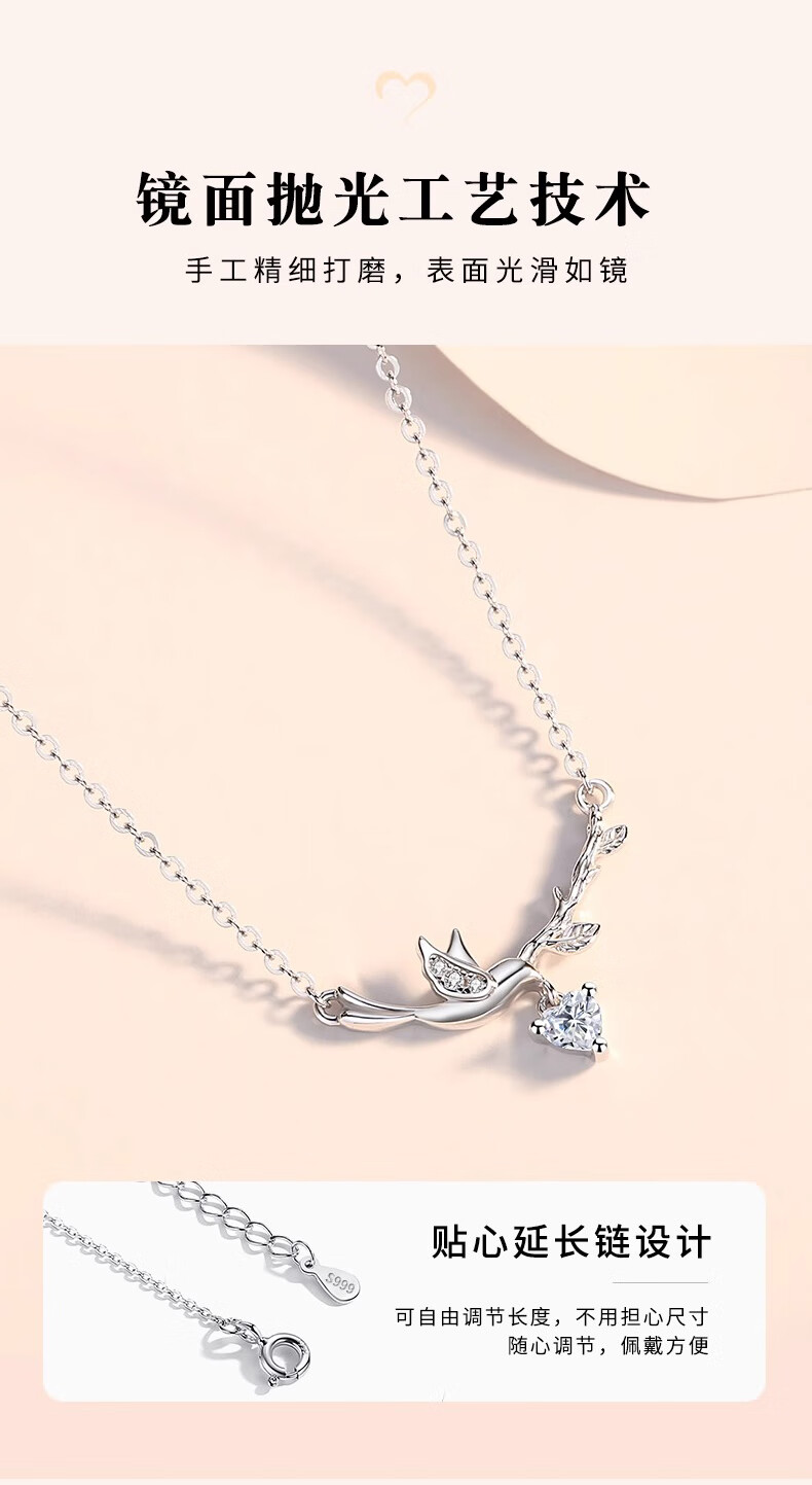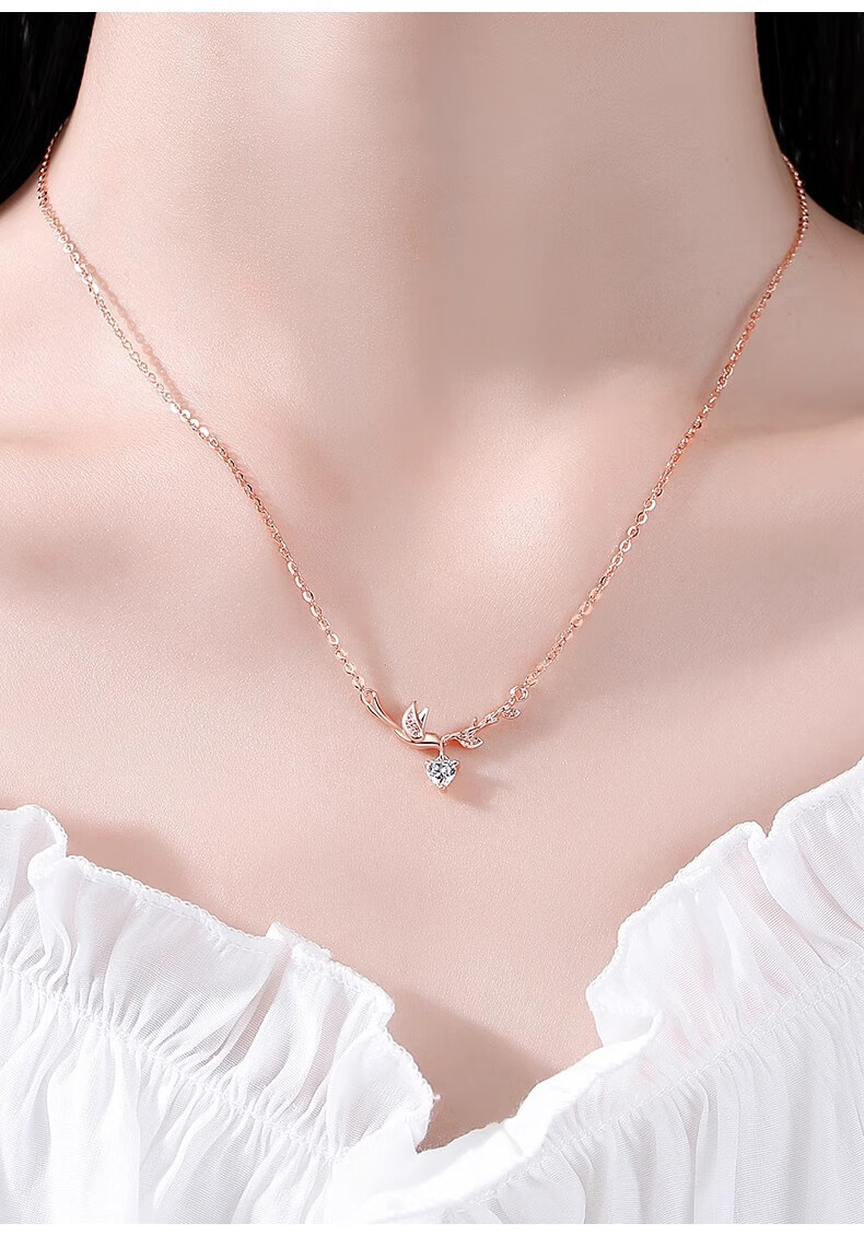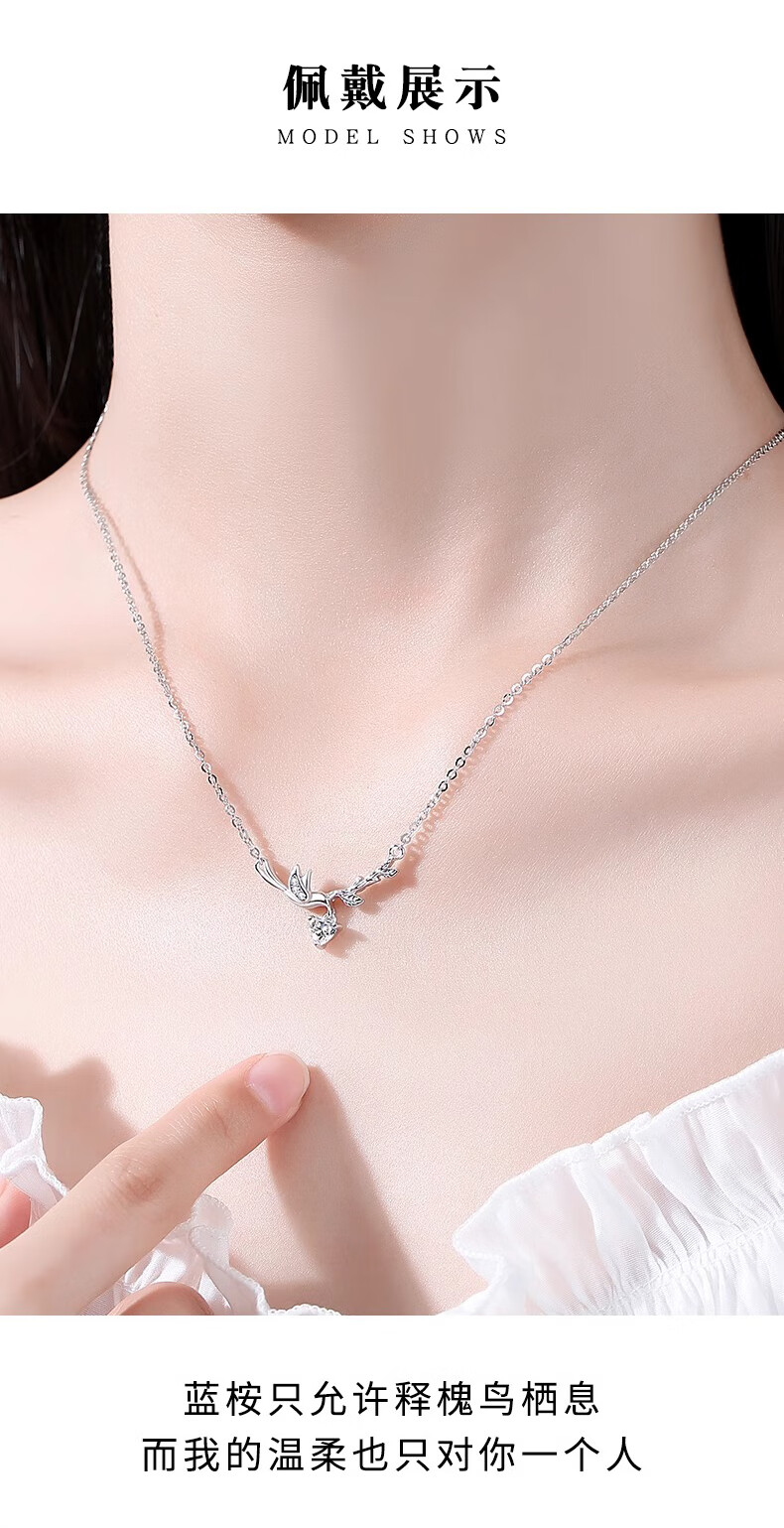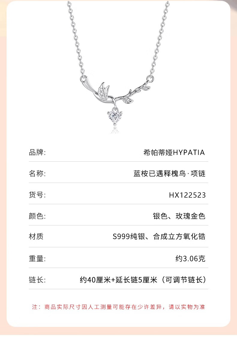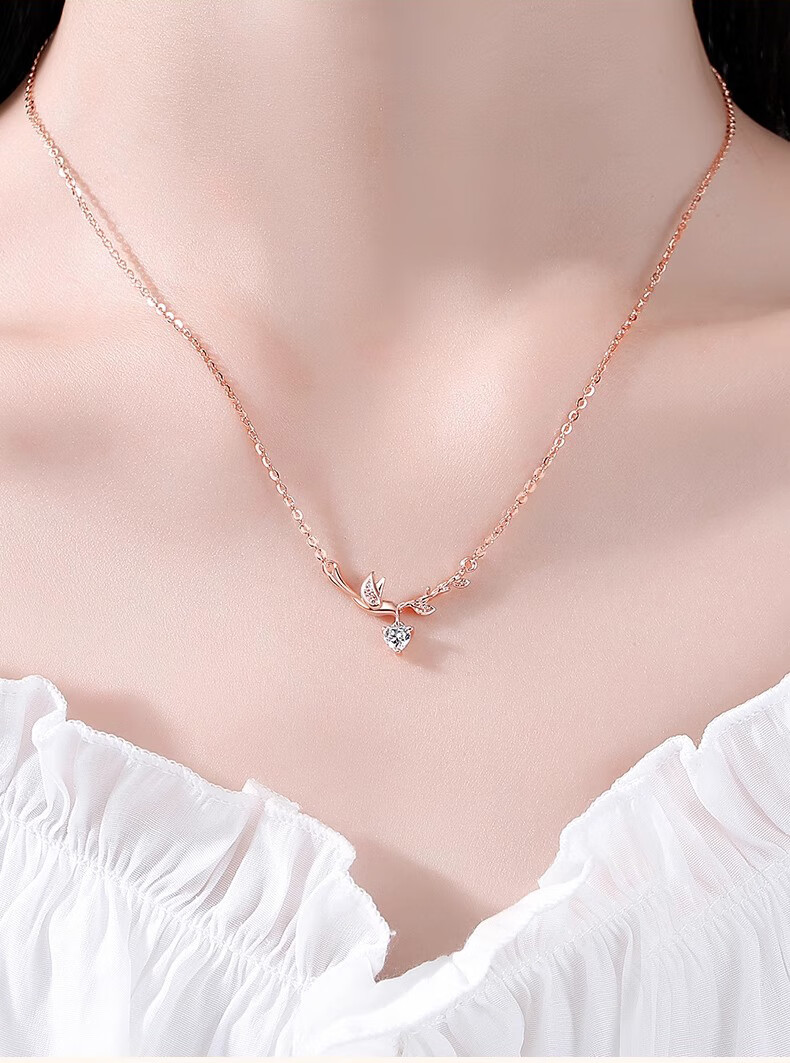 HYPATIA Eucalyptus has met the bird of relief 999 sterling silver necklace women's luxury niche clavicle chain birthday gift for girlfriend 999 silver Eucalyptus has met the necklace - rose gold