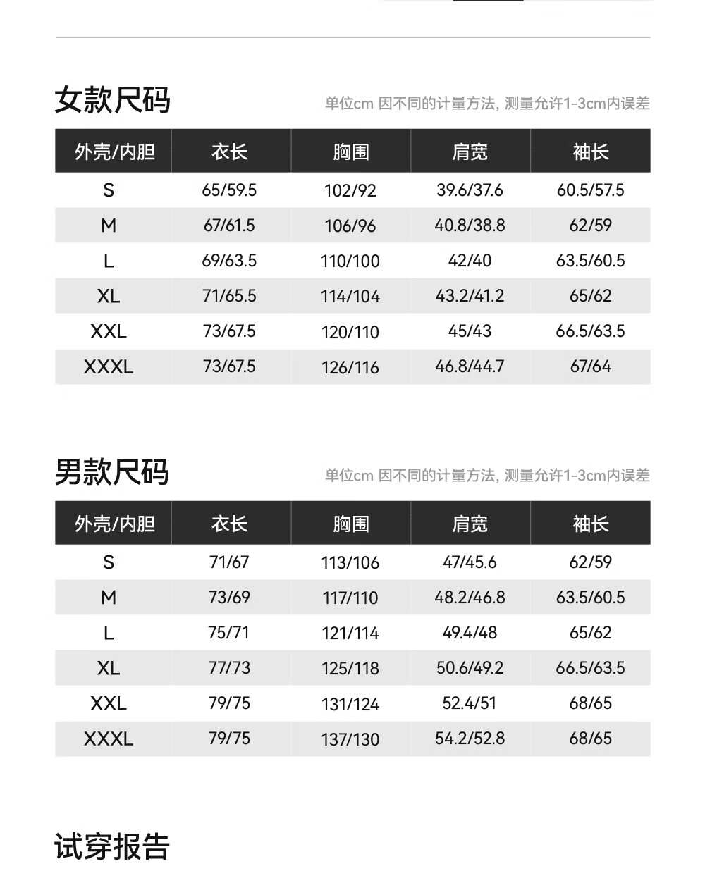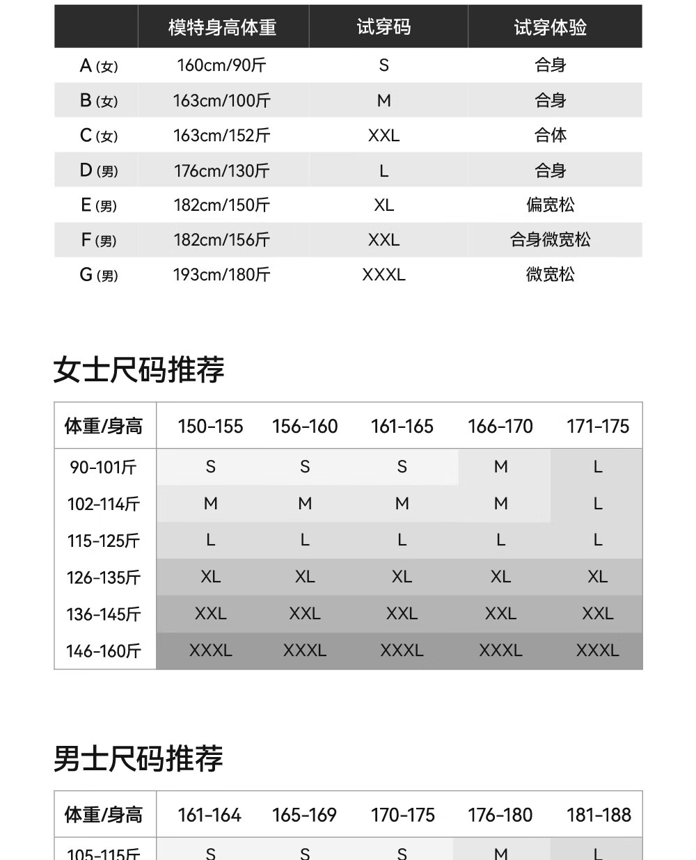 China (cm) 160-165/84-86 165-170 / 88-90 167-172 / 92-96 168-173 / 98-102 170-176 / 106-110