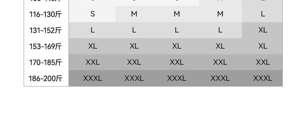 China (cm) 165 / 88-90 170 / 96-98 175 / 108-110 180 / 118-122 185 / 126-130