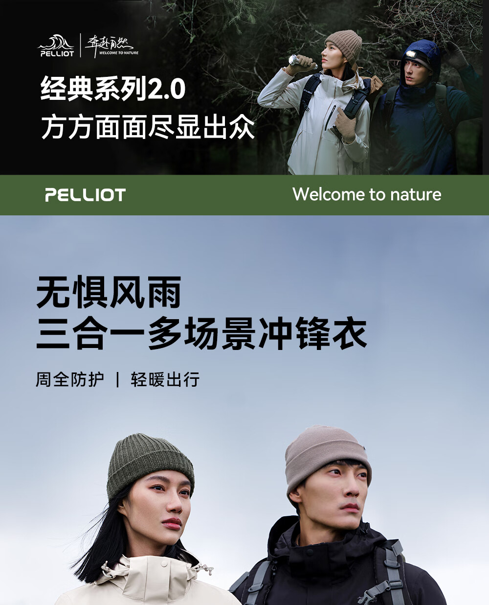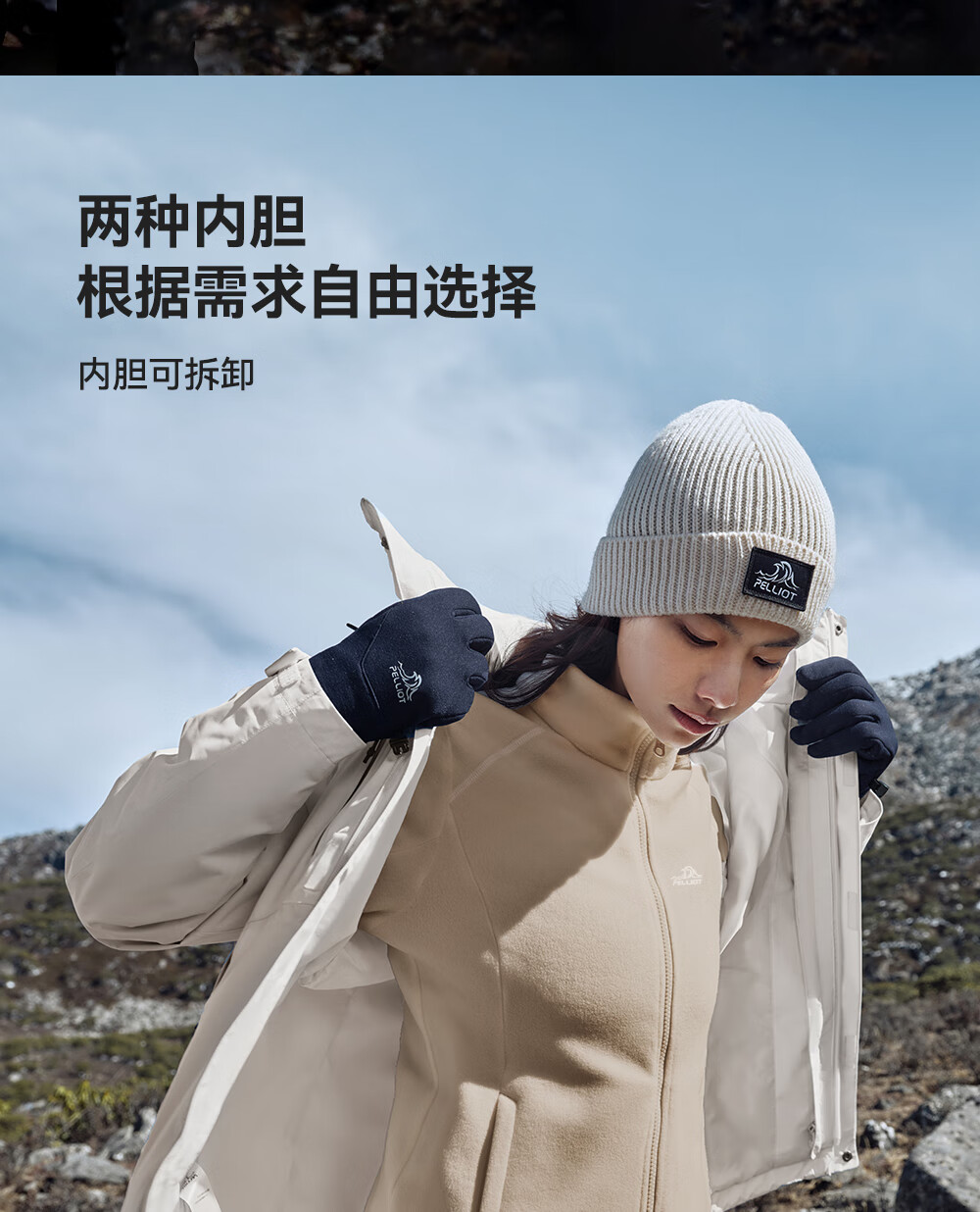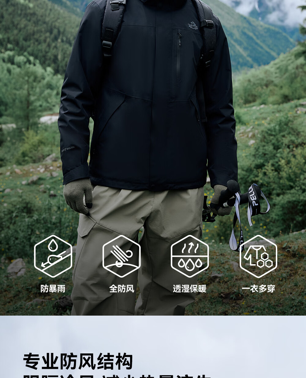 Pelliot Cheng Yi same style mountain 2.0 men's three-in-one fleece liner windproof and waterproof hard shell jacket Cheng Yi same style men's obsidian black | fleece two-piece set L Female 115-125 Jin Jin equals 0.5 kg Male 131-152