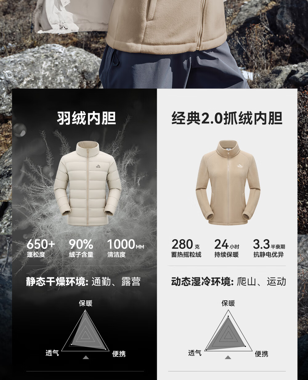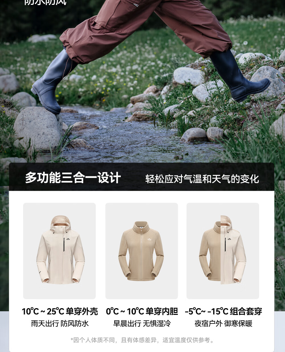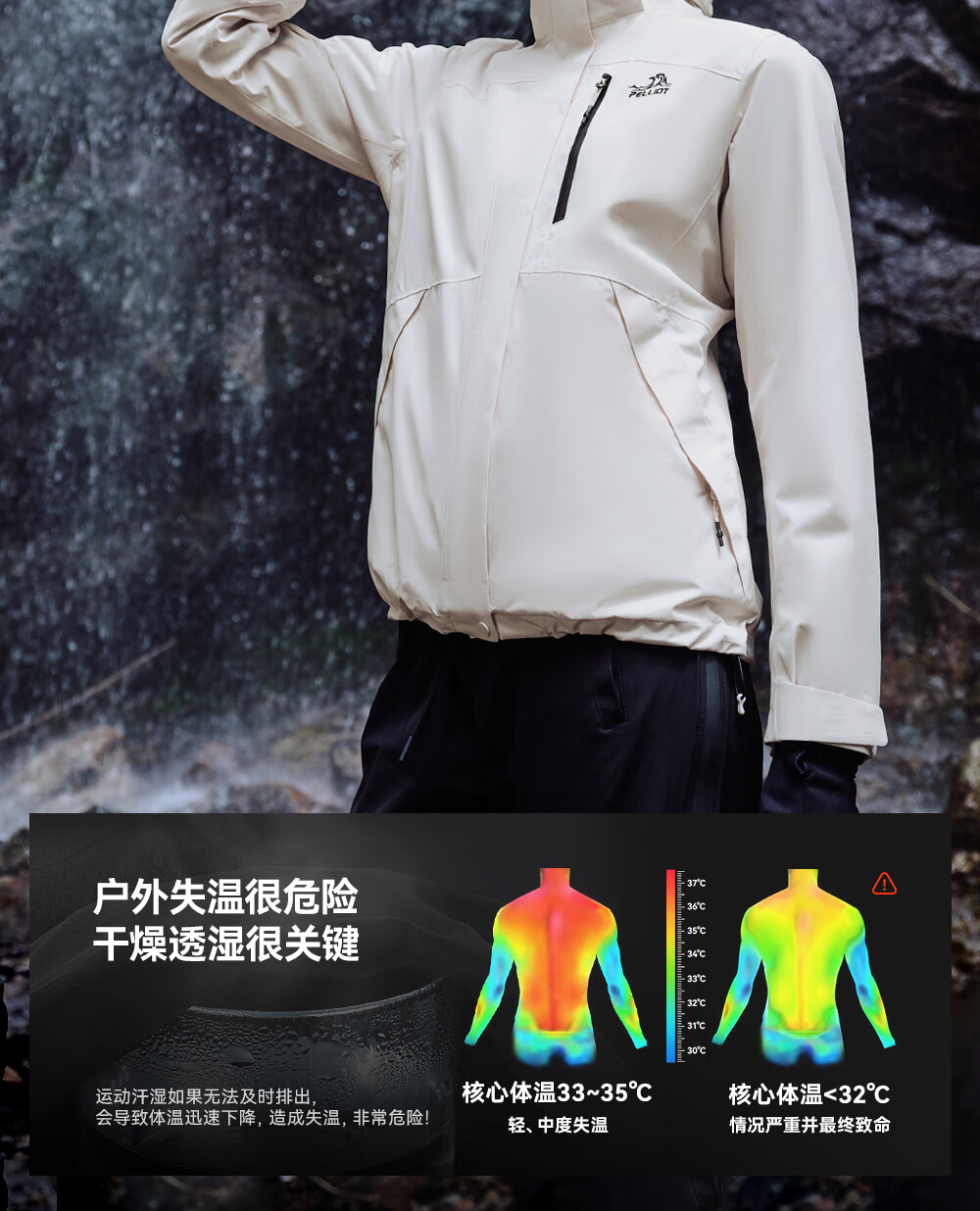 Pelliot Cheng Yi same style mountain 2.0 men's three-in-one fleece liner windproof and waterproof hard shell jacket Cheng Yi same style men's obsidian black | fleece two-piece set L Female 115-125 Jin Jin equals 0.5 kg Male 131-152