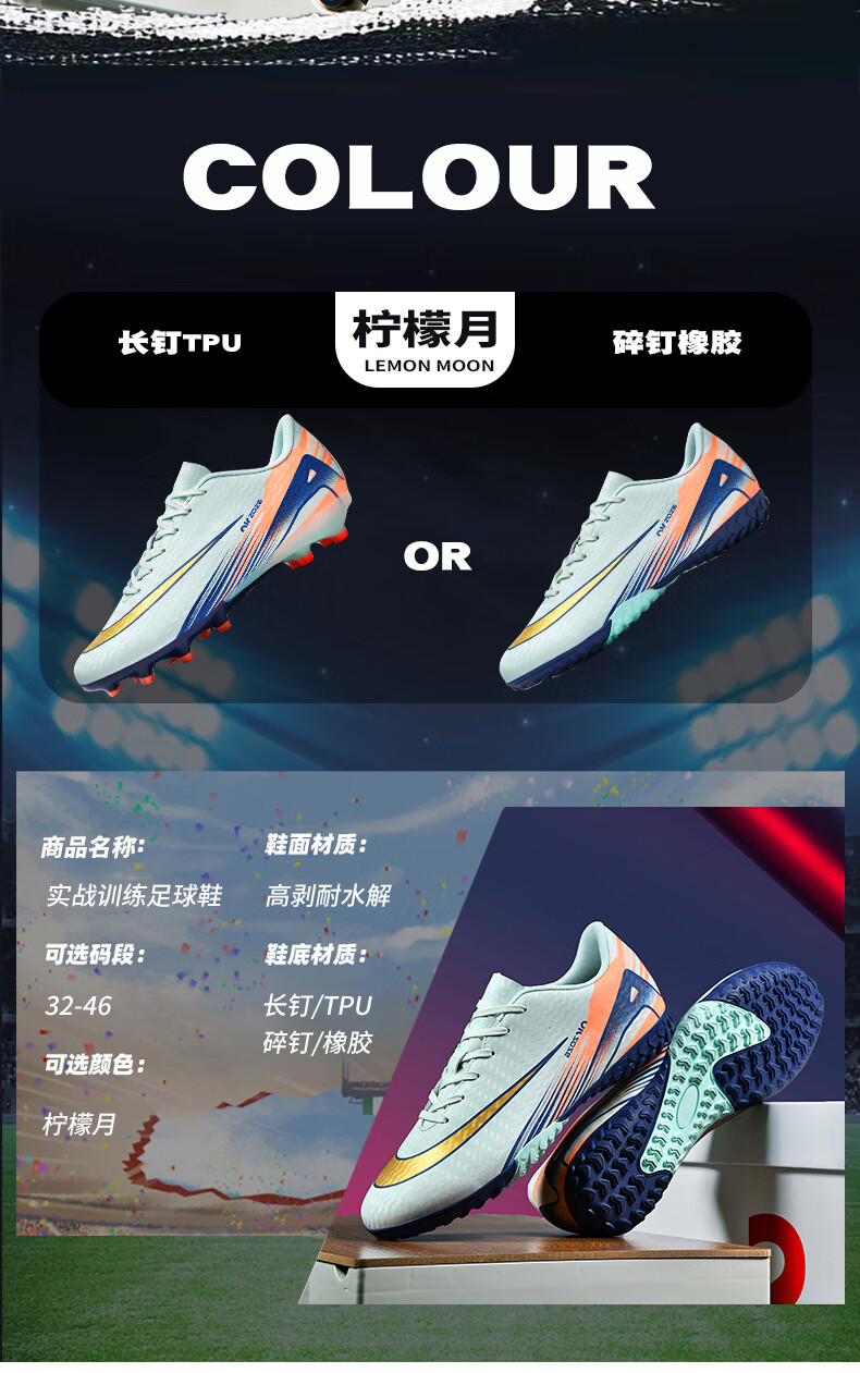 WEJIESS football shoes TF broken nail training shoes men and women adult children primary and secondary school students high school entrance examination rubber nail particles 966 shallow moon broken nails 42 (260mm) socks guard shoe bag