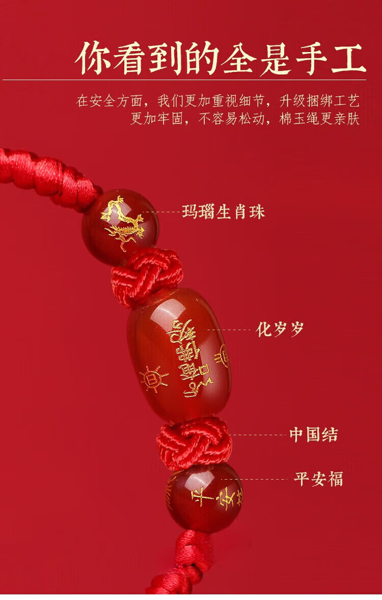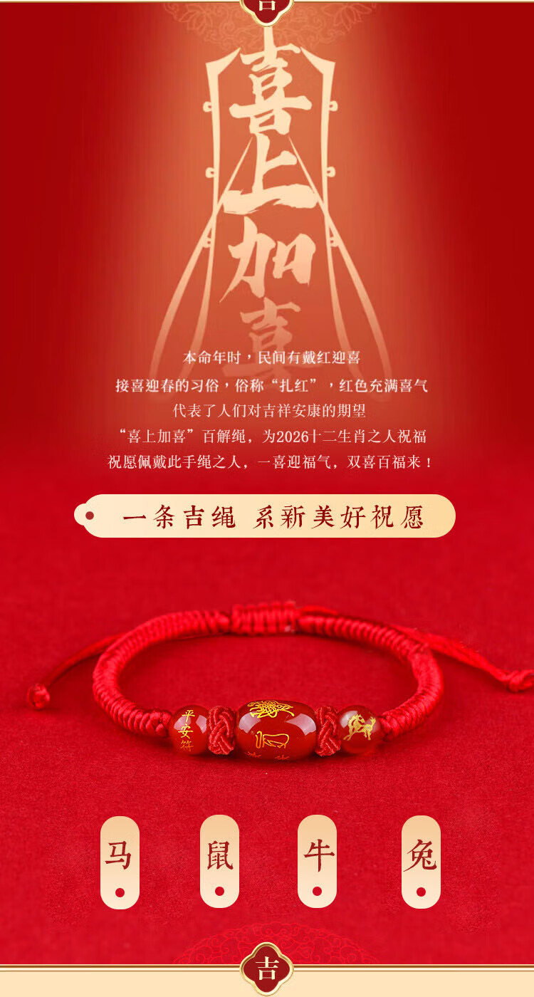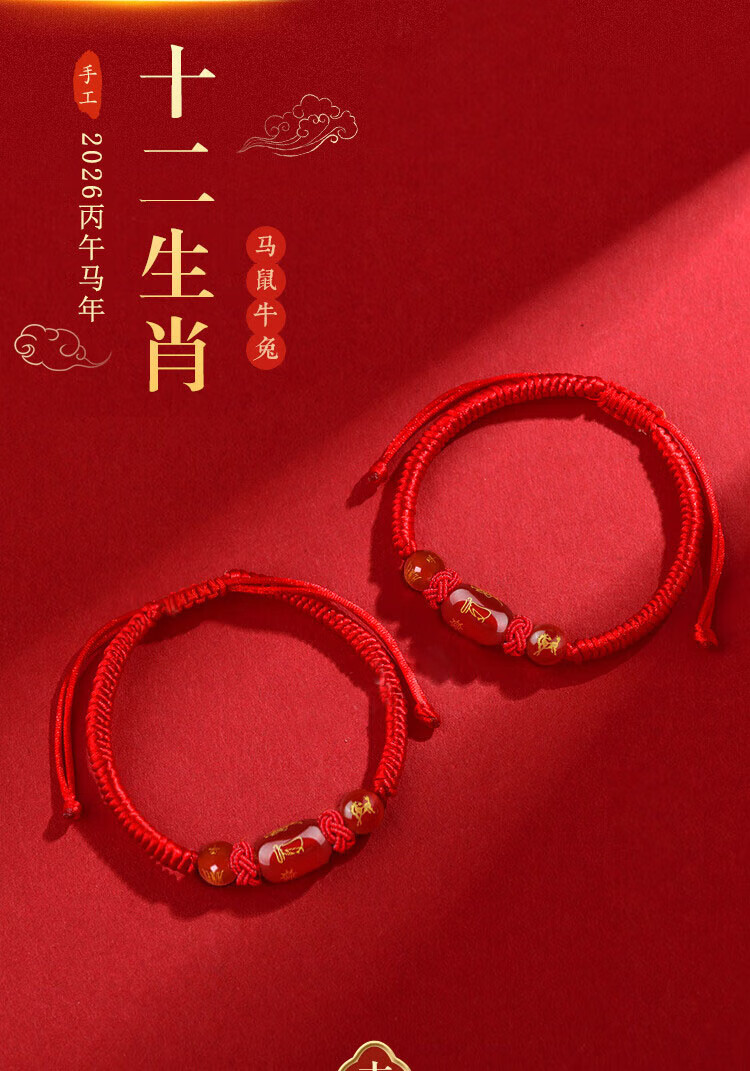 2026 zodiac year red rope bracelet, horse year broken red Tai Sui bracelet, agate rat, ox and rabbit amulet for men and women, zodiac sign (horse) zodiac year 2026