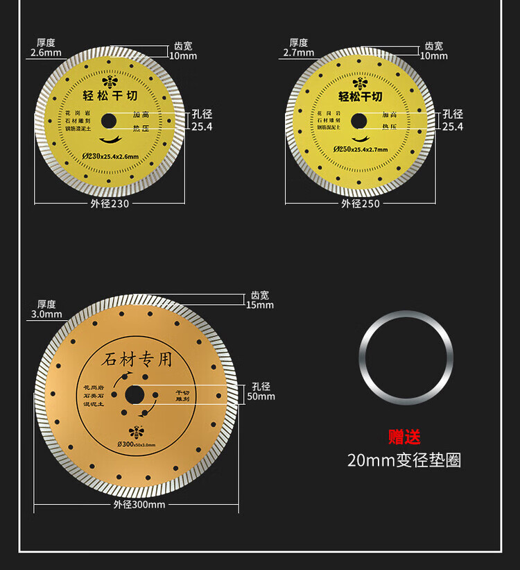 Little Bee diamond saw blade for easy dry cutting of grooved marble, granite, concrete tiles, Little Bee for corrugated stone 300x3.0x25.4