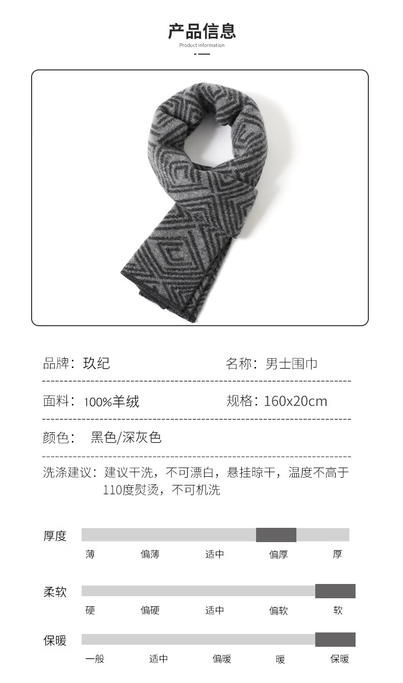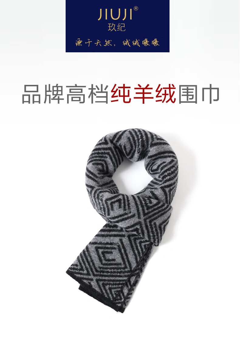 JIUJI 100% pure cashmere scarf men's short 2025 winter gift for husband and boyfriend male student's day small scarf gray (short style)