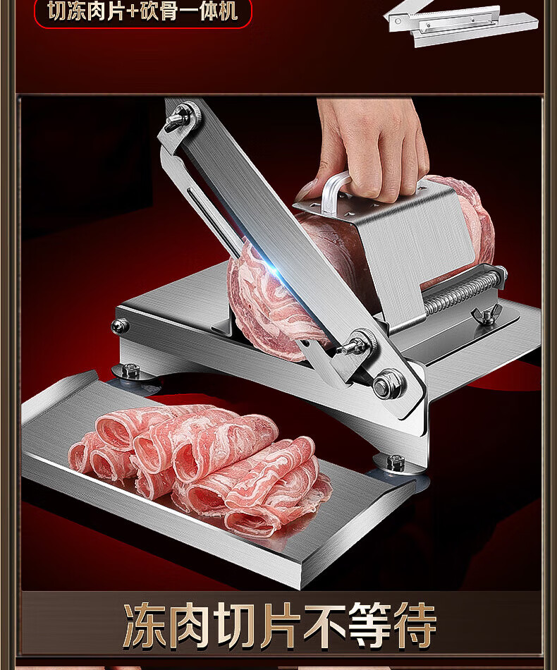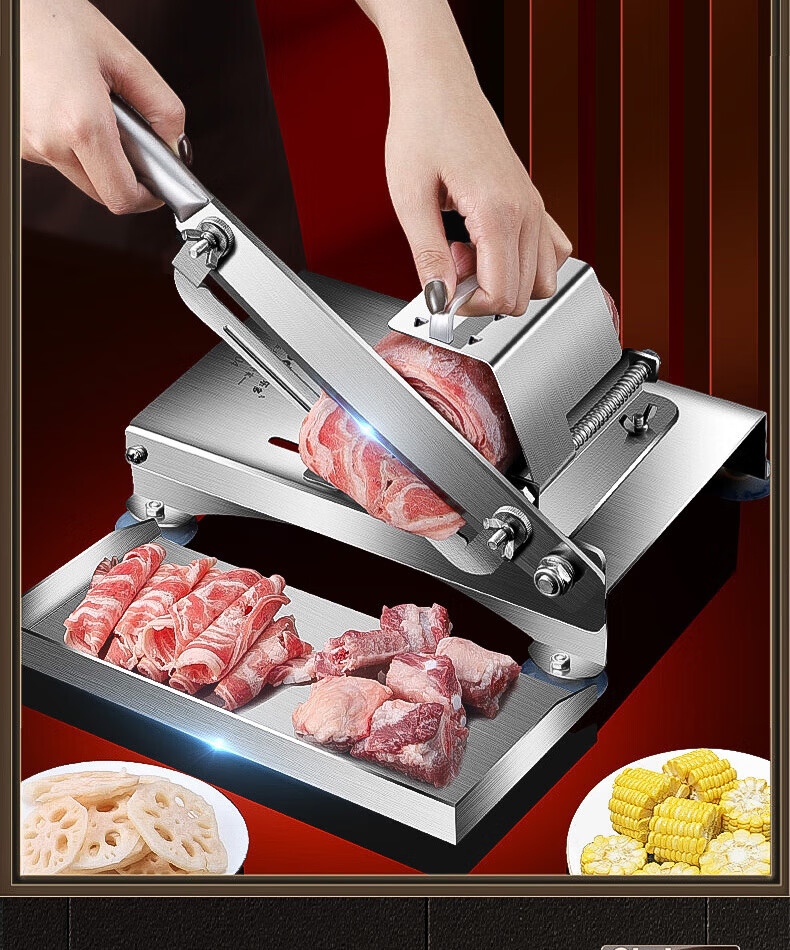 OLODO mutton roll slicer 304 stainless steel meat slicer bone cutter manual meat cutting and planing meat roll frozen meat 304 slicing and bone cutting all-in-one machine 40 frozen meat bags
