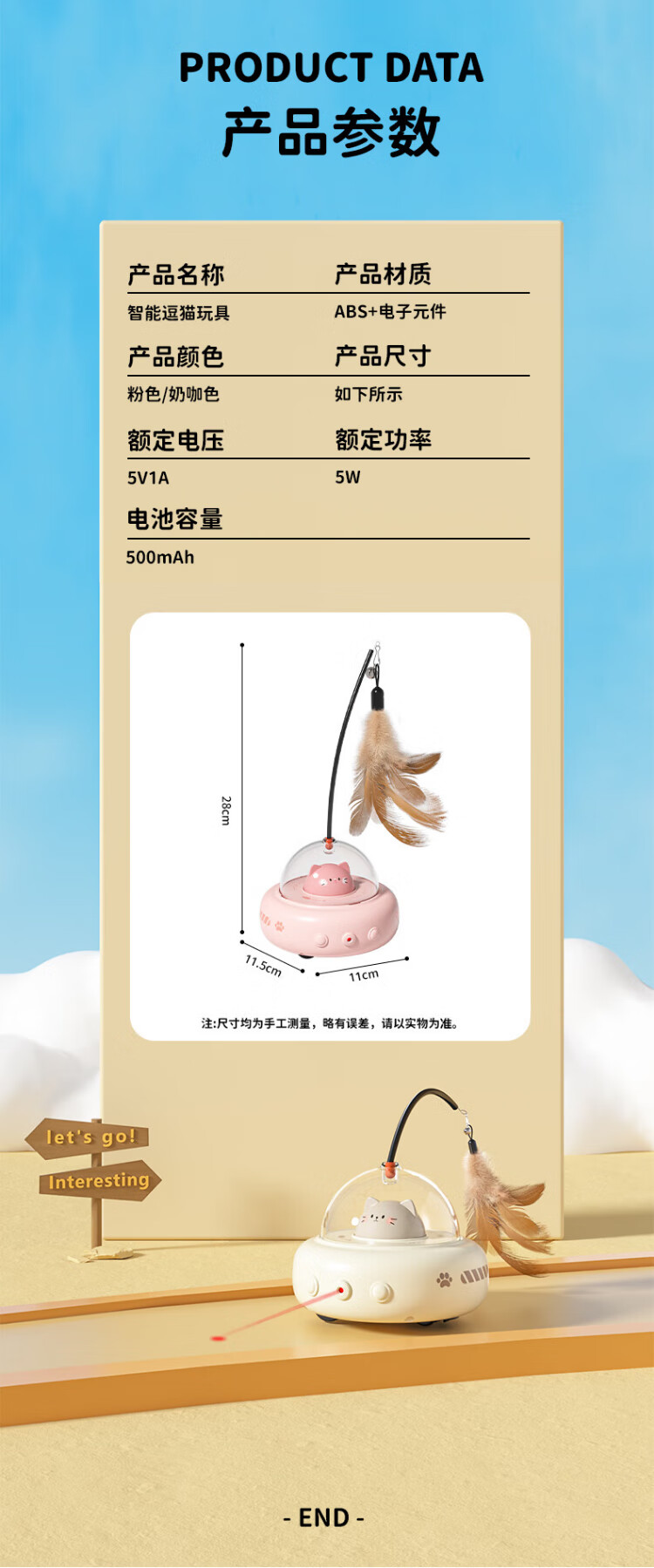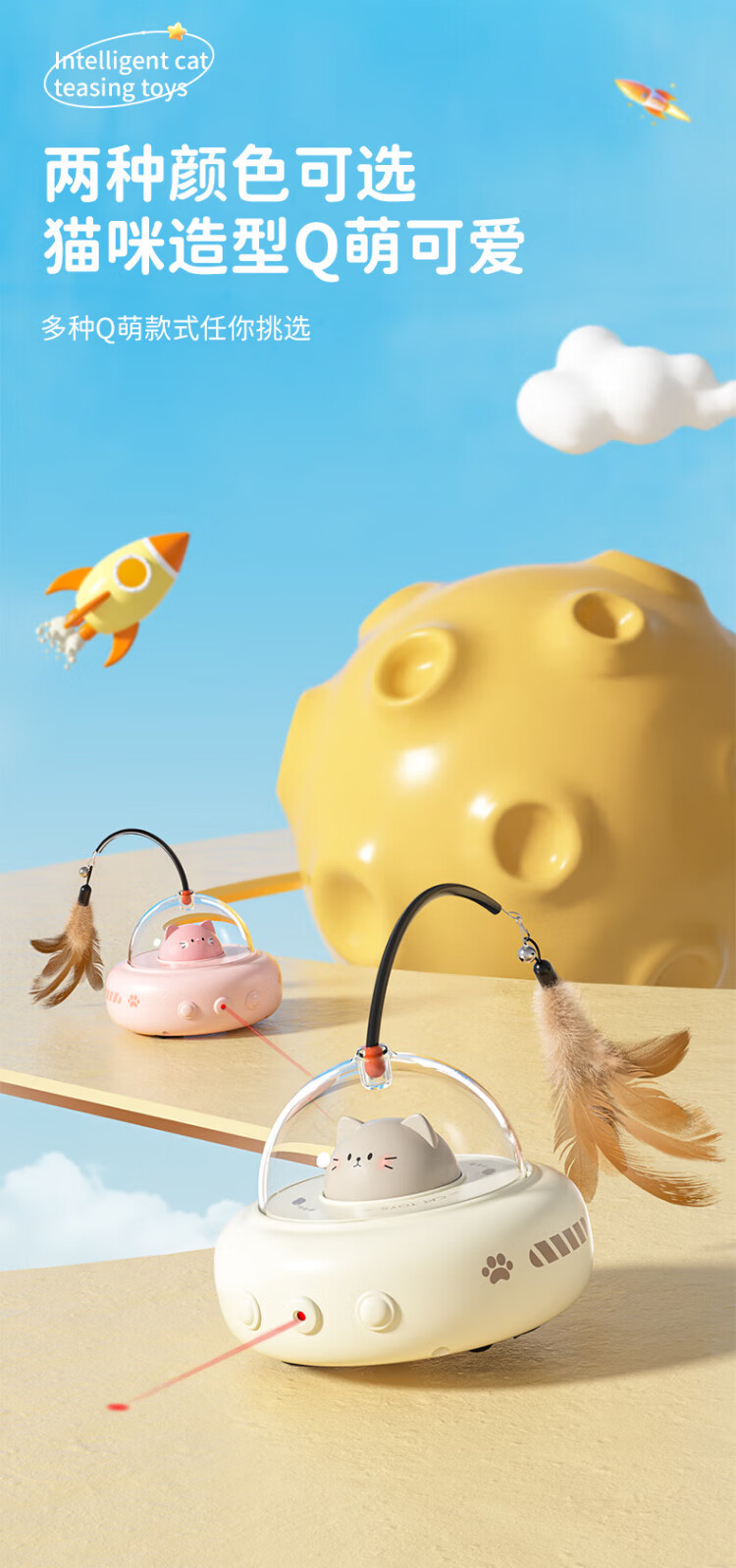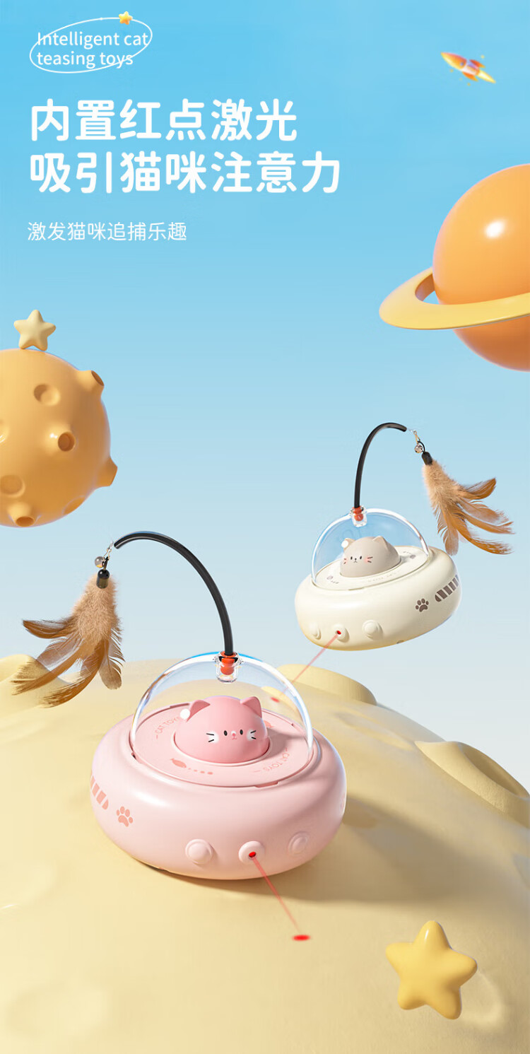 Huayuan Pet Toy (hoopet) automatic cat toy wand, self-stimulation and boredom relief, cat amusing laser pen, cat energy-consuming electric smart pet car, milk coffee color, laser automatic cat teasing
