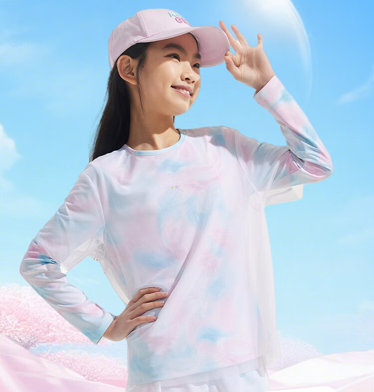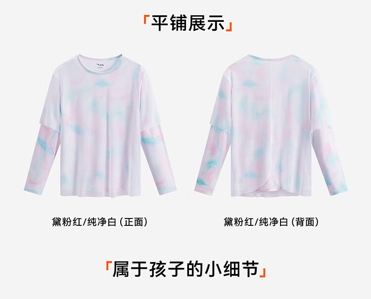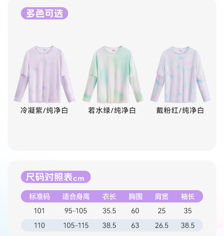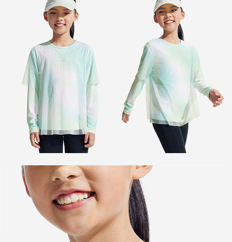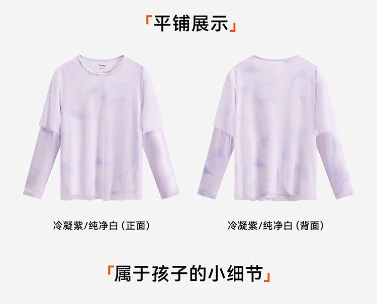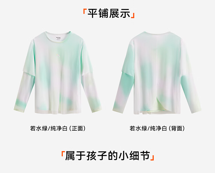 ANTA Children's T-shirt Girls' Clothing 2025 Summer and Autumn New Fairy Breeze T Comfortable Long T Fake Two-piece T-shirt Top Ruo Aqua/Pure White-2 100 cm