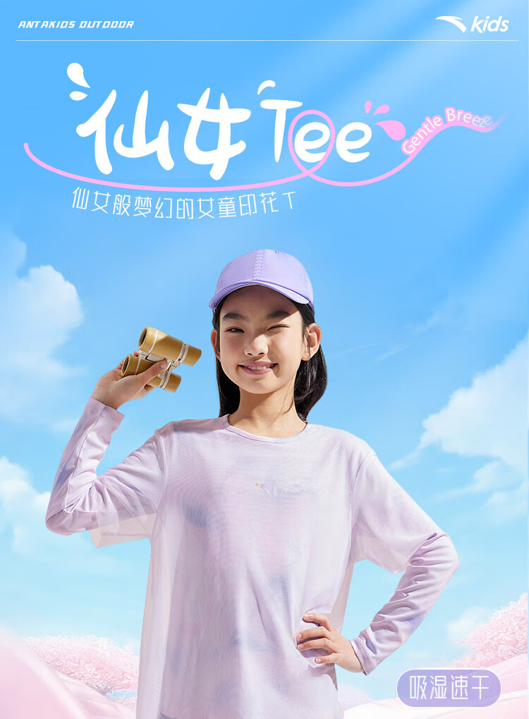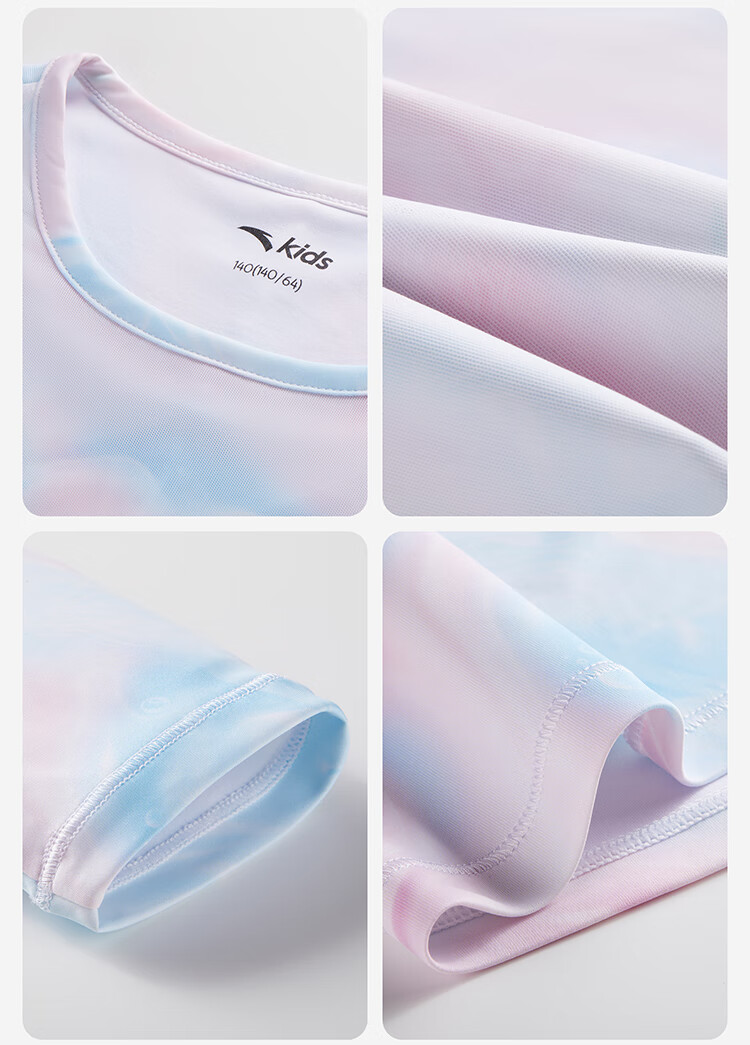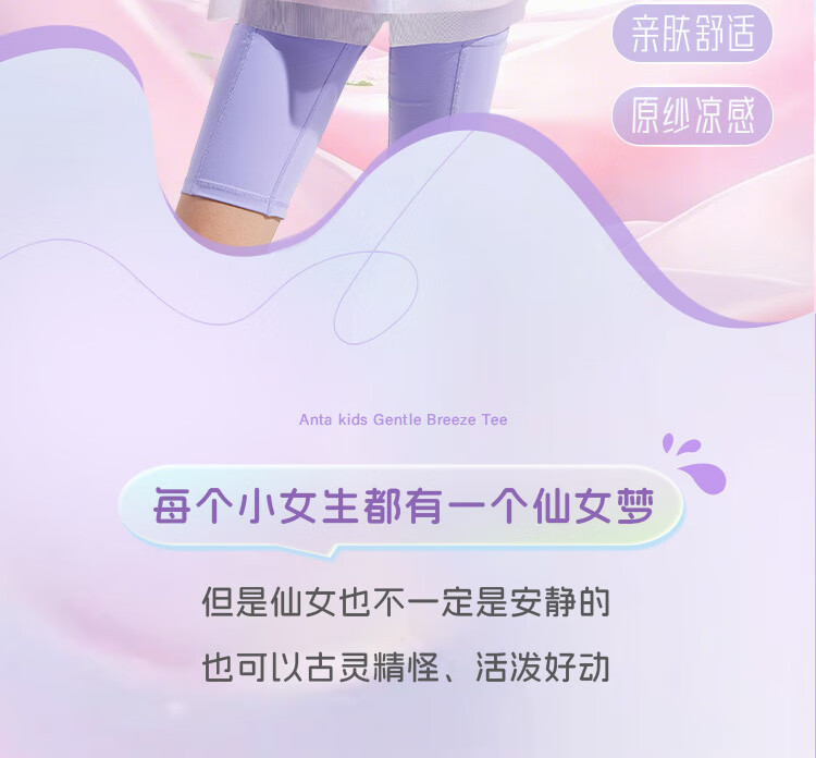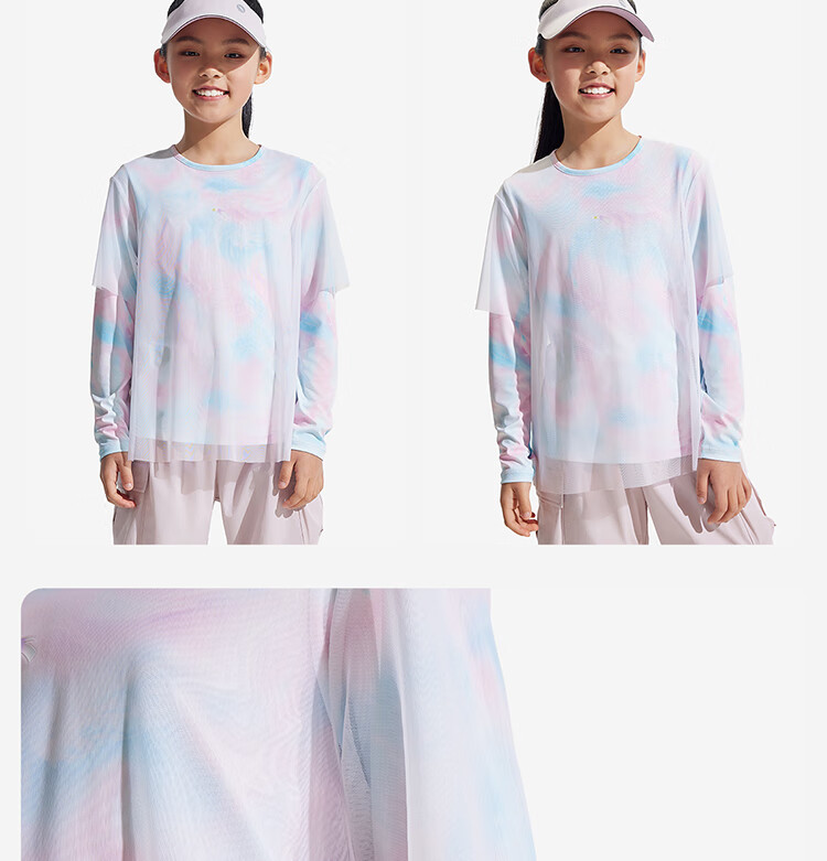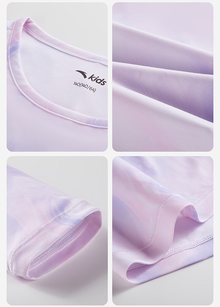 ANTA Children's T-shirt Girls' Clothing 2025 Summer and Autumn New Fairy Breeze T Comfortable Long T Fake Two-piece T-shirt Top Ruo Aqua/Pure White-2 100 cm