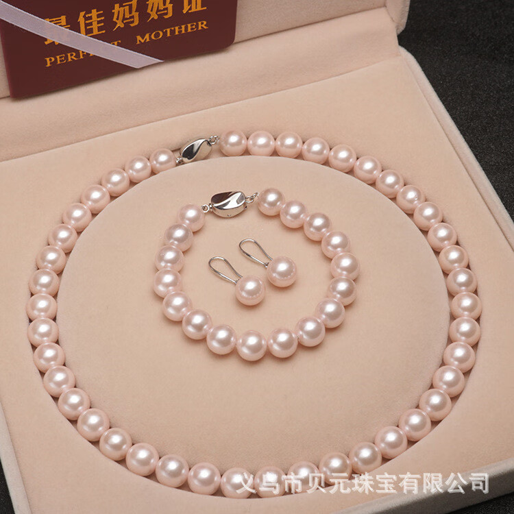 DR GRAFFCARNY Natural Shell Pearl Jewelry Set Round Shell Pearl Necklace Bracelet Earrings Three Piece Set Attractive Mom Chain White 8mm Set