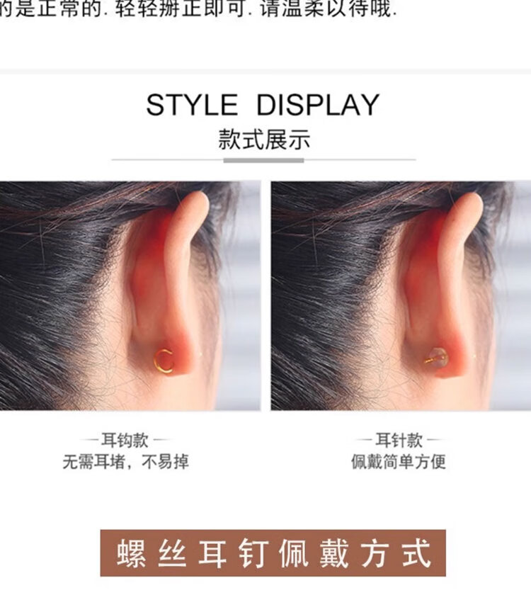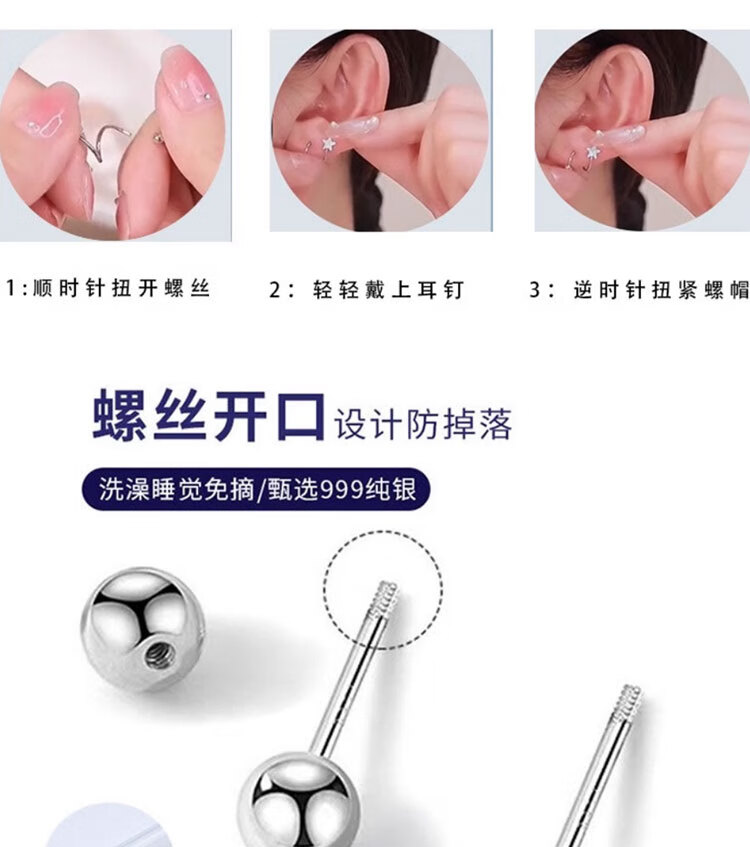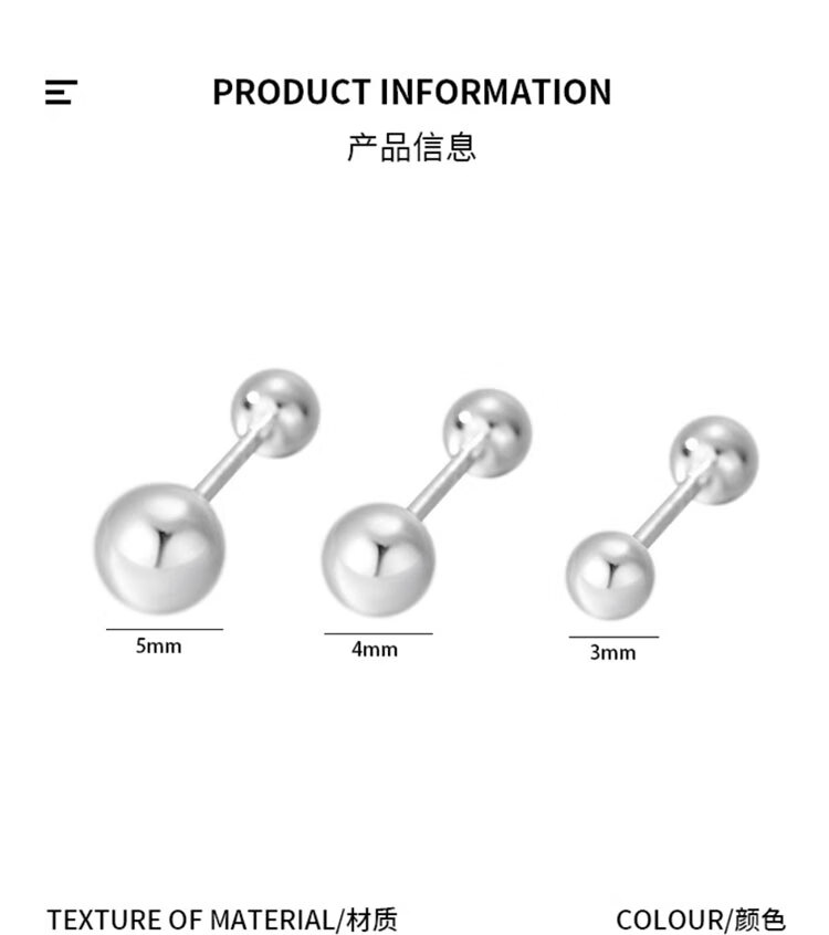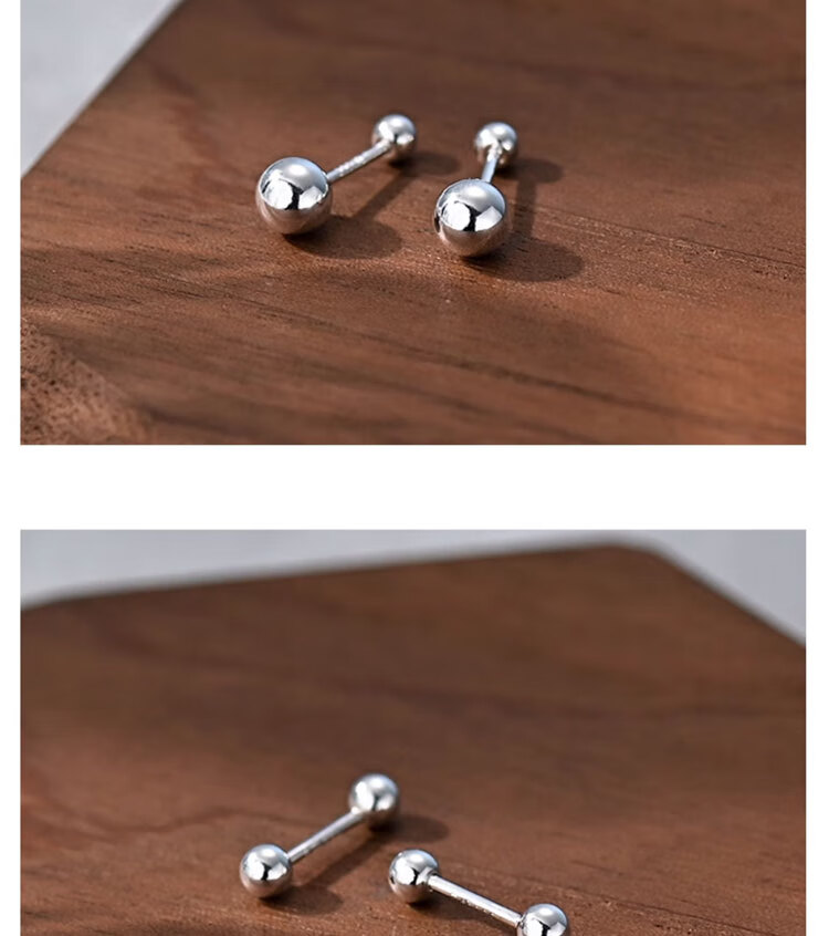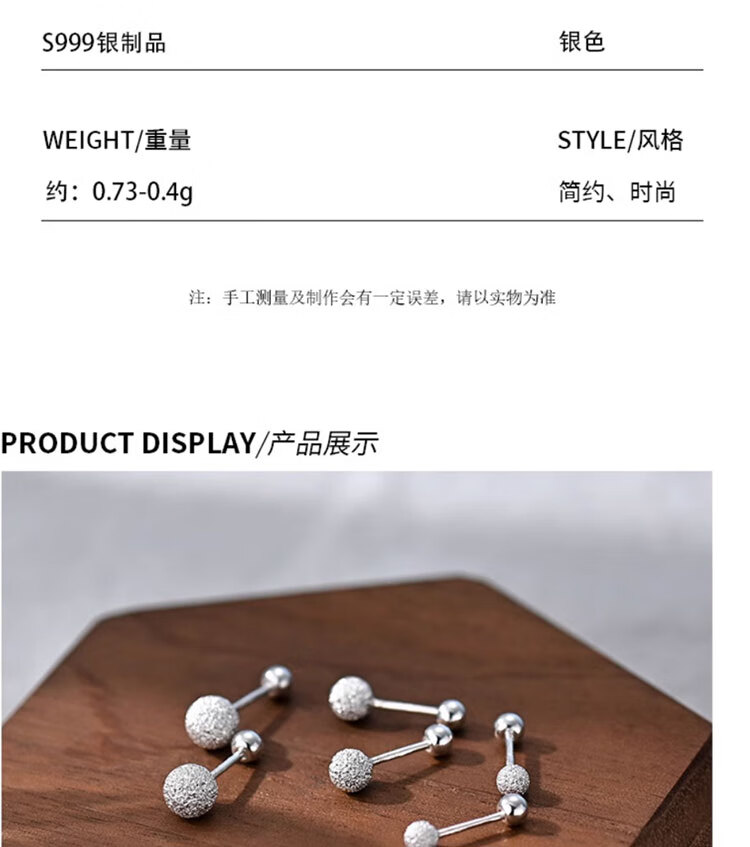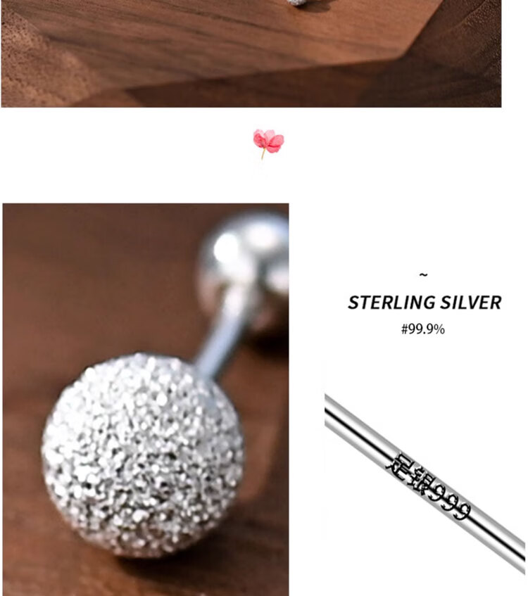 Mansheng 999 sterling silver bean earrings screw twist ear piercing ear bone nails double-headed ear sticks to prevent the earrings from falling off when sleeping frosted bean earrings 3mm