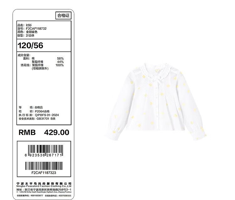 MiniPeace Children's Spring New Girls' Shirt F2CAF1187 Goldfinch Color 120