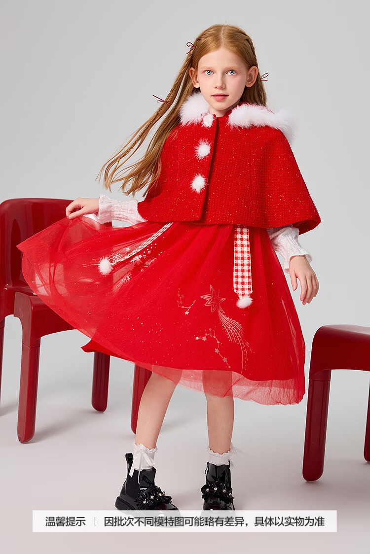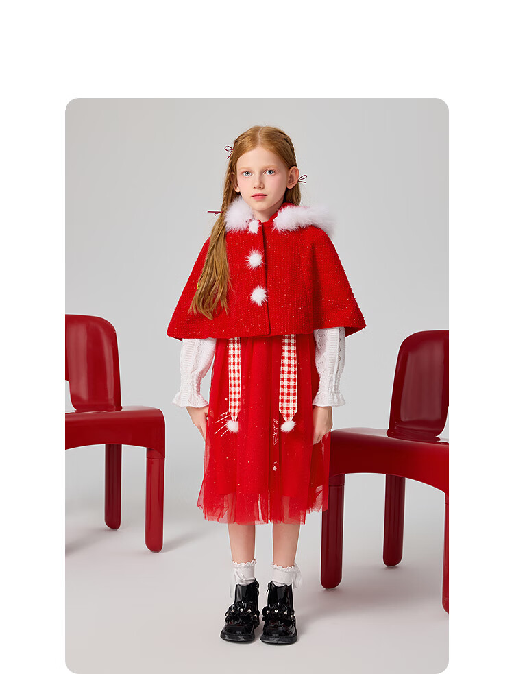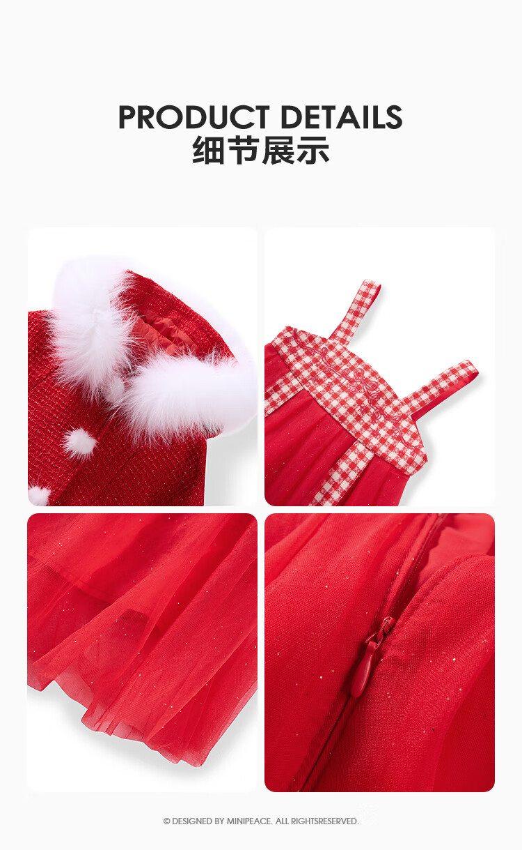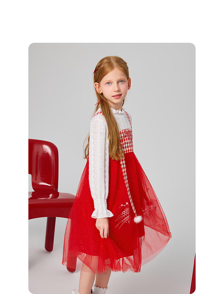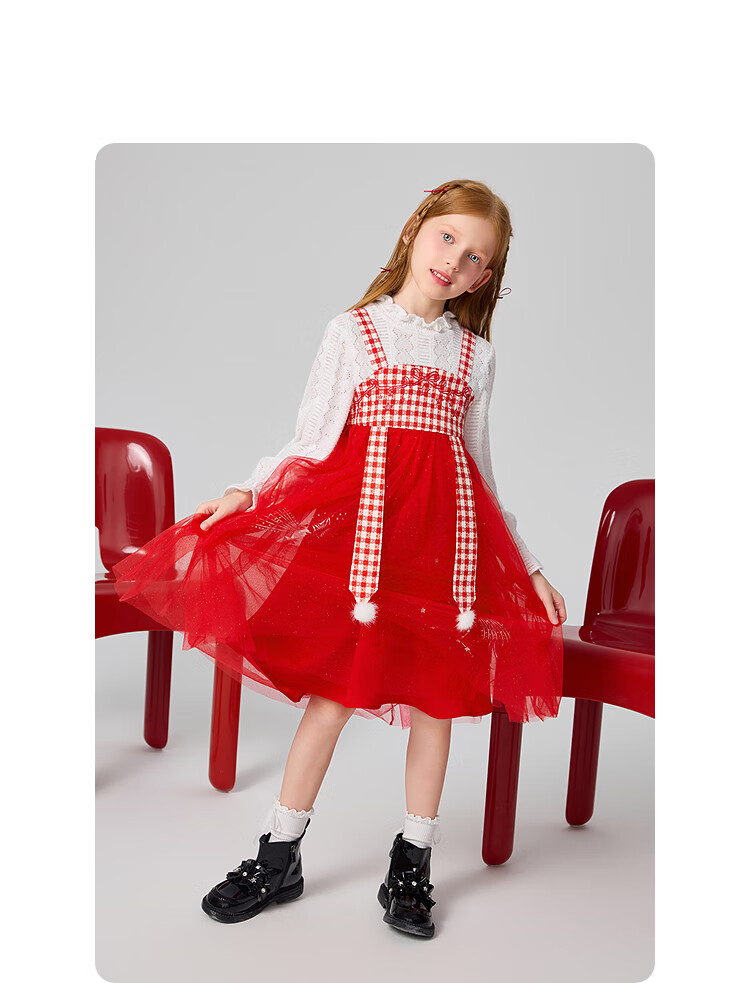 MiniPeace Children's Clothing Spring New Girls Dress F2FAF1190 Chinese Red 130