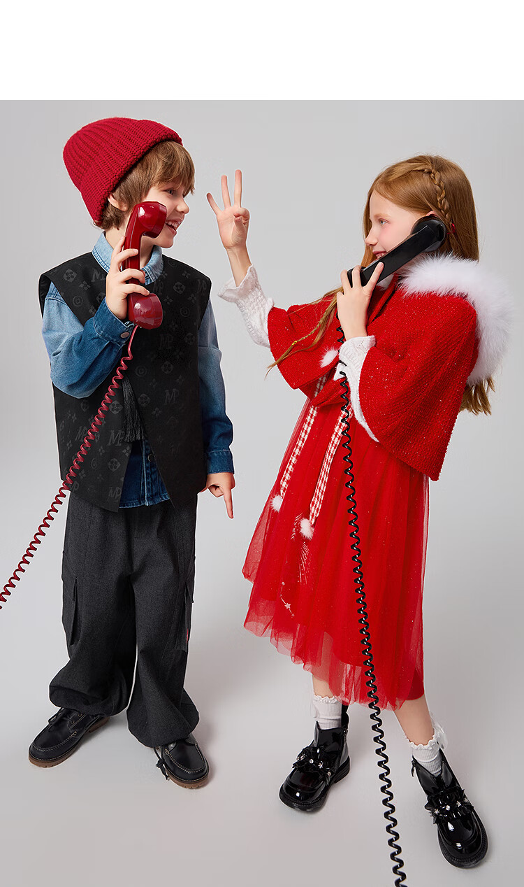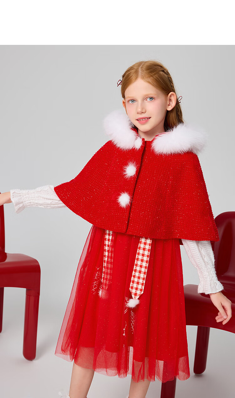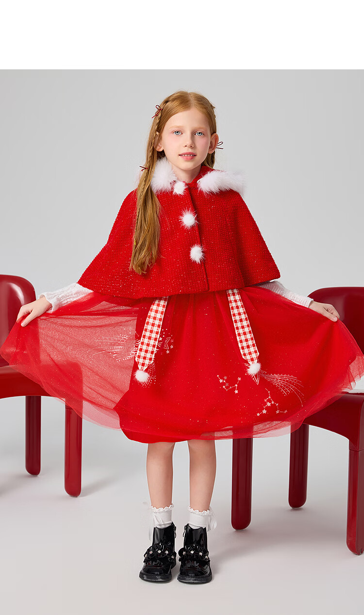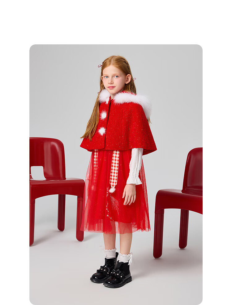 MiniPeace Children's Clothing Spring New Girls Dress F2FAF1190 Chinese Red 130
