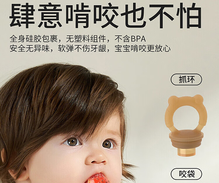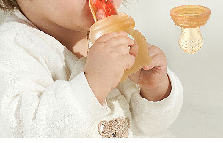 IBOOLBEAR Baby Eat Fruit Baby Soothing Teether Fruit and Vegetable Bite Bag Push-in Food Feeder for Teething Bear Comes with 2 Bite Bags S/L 1 Pack