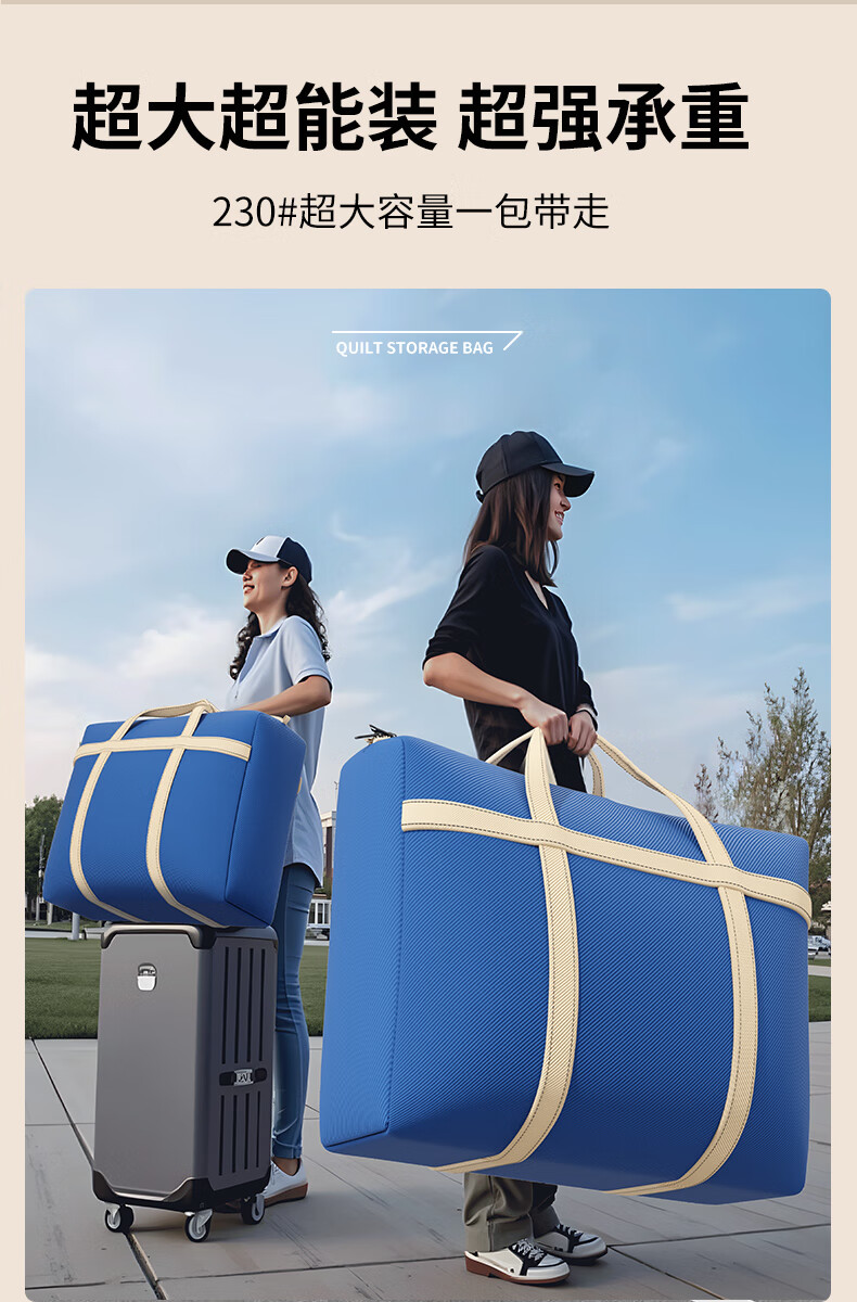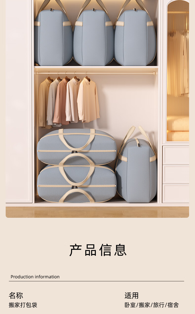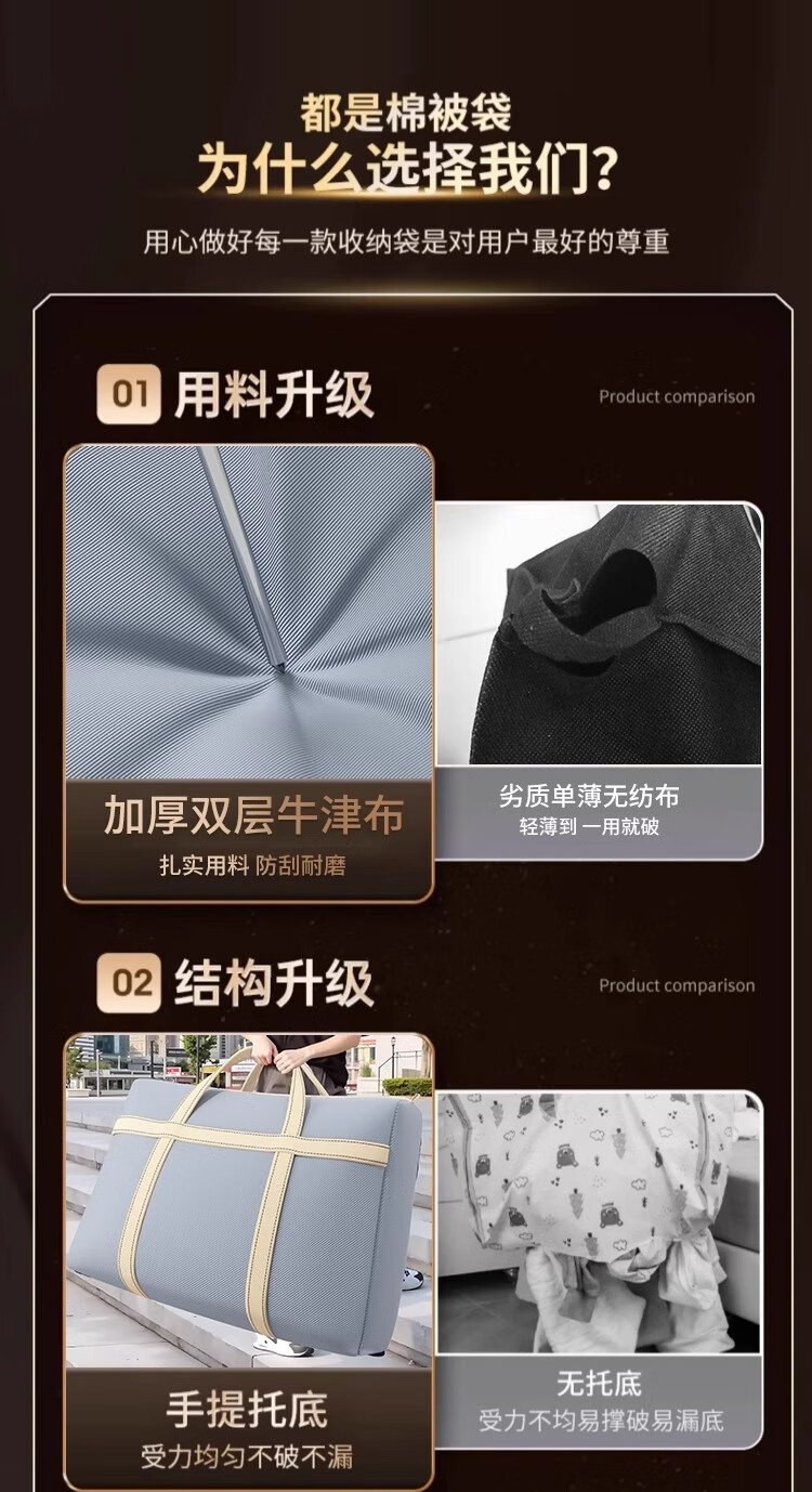 Jiebaina Moving Packing Bag Oxford Cloth Large Capacity Clothes Quilt Storage Bag Clothes Quilt Luggage Organizing Bag Gray-Big Mac Reinforced and Thickened Non-Woven Fabric Waterproof and Moisture-proof