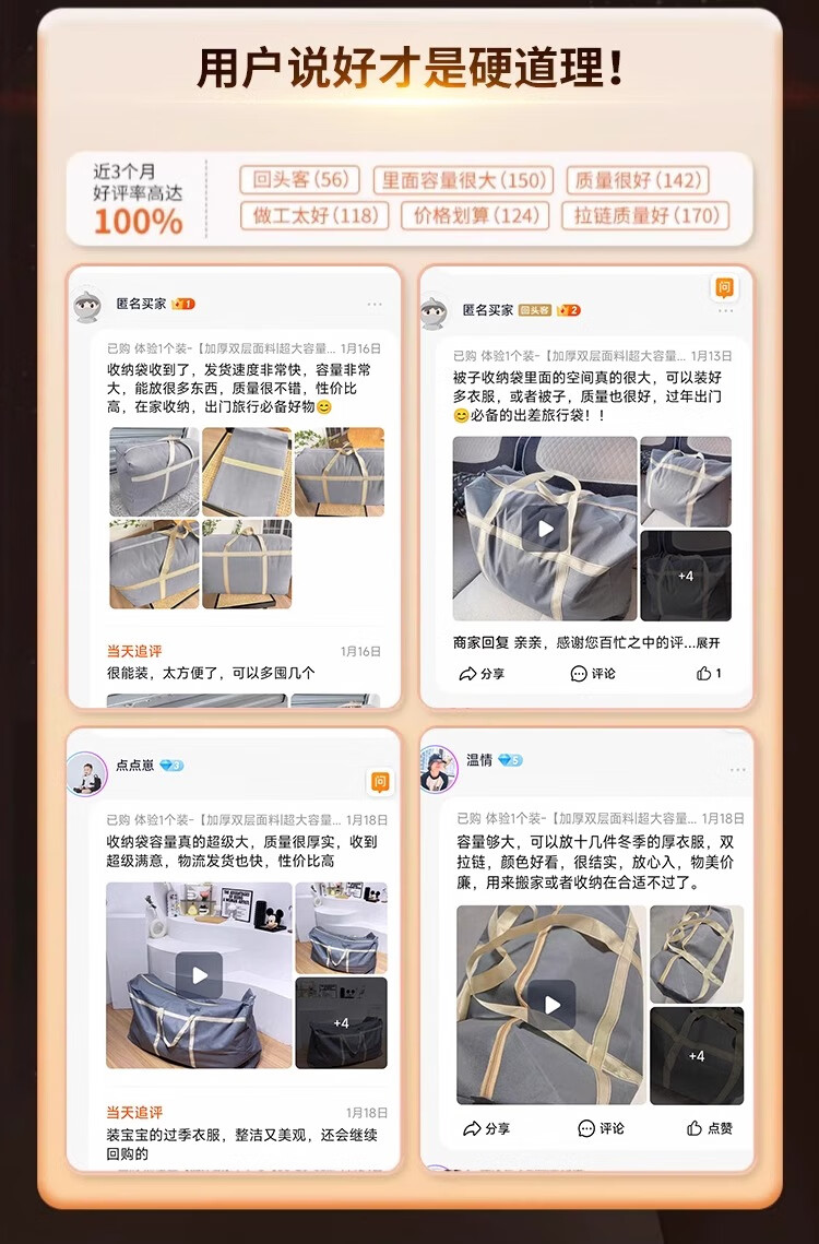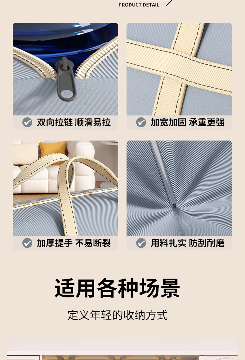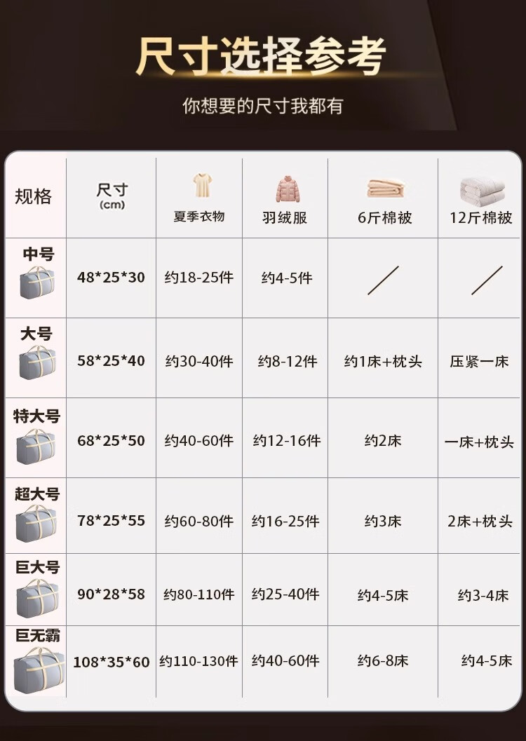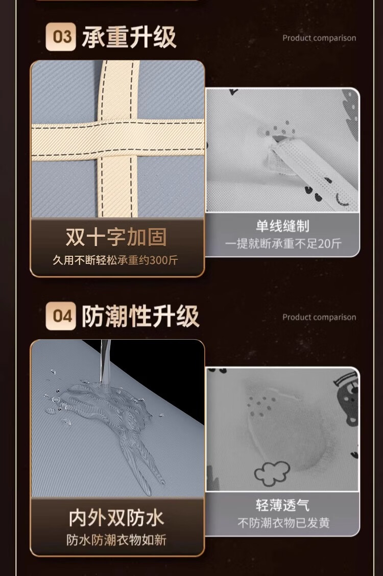 Jiebaina Moving Packing Bag Oxford Cloth Large Capacity Clothes Quilt Storage Bag Clothes Quilt Luggage Organizing Bag Gray-Big Mac Reinforced and Thickened Non-Woven Fabric Waterproof and Moisture-proof