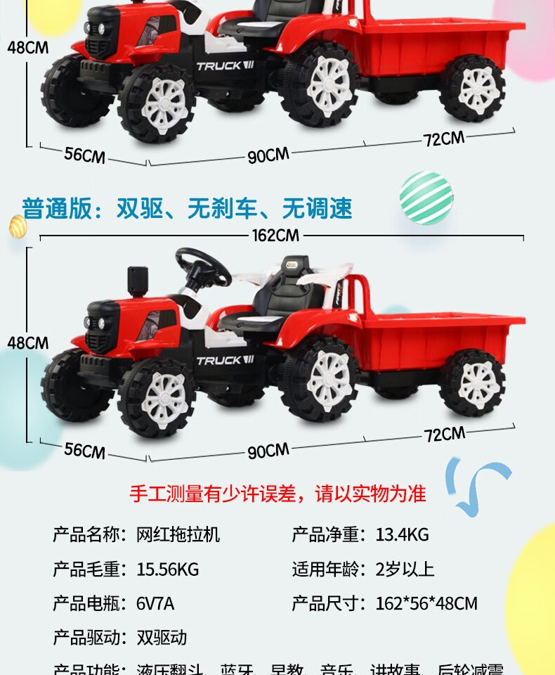 Hongsida Children's Tractor Electric Vehicle Can Sit People Children's Tractor Can Sit People Children's Electric Vehicle Children's Electric Vehicle China Red | Large Battery + Early Education + Hydraulic Tipping Bucket