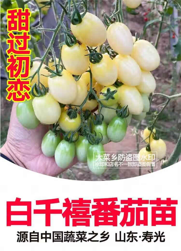 Yimizhu Shouguang White Jade Tomato Seedlings Millennium Cherry Tomato Cherry Persimmon Seeds White Fei White Pearl Black Rose with Soil Ball White Jade Tomato Seedlings 10 + Free 2 + 1 Pack of Fertilizer
