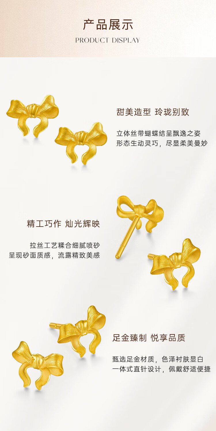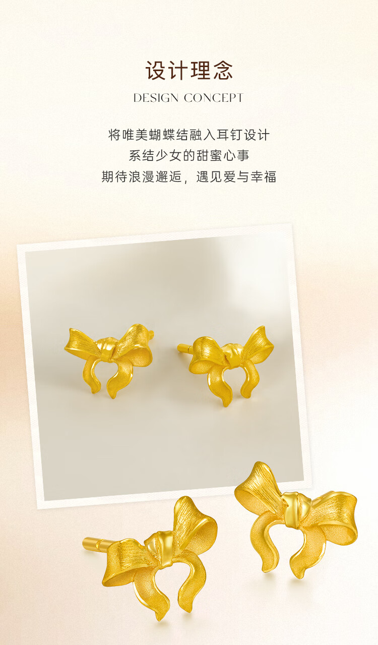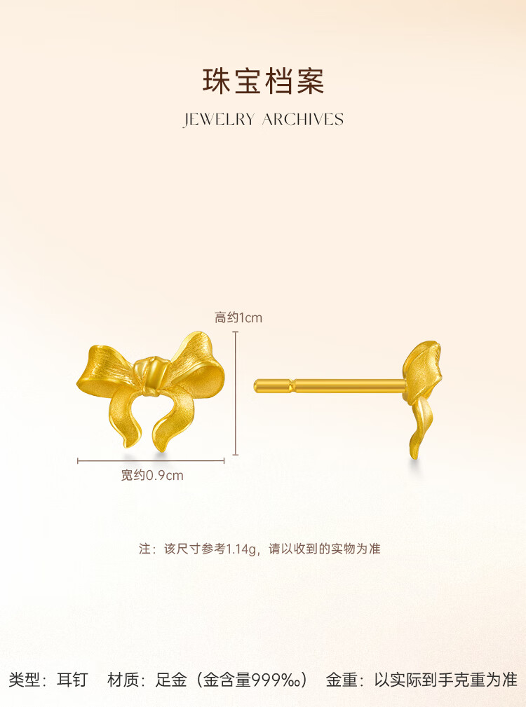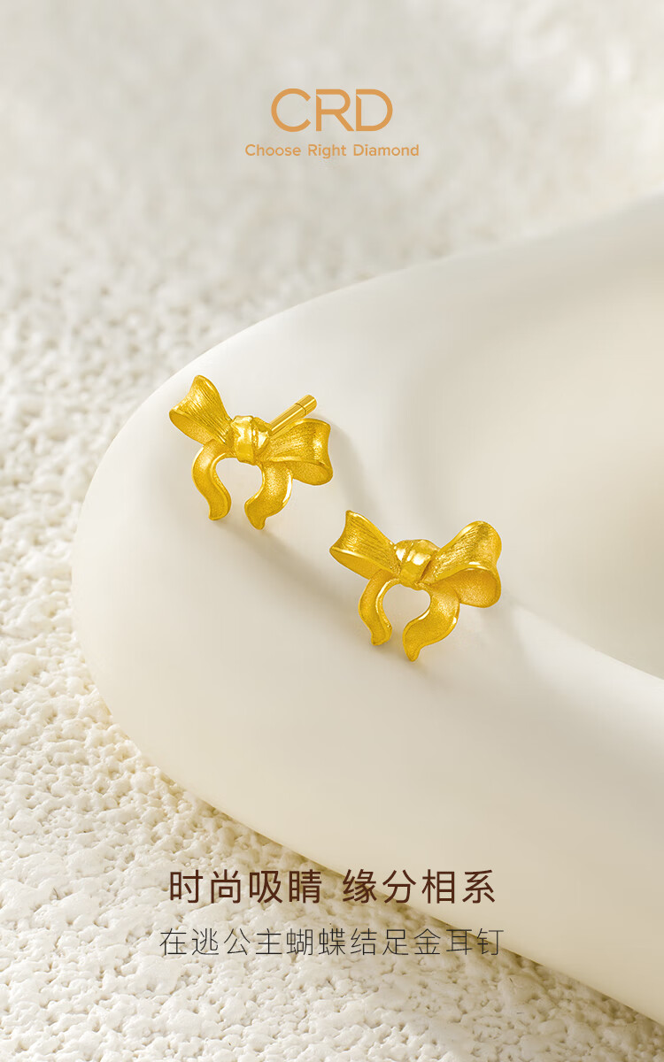 CRD gold earrings solid bow brushed earrings solid gold 999 as a holiday gift for your girlfriend 1.2g