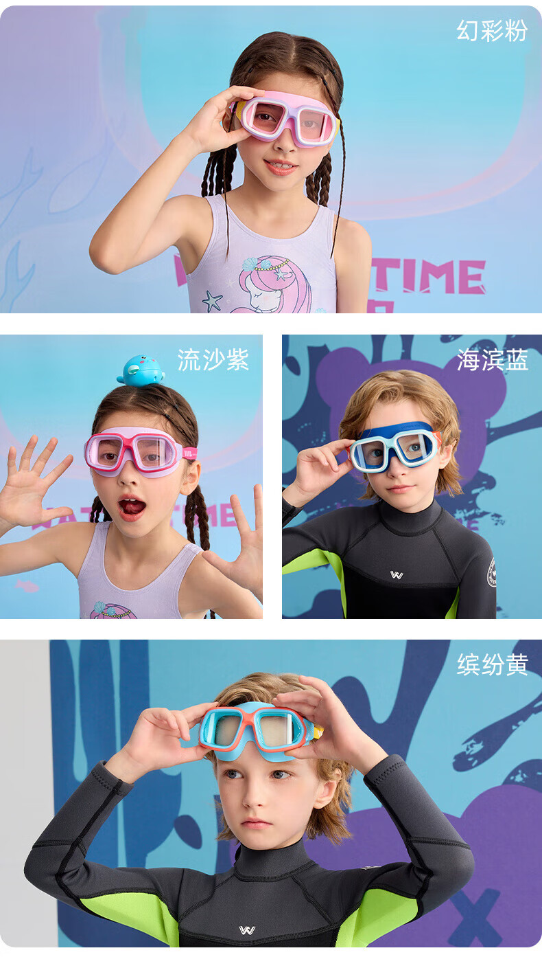 WATERTIME children's swimming goggles waterproof and anti-fog high-definition eye protection for boys and girls medium and large frame swimming goggles fantasy powder