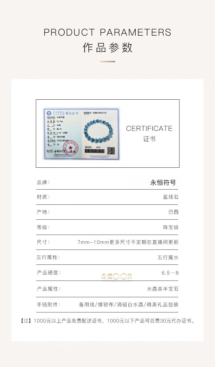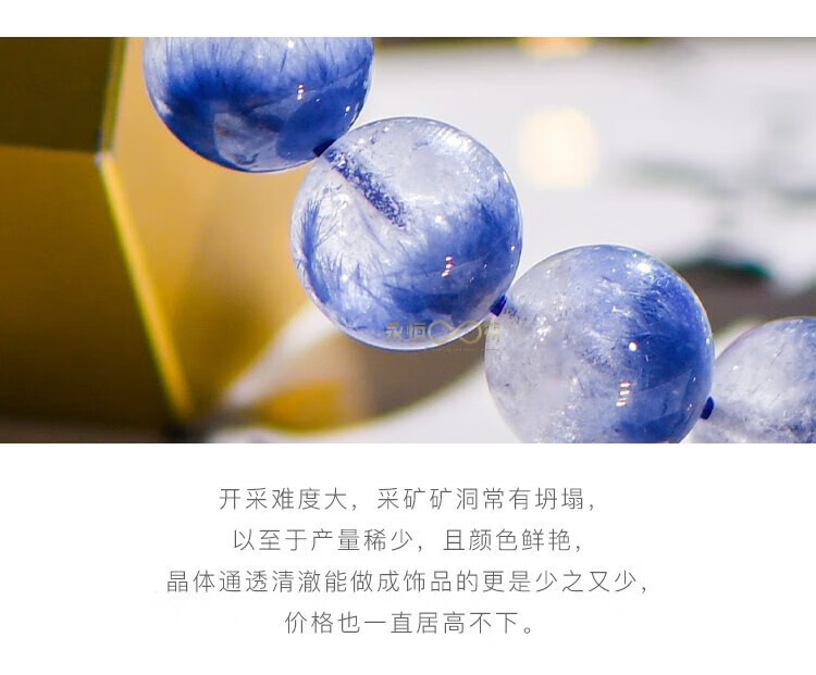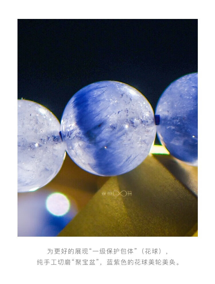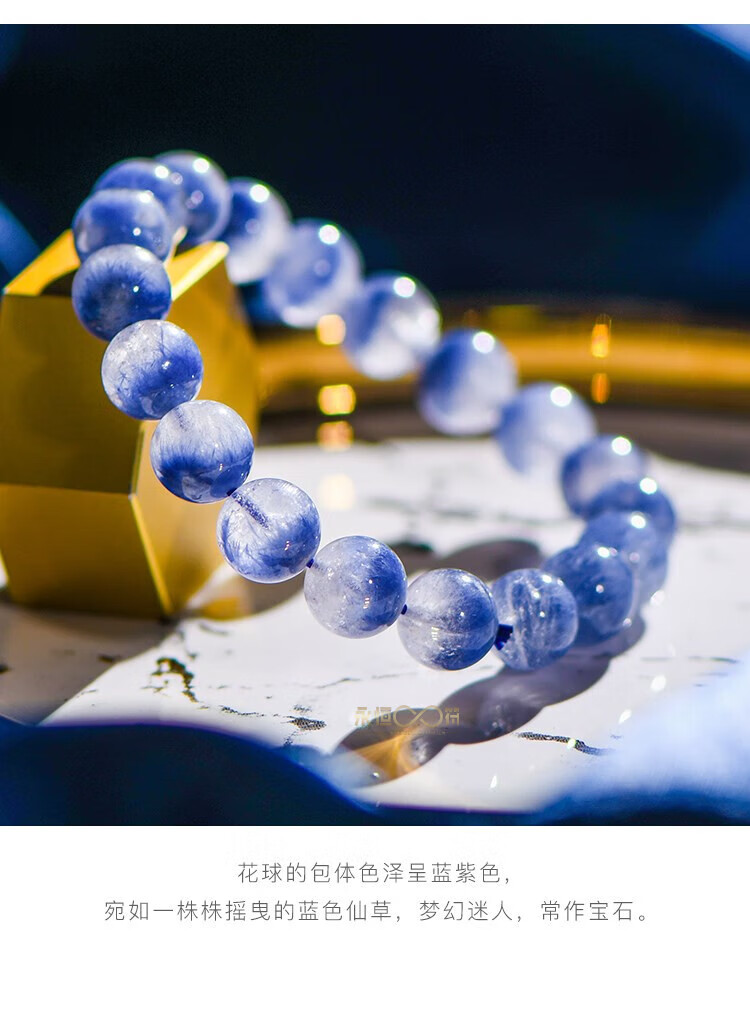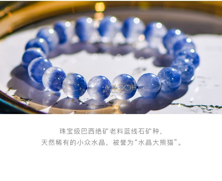 Eternal symbol light luxury brand luxury crystal bracelet Brazilian old mine blue line stone bead bracelet birthday gift for men and women jewelry grade blue line stone about 12mm