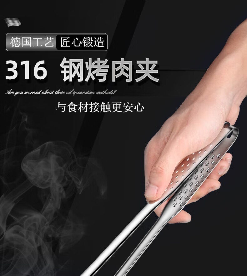 Home KATEI STORY Japanese 316 stainless steel barbecue tongs kitchen anti-scalding barbecue tongs food tongs fried steak tongs fried fish tools large size 316 barbecue tongs