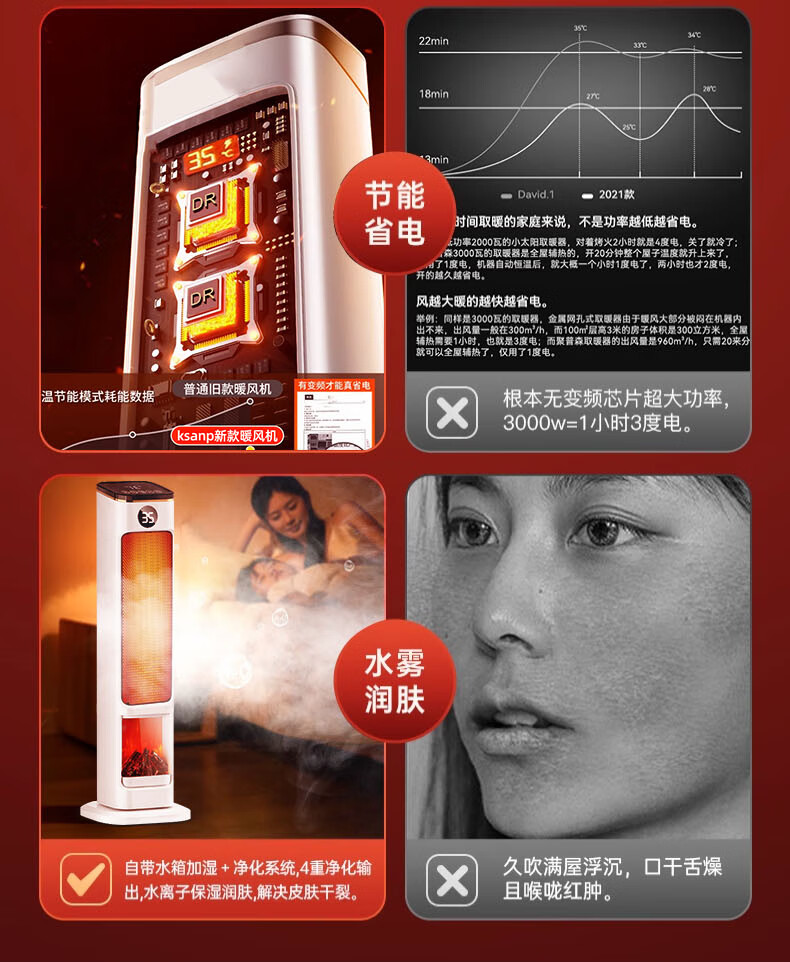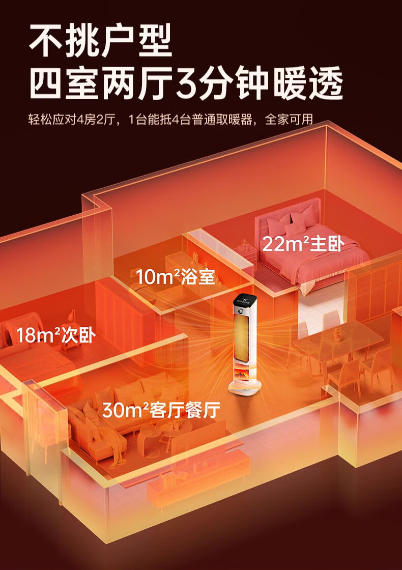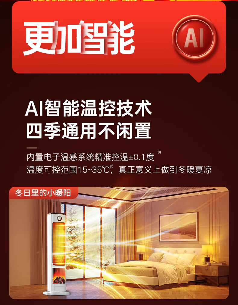 Xiaomi Guoba's new graphene household energy-saving air heater winter electric heating bedroom large-area export to domestic sales Ai smart flame 200 whole-house heating variable