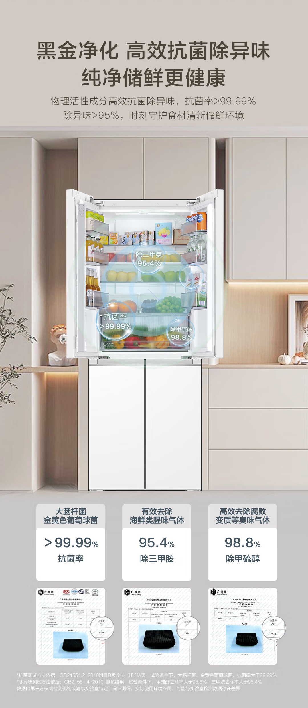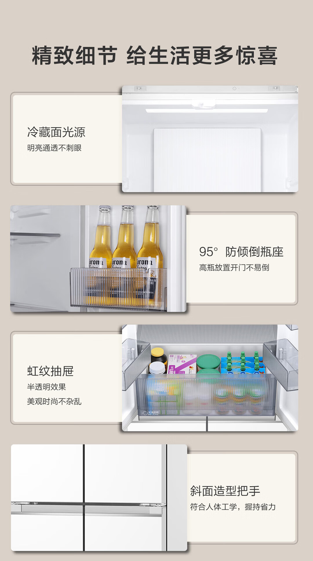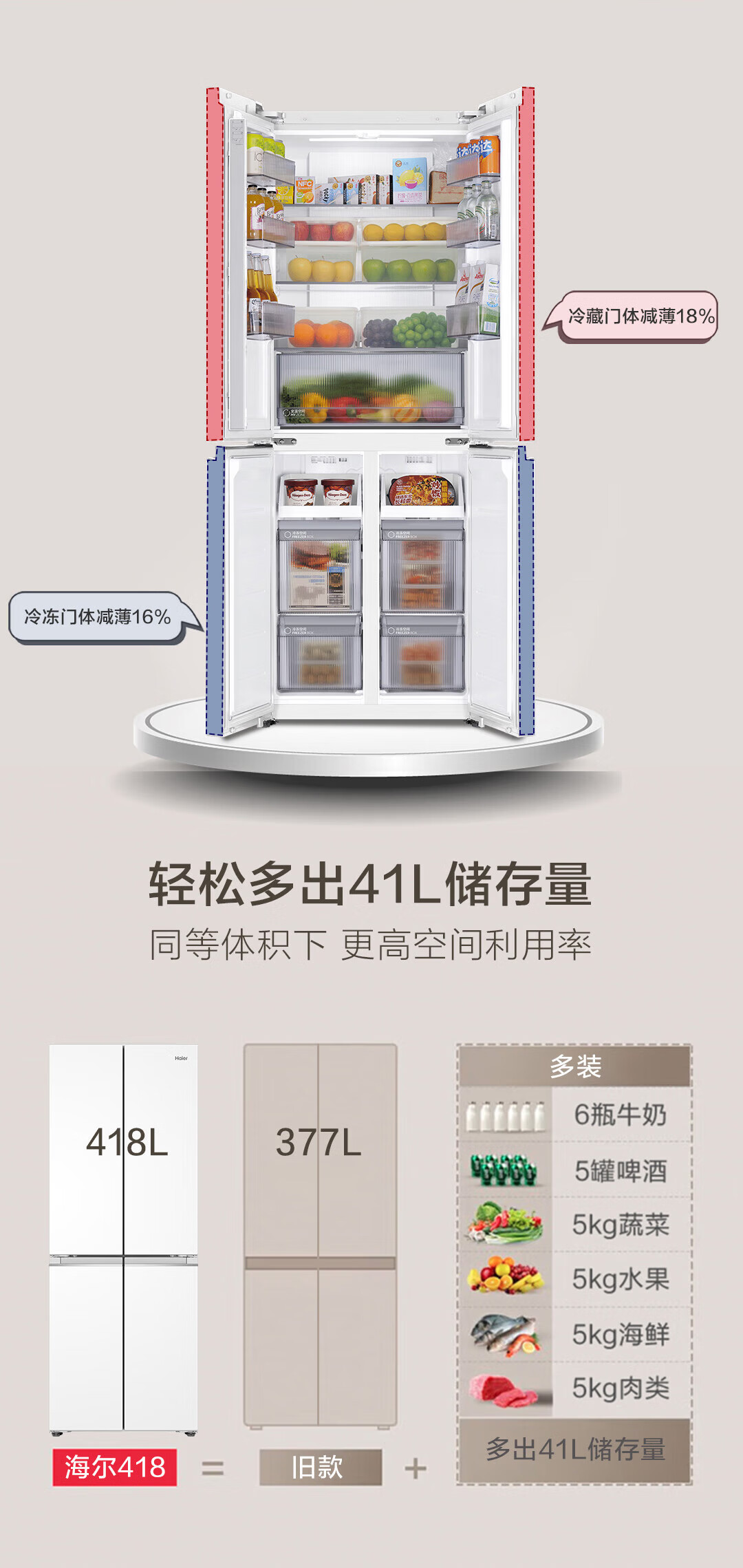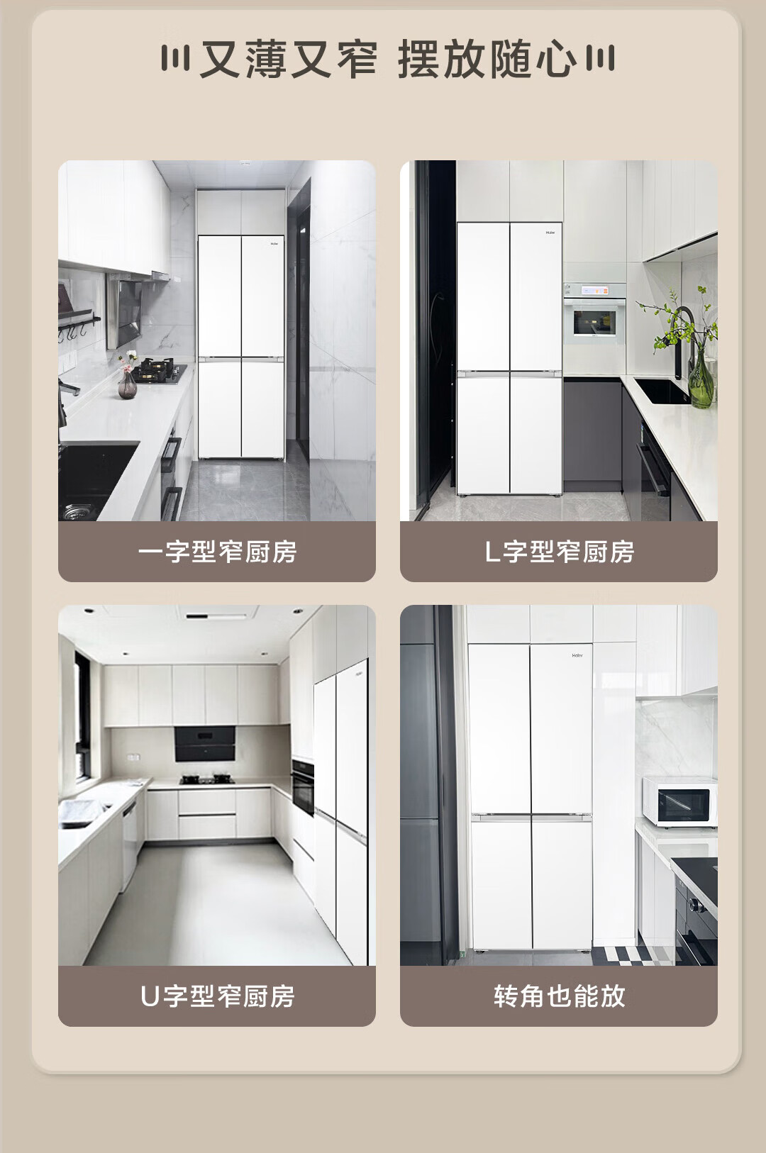 Haier Xiaohonghua series 418 liters 594mm professional ultra-thin and ultra-narrow zero-embedded cross T-type four-door household appliances small household large capacity refrigerator 70 wide | 594mm professional ultra-thin | 418 liters ice white