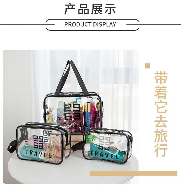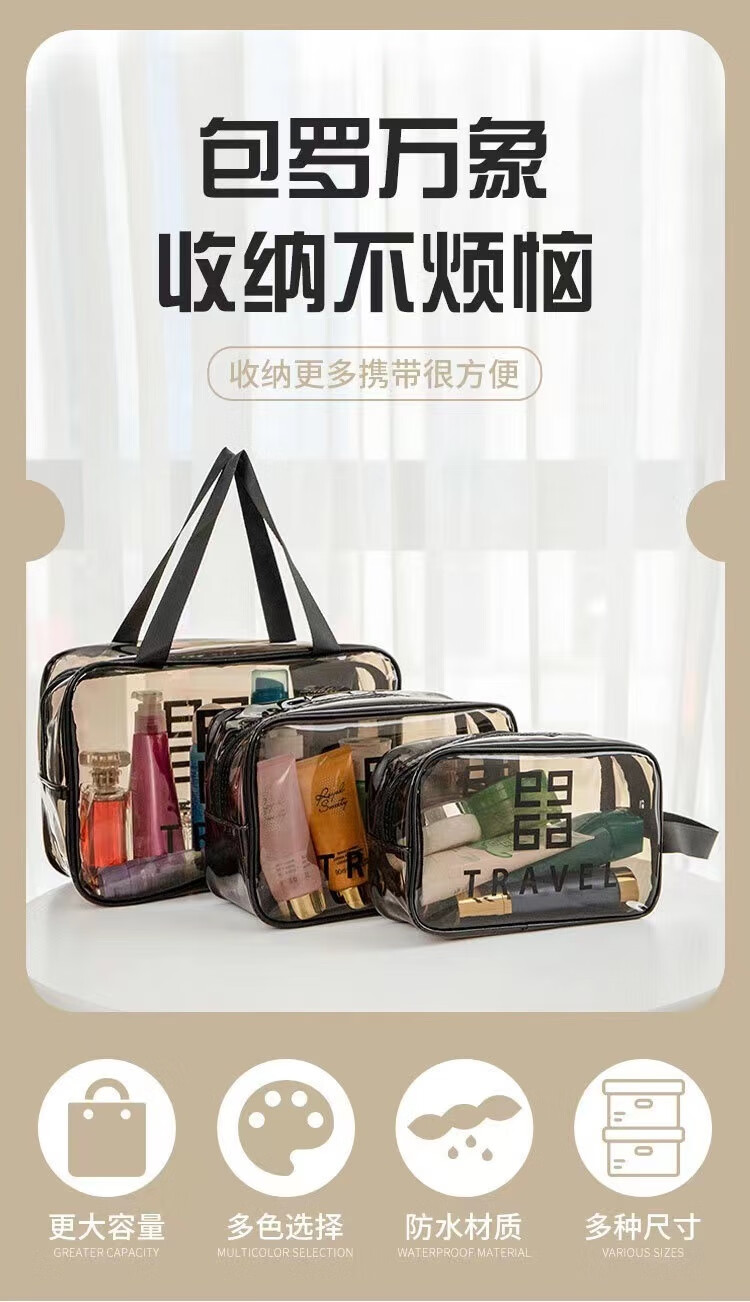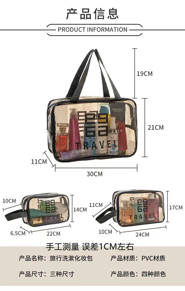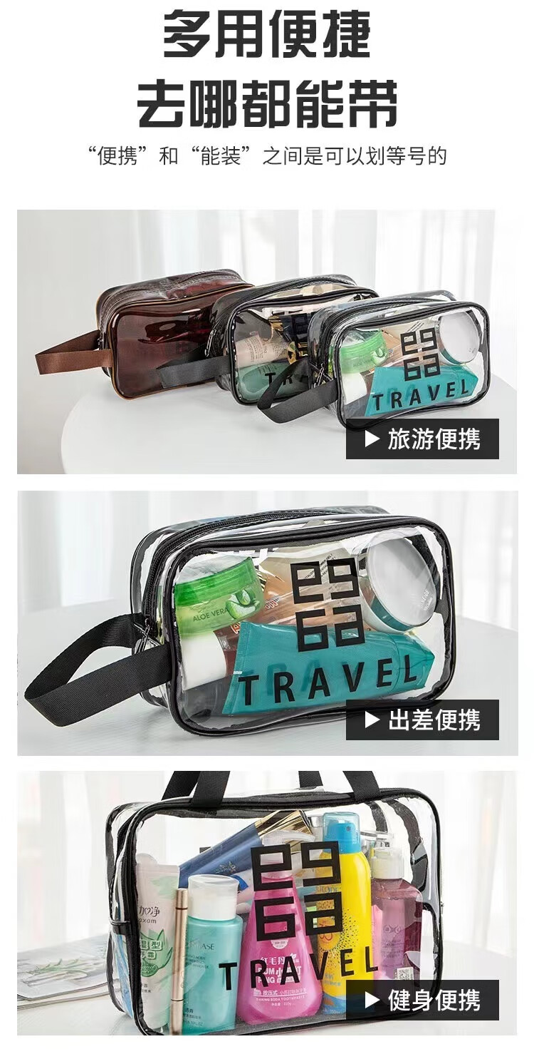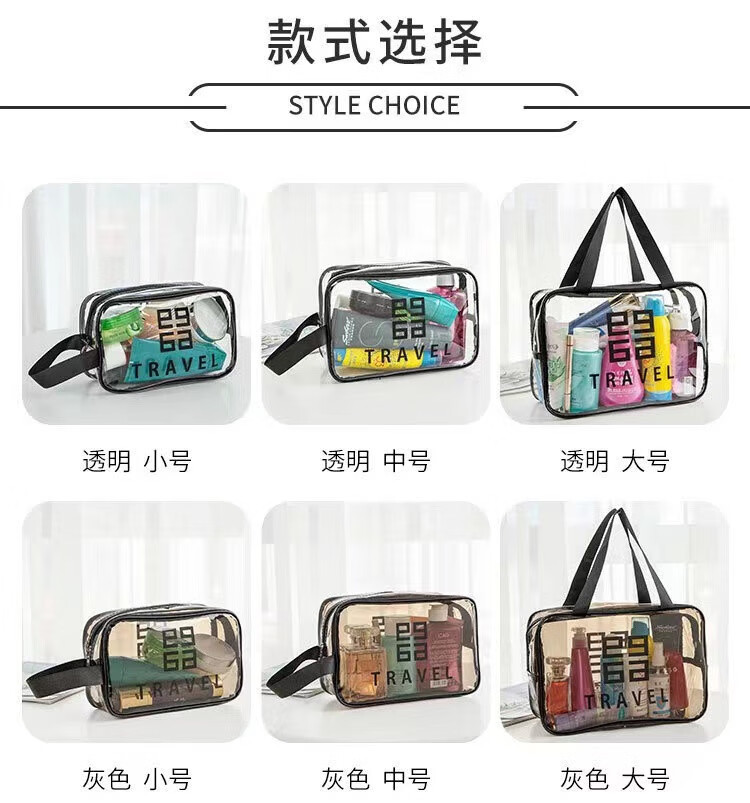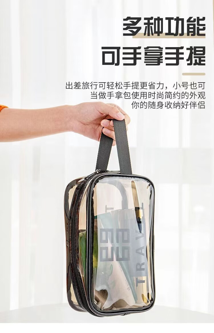 Thickened toiletry storage bag waterproof transparent portable toiletry bag travel bag simple internet celebrity cosmetic bag gray extra small