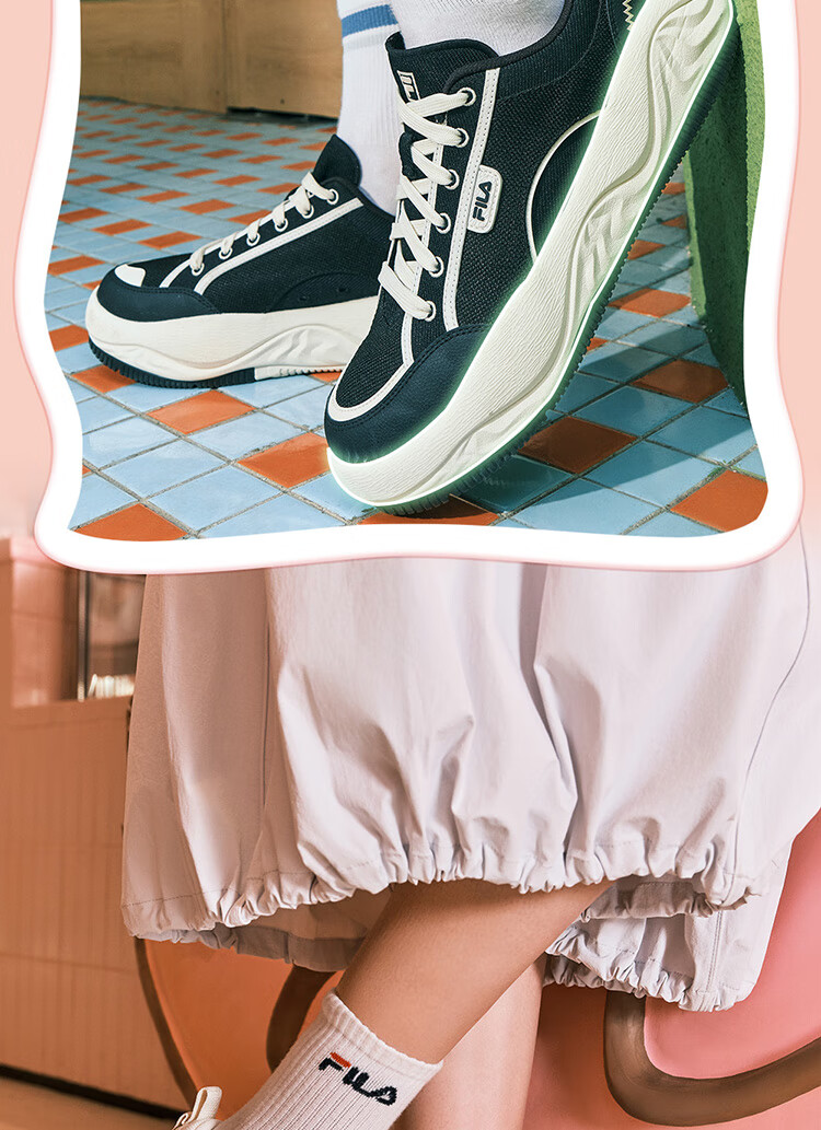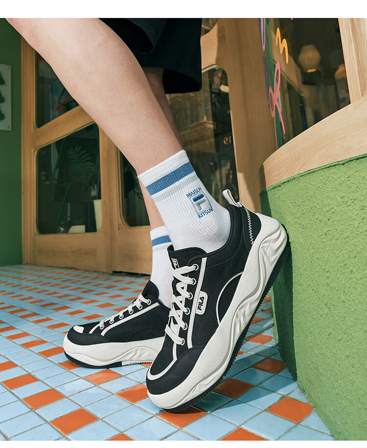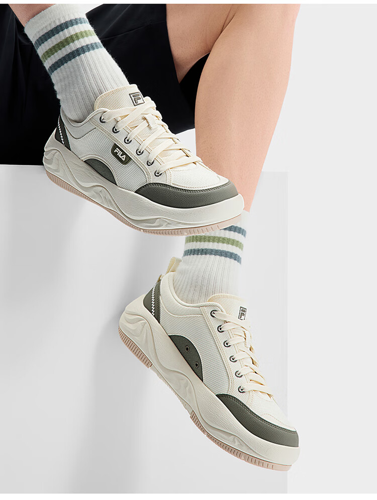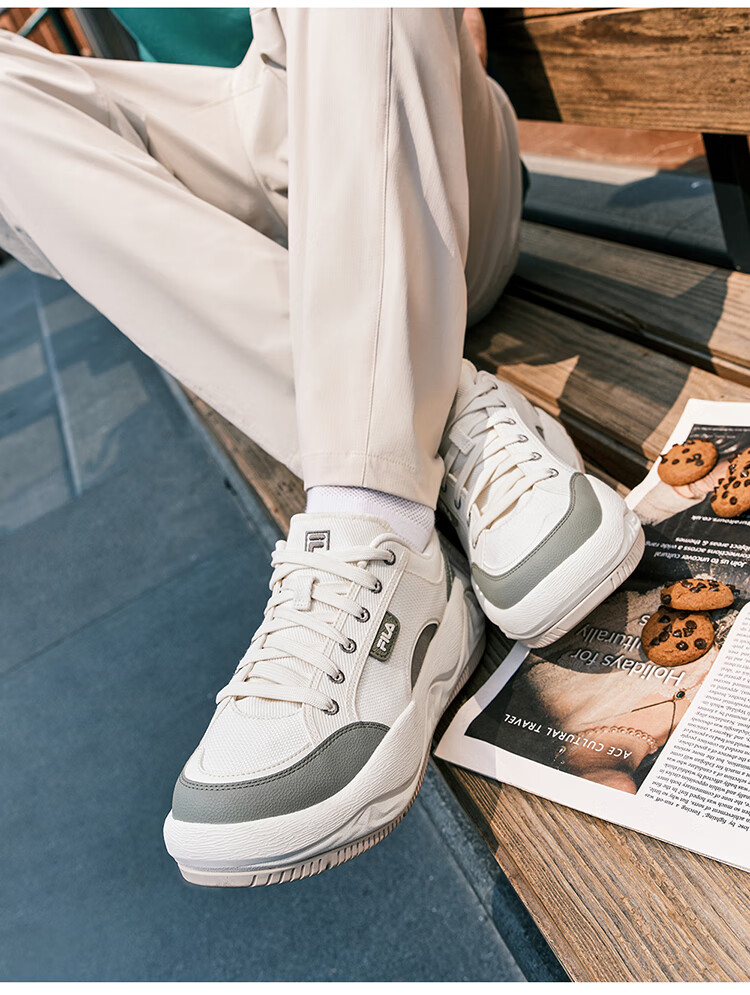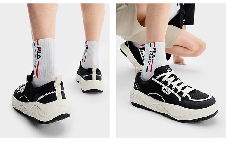 FILA official men's shoes COOKIES retro canvas shoes 2025 summer new cookie shoes fashion casual shoes black/milk white-BG 43