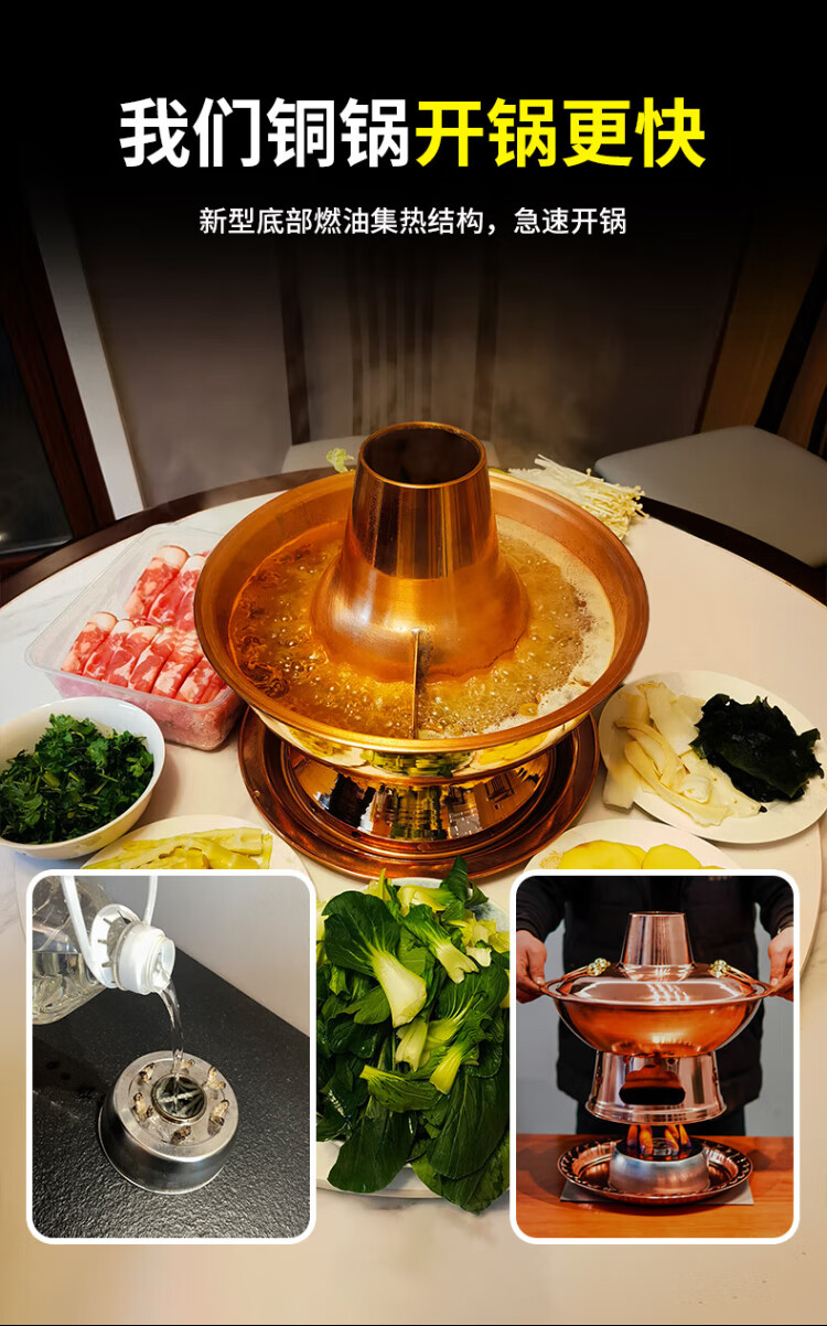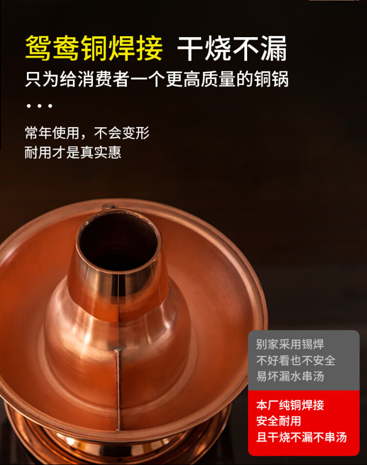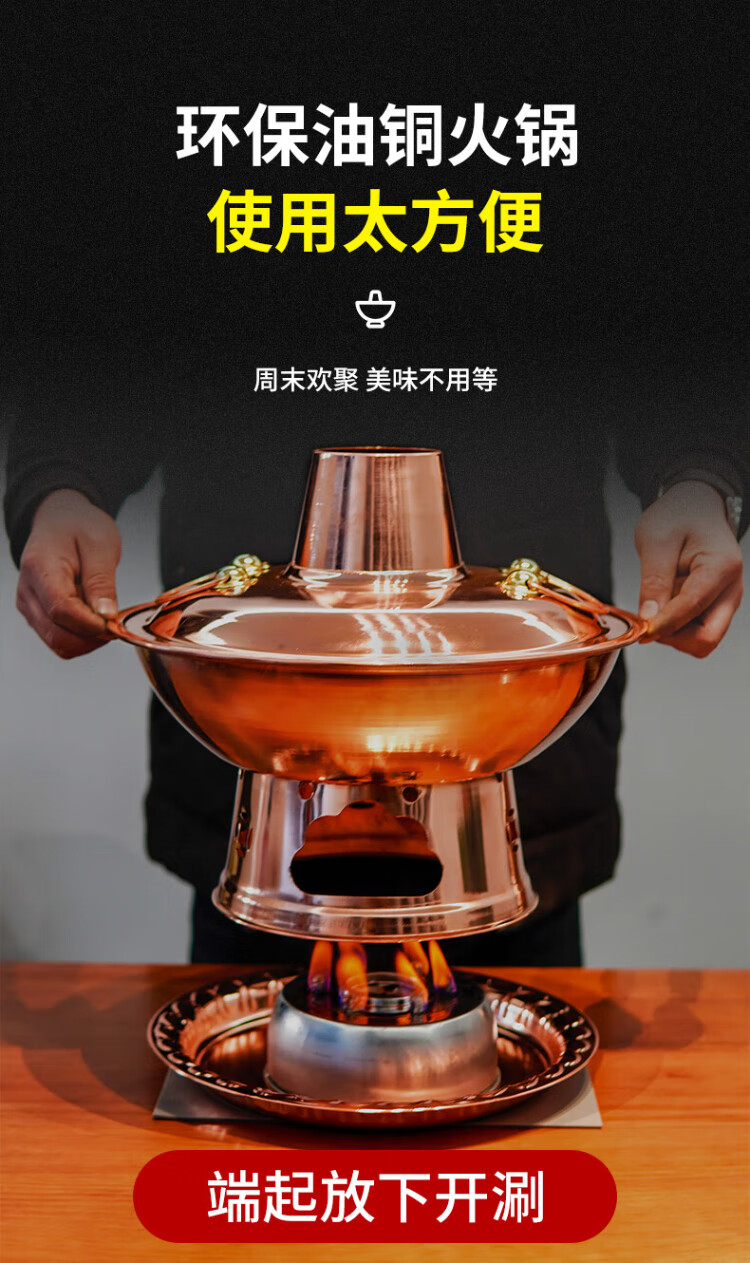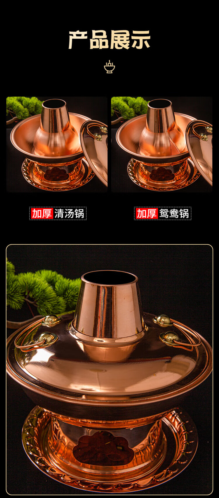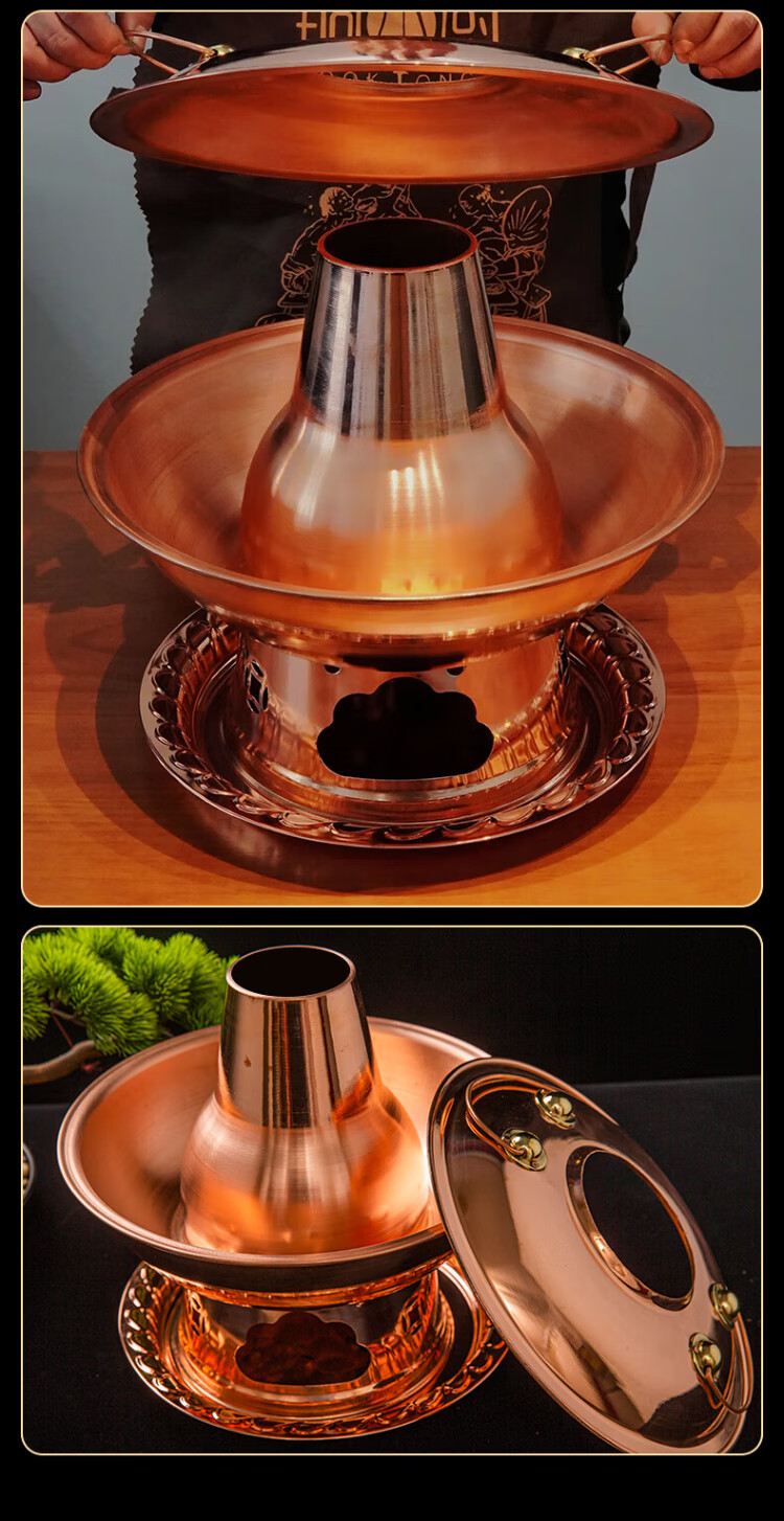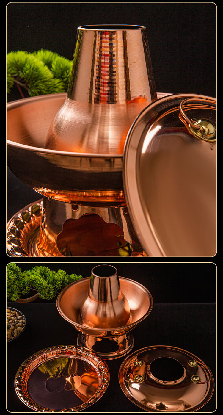 Copper kitchen environmentally friendly oil copper hot pot old Beijing copper pot hot pot commercial pure copper household alcohol outdoor mandarin duck old-fashioned copper stove authentic environmentally friendly oil pure copper pot clear soup 6-8 people 34cm