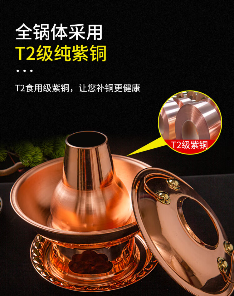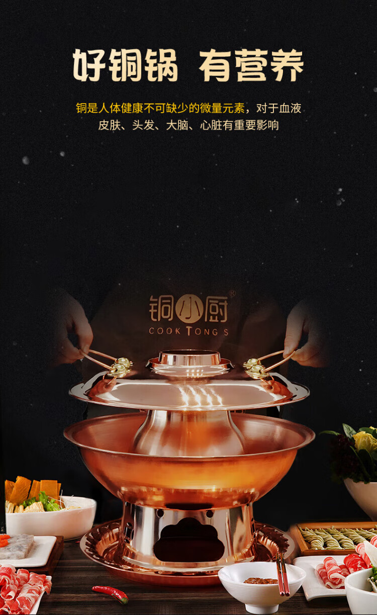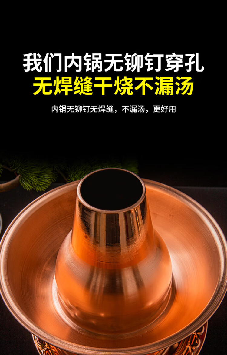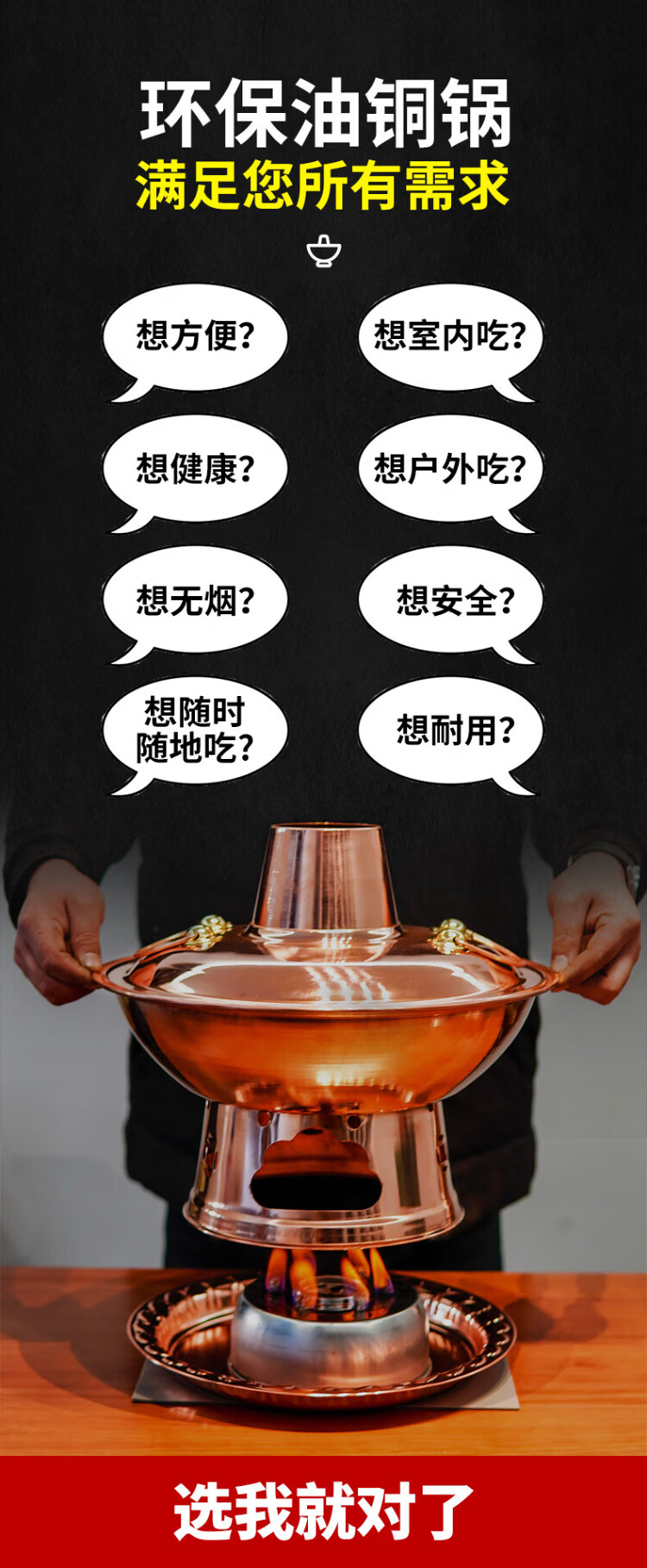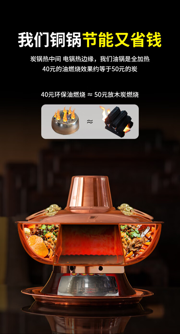Copper kitchen environmentally friendly oil copper hot pot old Beijing copper pot hot pot commercial pure copper household alcohol outdoor mandarin duck old-fashioned copper stove authentic environmentally friendly oil pure copper pot clear soup 6-8 people 34cm