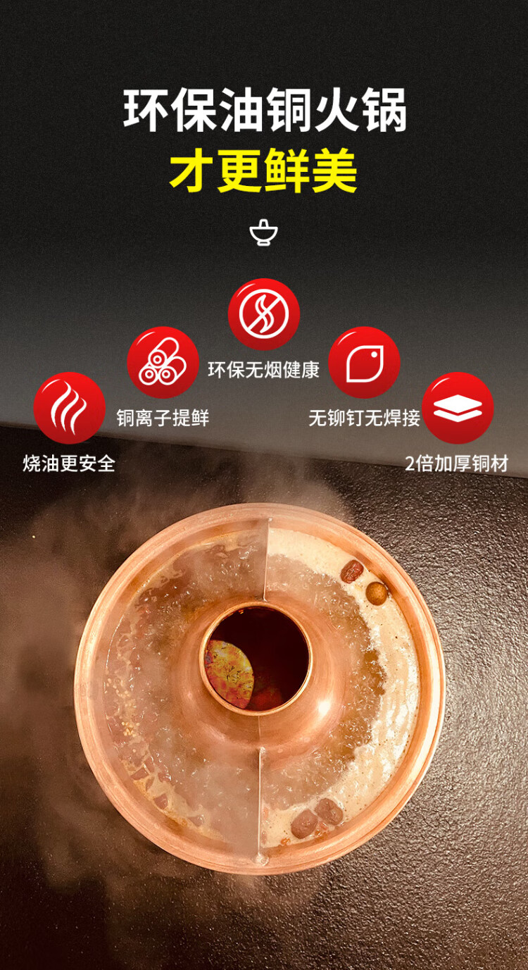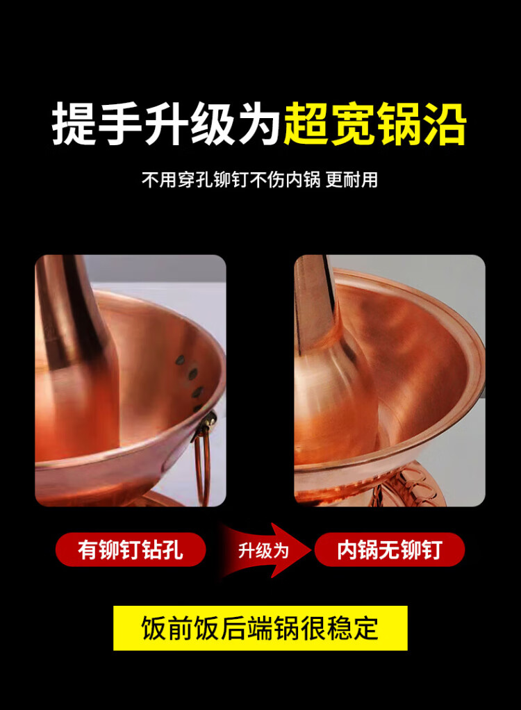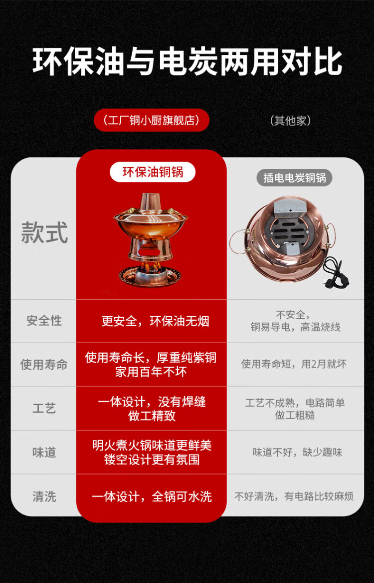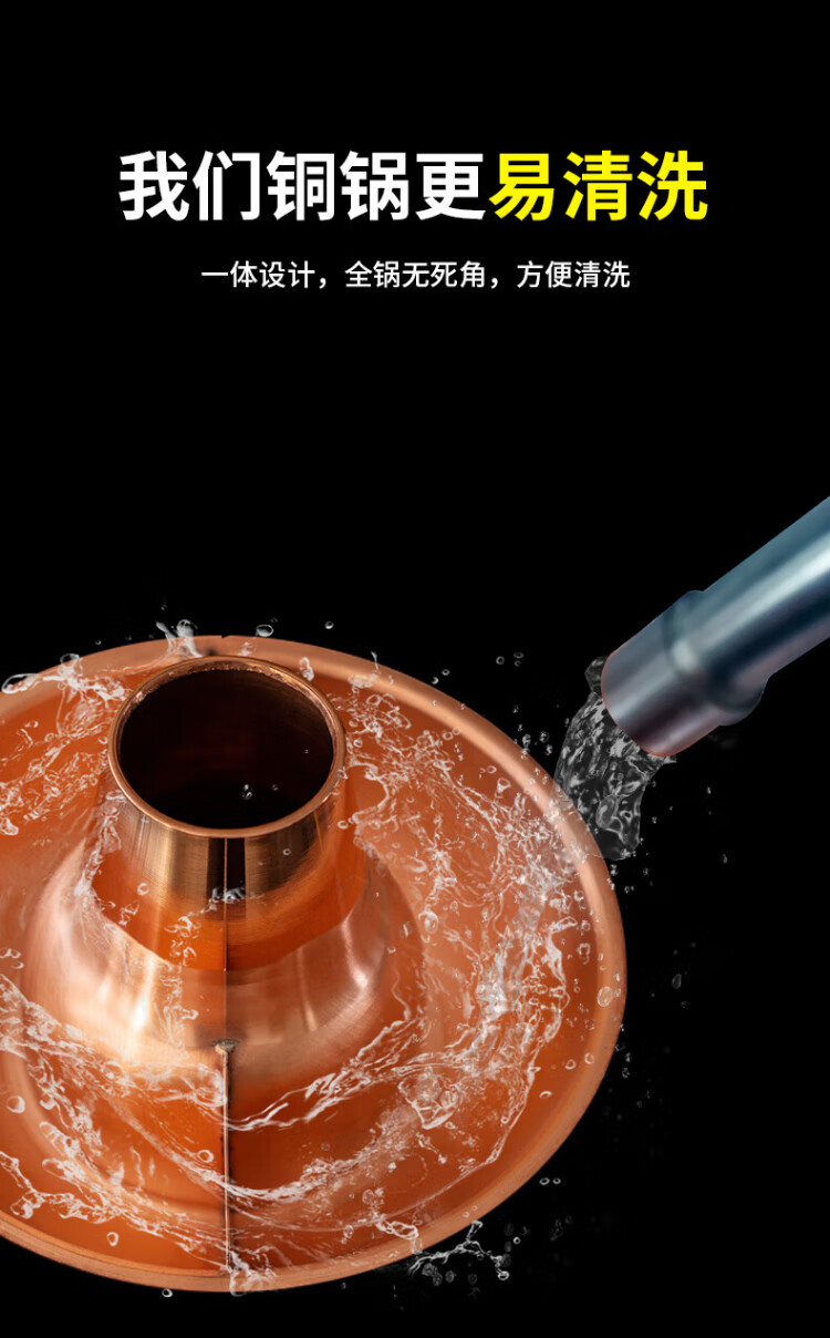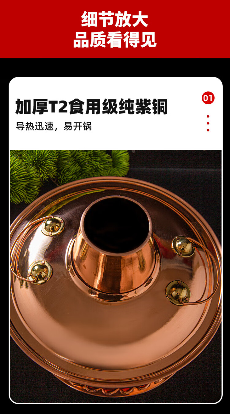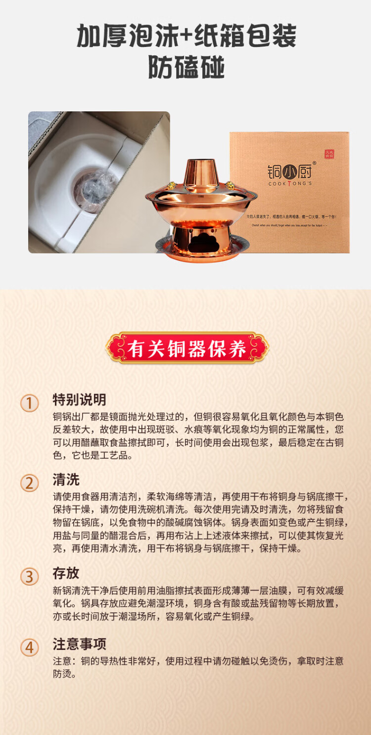 Copper kitchen environmentally friendly oil copper hot pot old Beijing copper pot hot pot commercial pure copper household alcohol outdoor mandarin duck old-fashioned copper stove authentic environmentally friendly oil pure copper pot clear soup 6-8 people 34cm