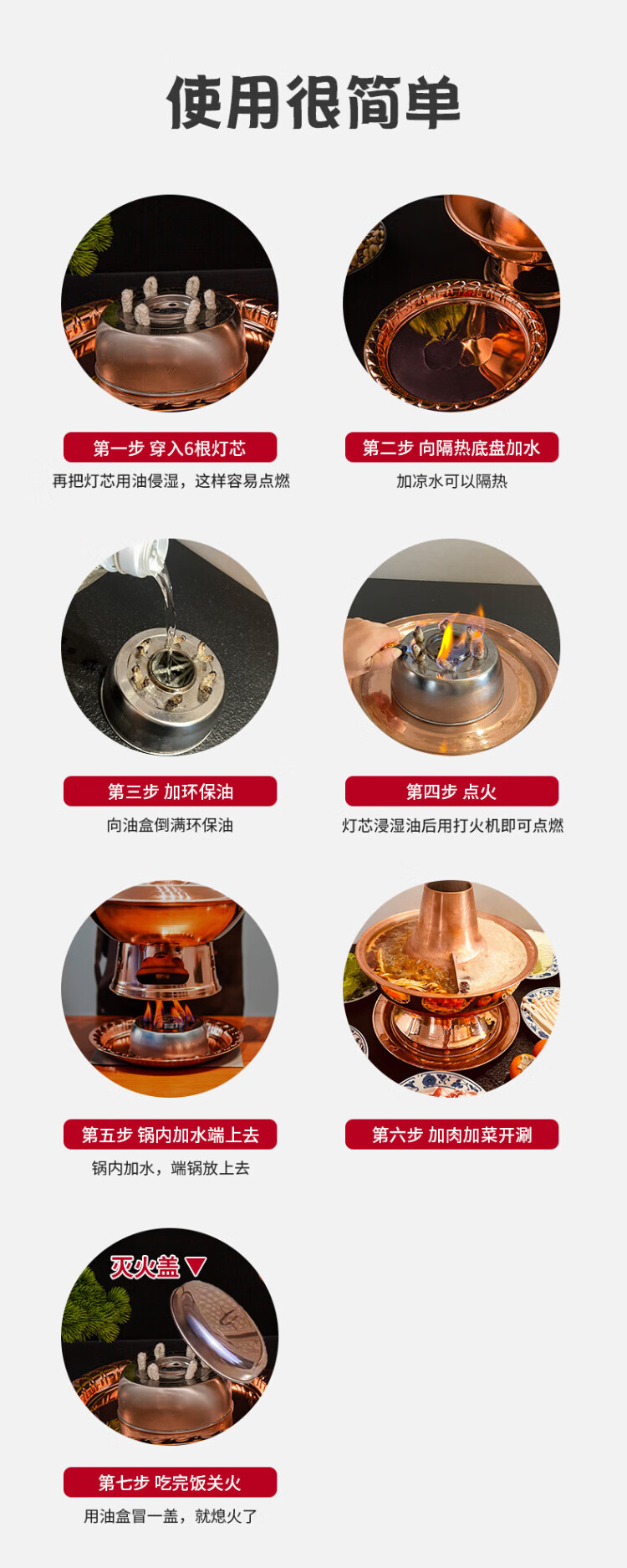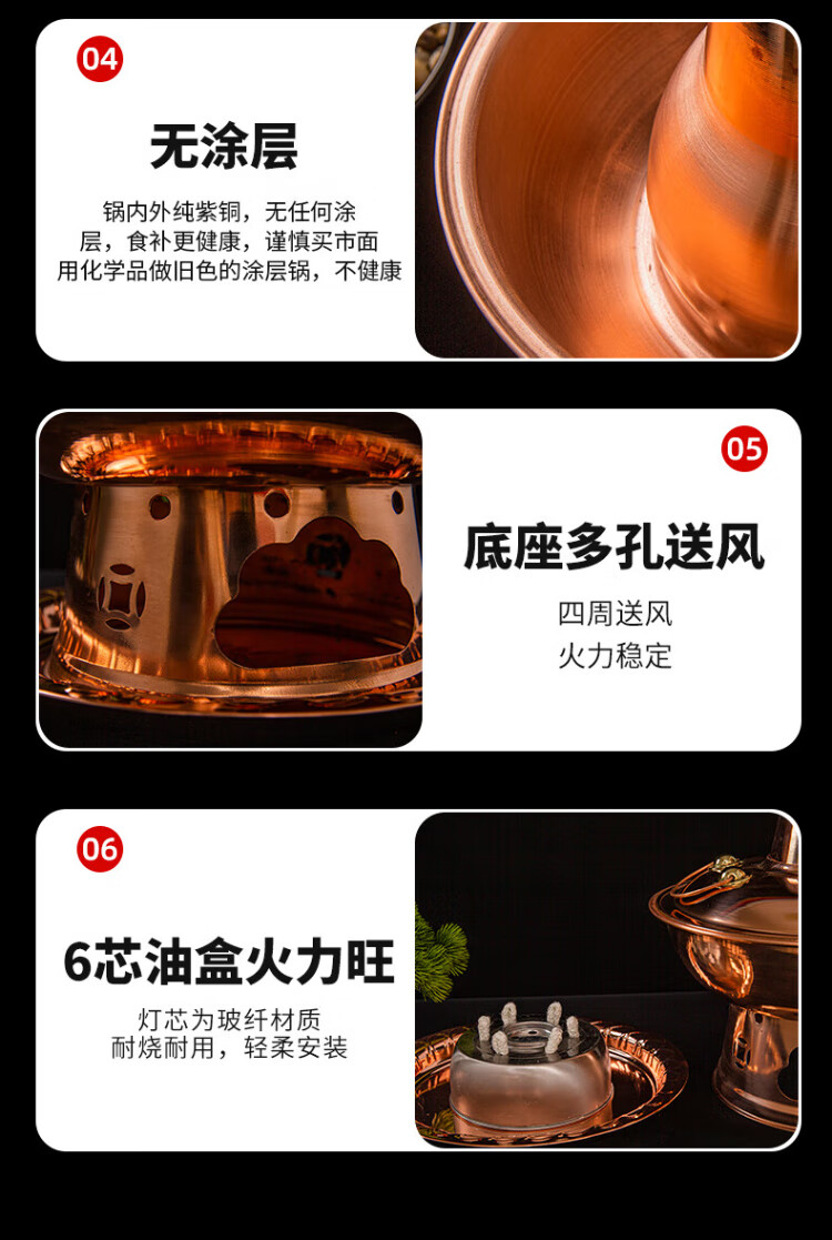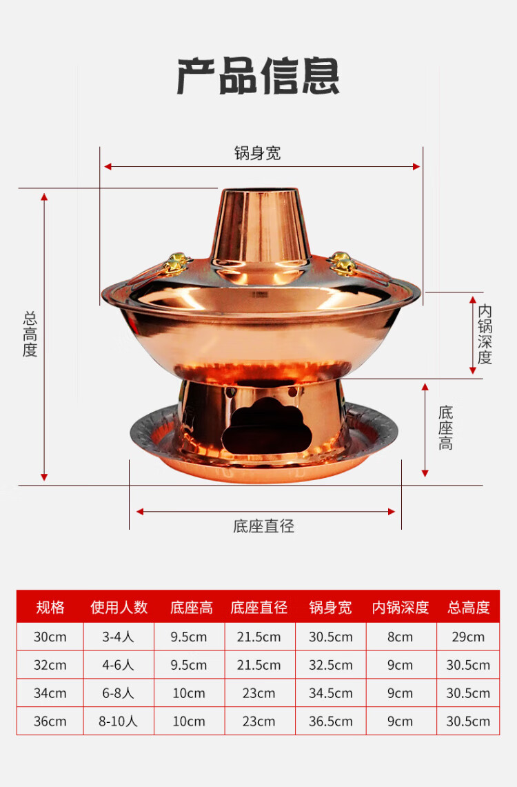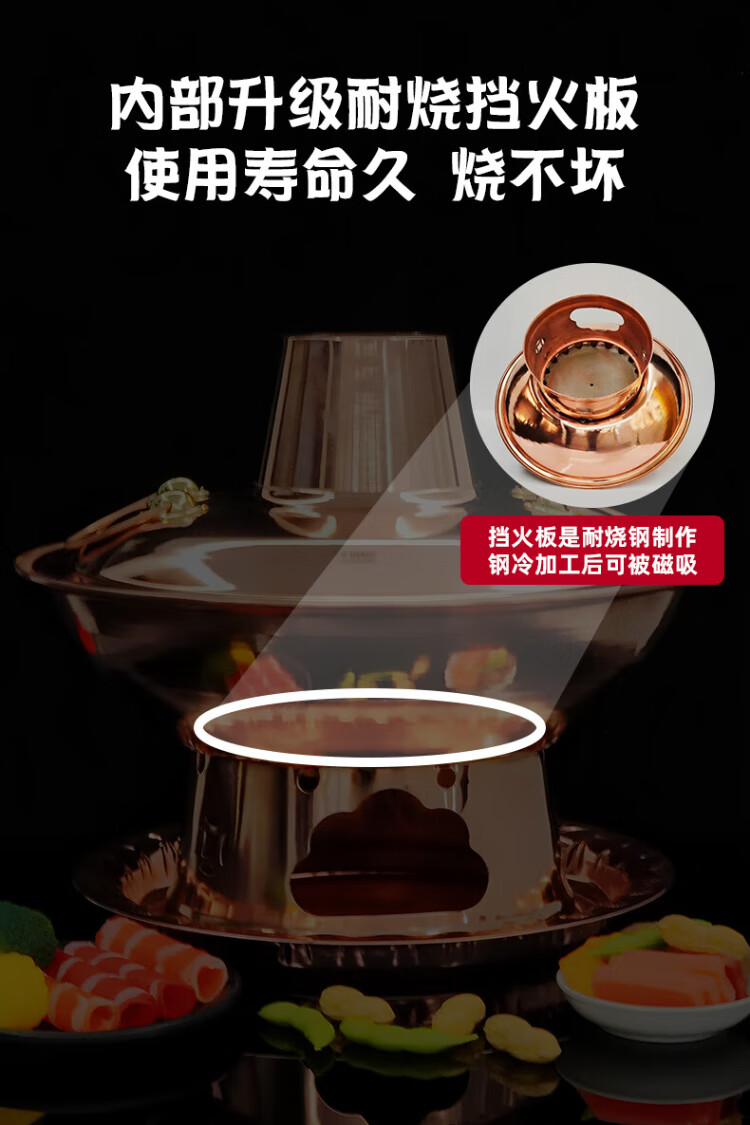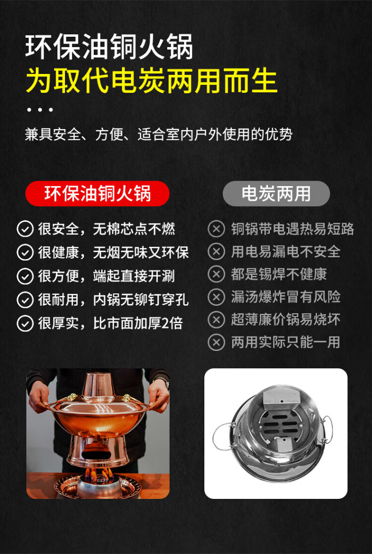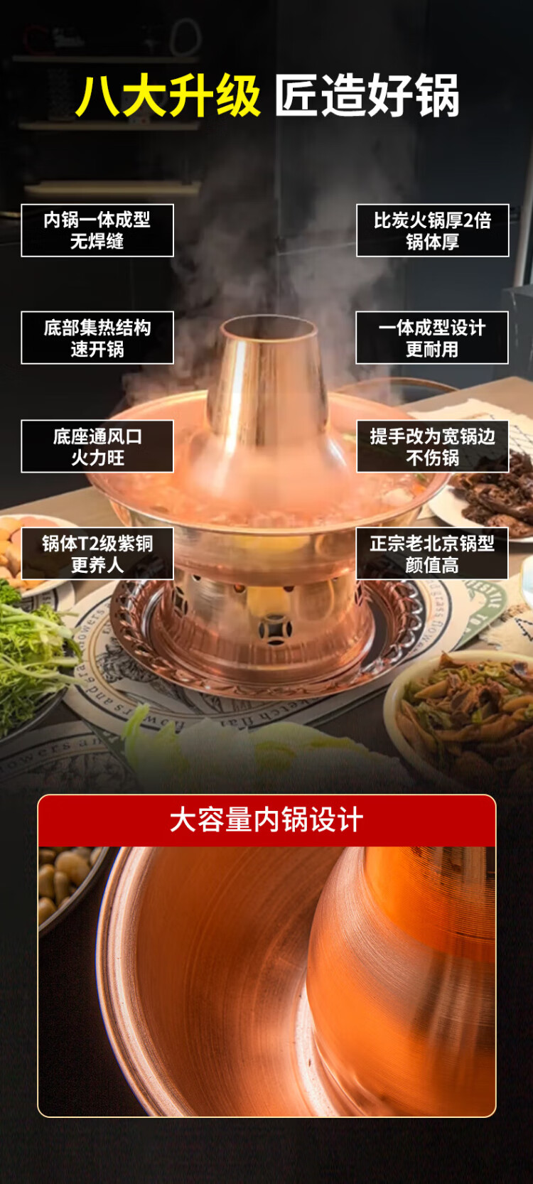 Copper kitchen environmentally friendly oil copper hot pot old Beijing copper pot hot pot commercial pure copper household alcohol outdoor mandarin duck old-fashioned copper stove authentic environmentally friendly oil pure copper pot clear soup 6-8 people 34cm
