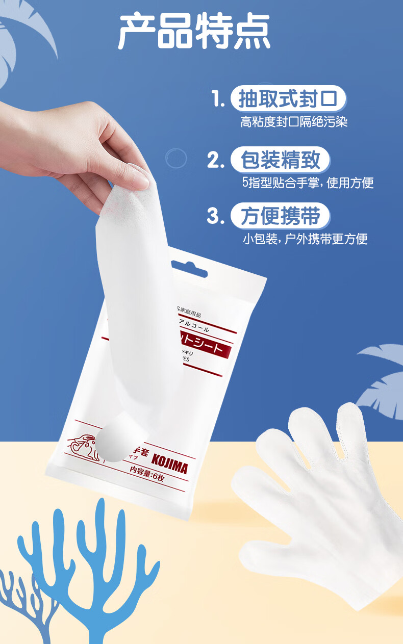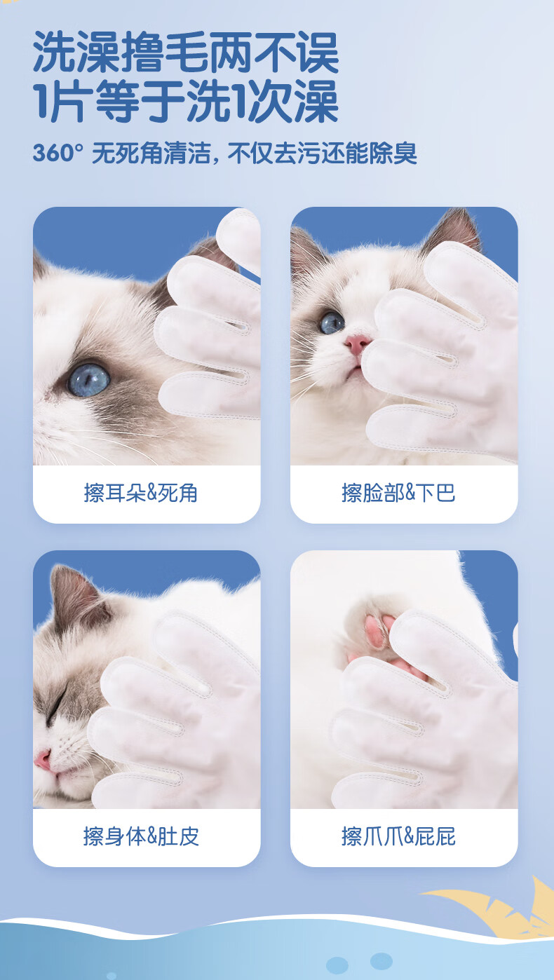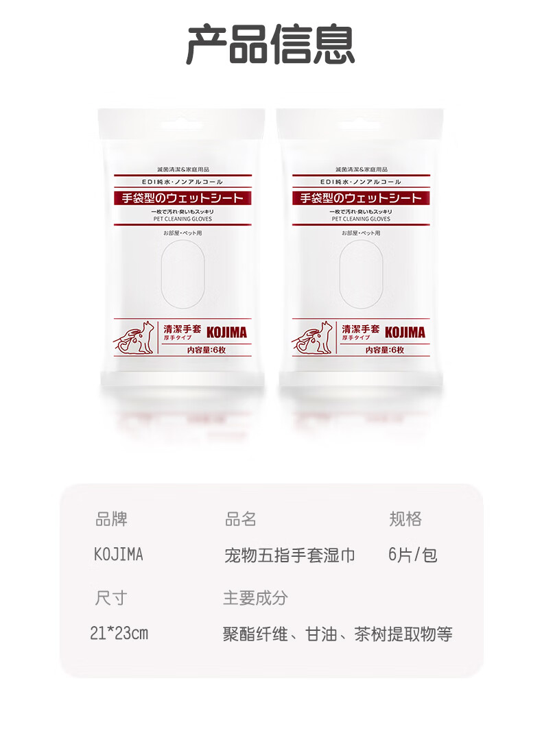 KOJIMA Pet Disposable Gloves Wet Wipes for Cats and Dogs Special Feet Dry Cleaning Cleaning Deodorizing Wet Bath Supplies Disposable Gloves-6 Pack