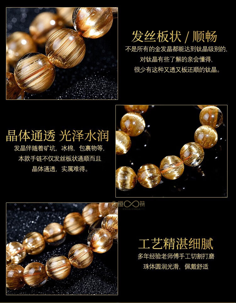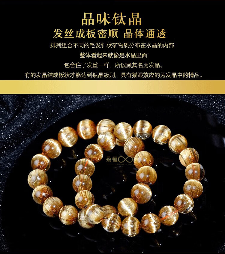 Eternal symbol light luxury collection gem-grade cat's eye blonde crystal plate titanium crystal bracelet single circle bracelet for men and women to prosper wealth natural crystal collectible grade plate titanium crystal-7mm