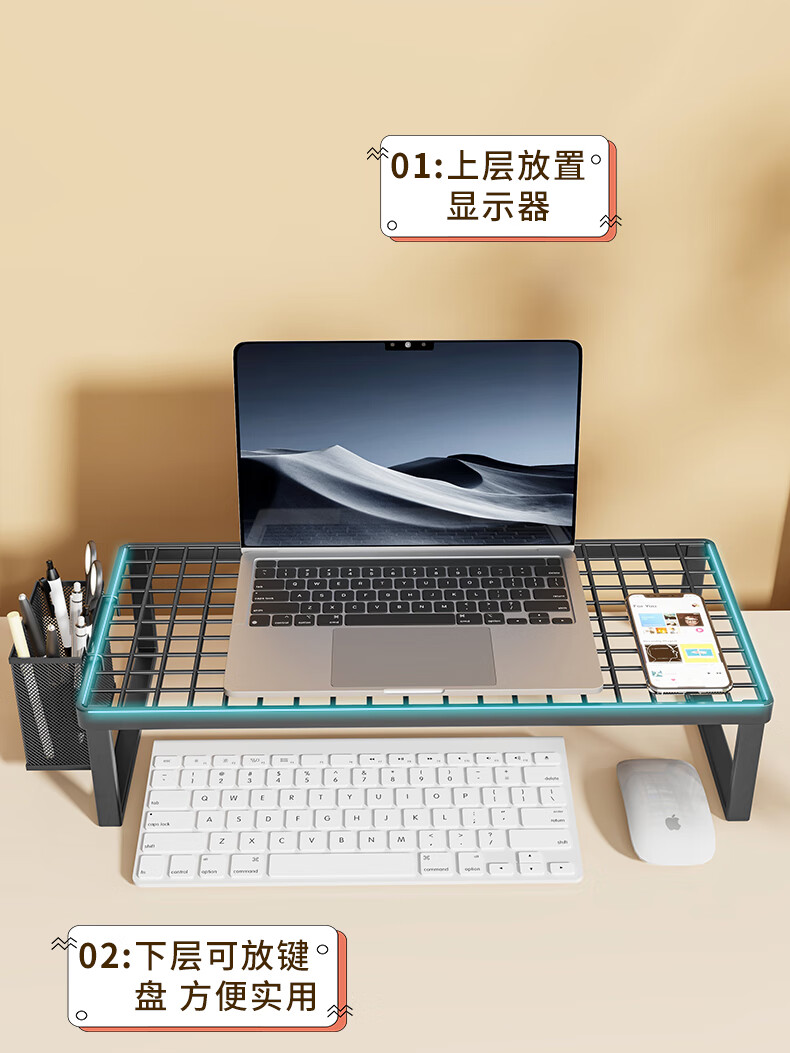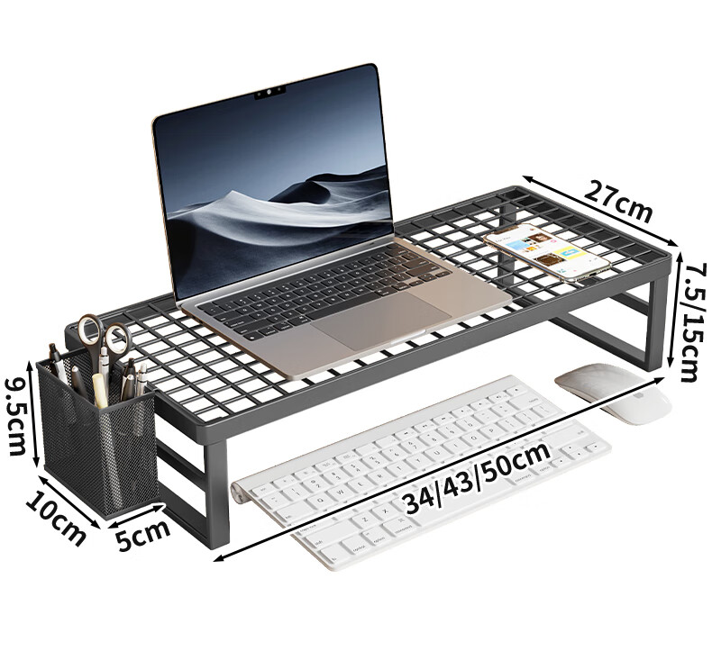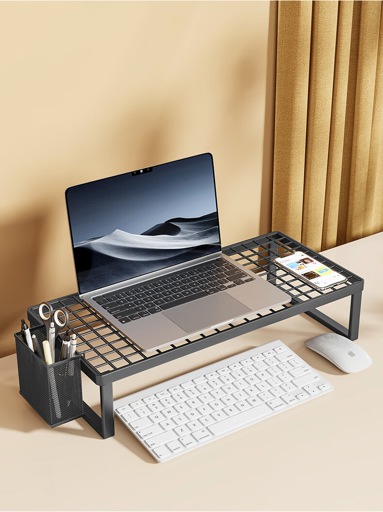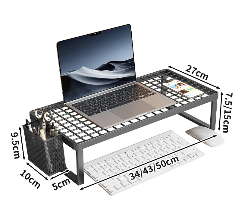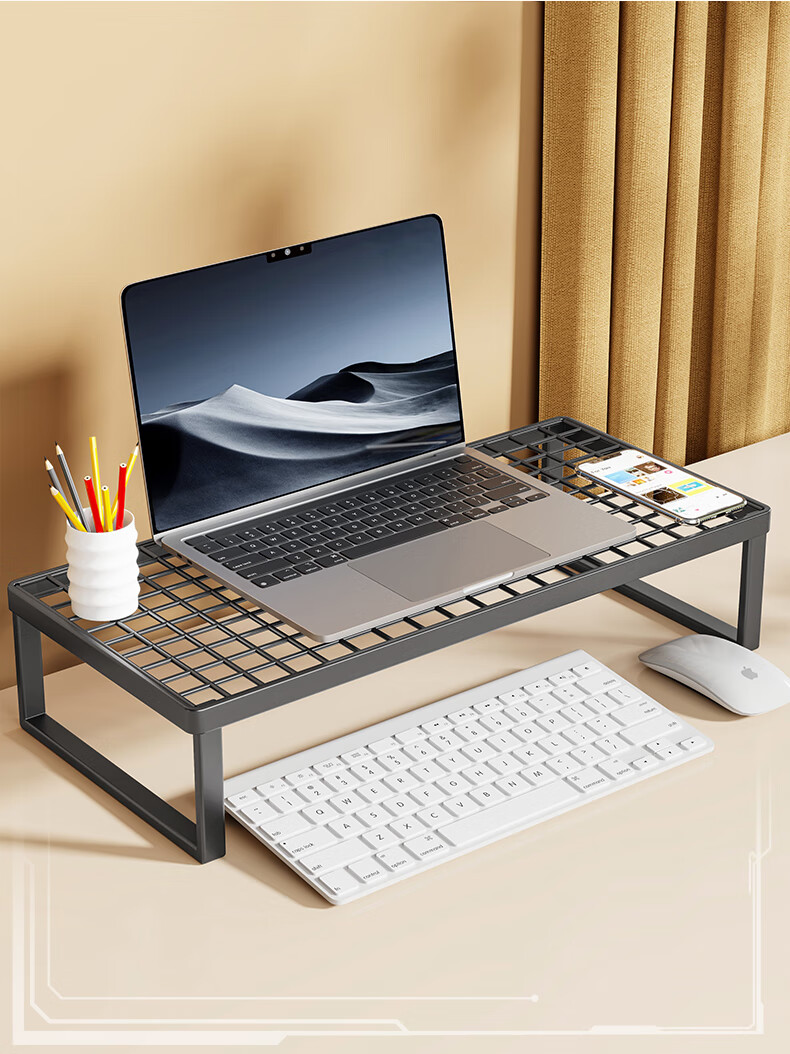 Wooden grid computer stand laptop support rack barbecue grill home desktop monitor cooling rack desktop elevated rack bracket black large (standard style)